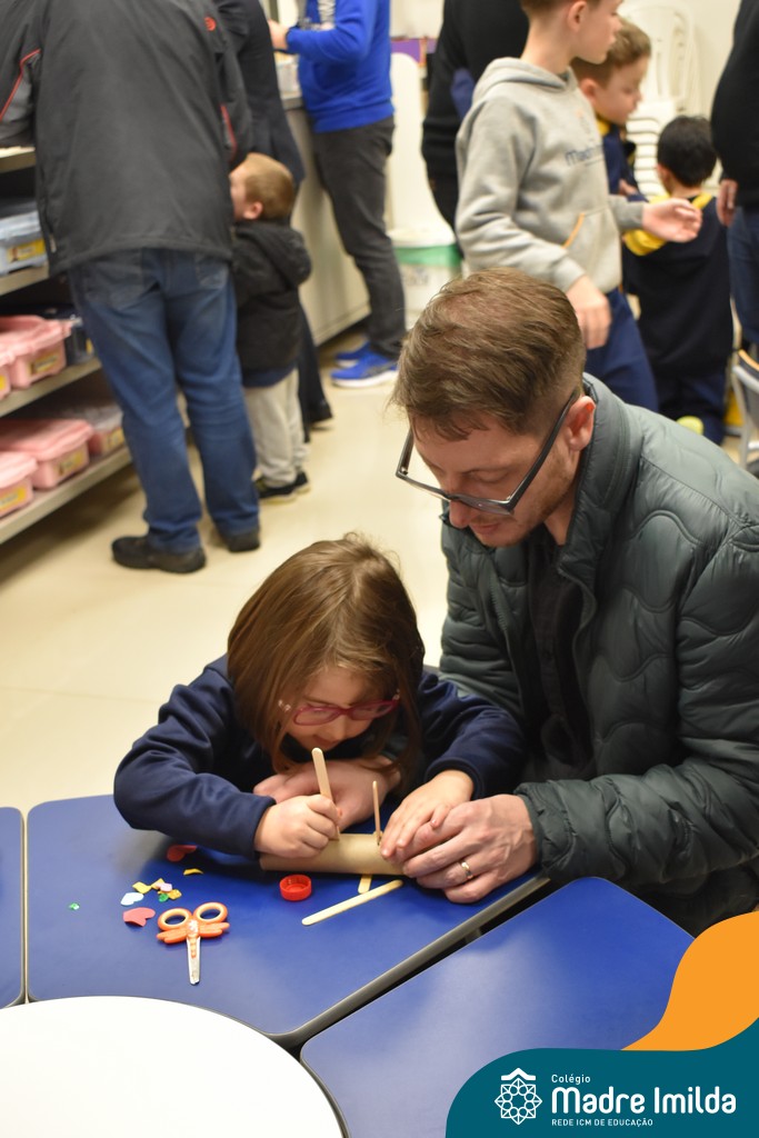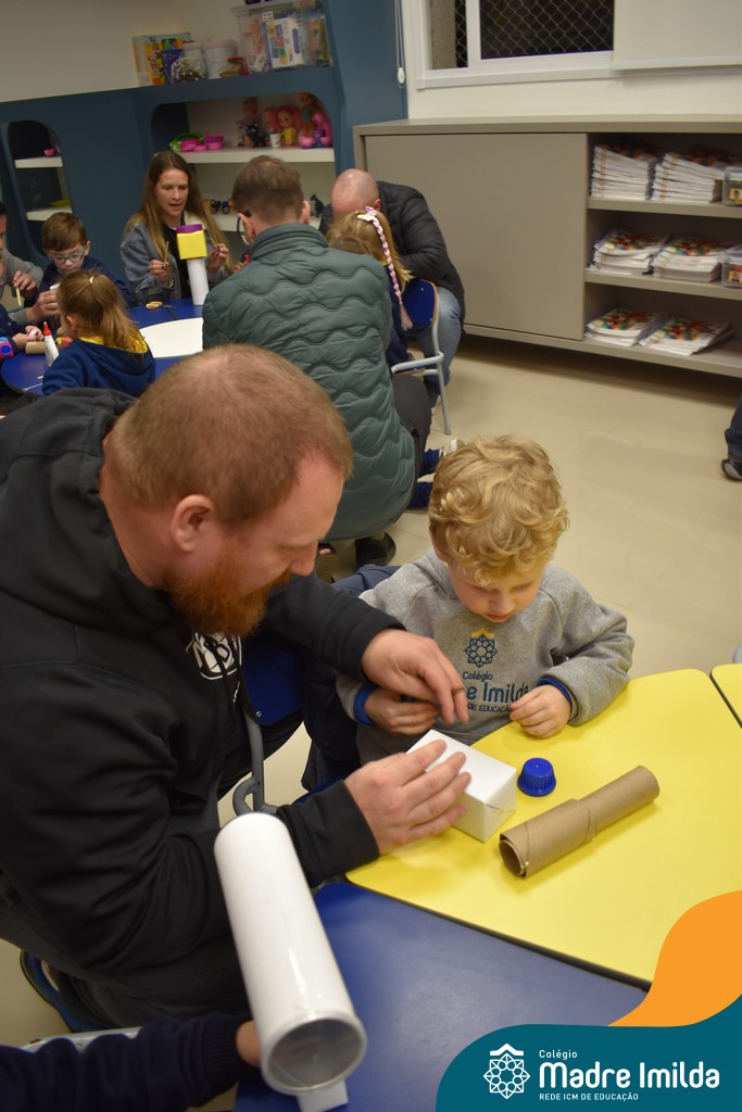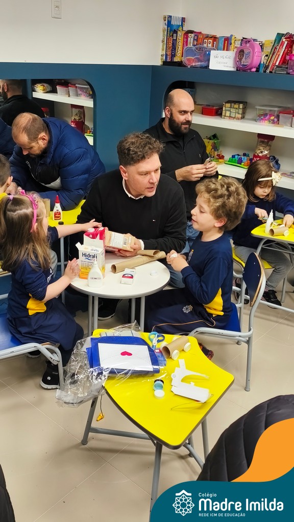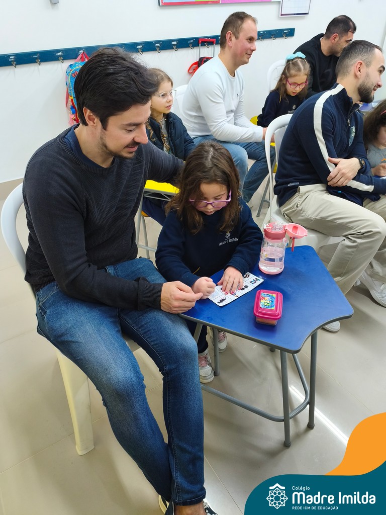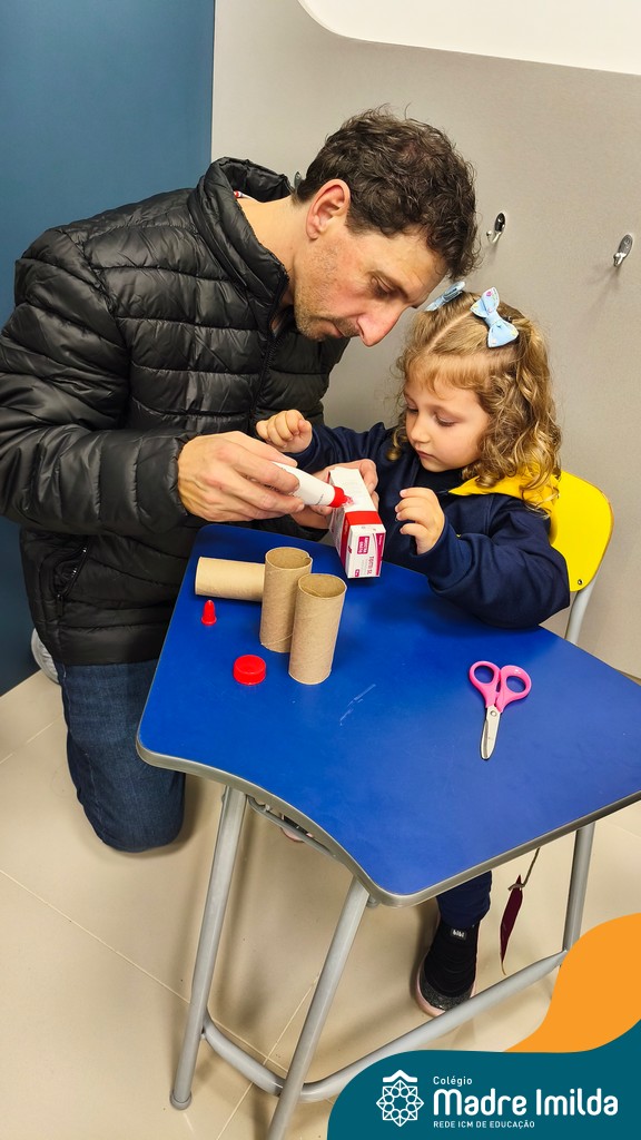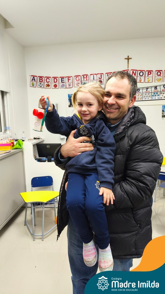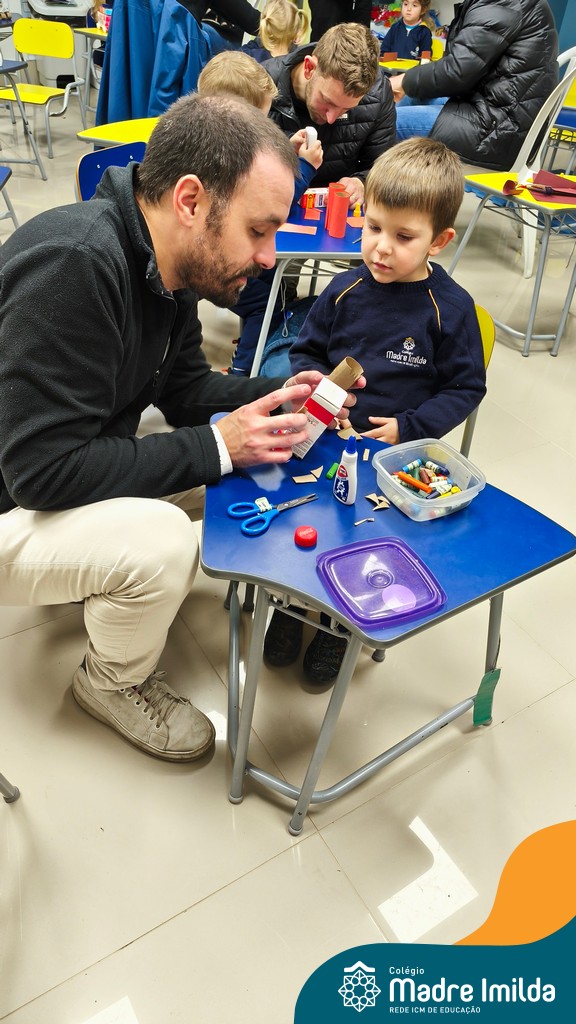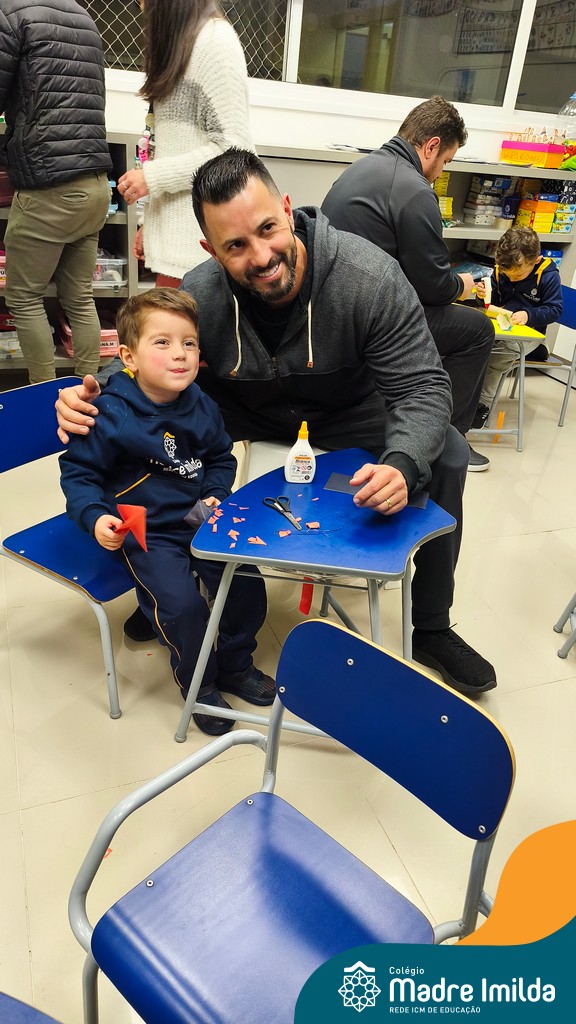 Logo após, pais e filhos compartilharam momentos de brincadeiras e construção de um brinquedo coletivo, promovendo a ludicidade, a criatividade e o fortalecimento dos vínculos familiares. Foram instantes de diversão e conexão, que valorizaram a presença e o envolvimento dos pais no cotidiano escolar.