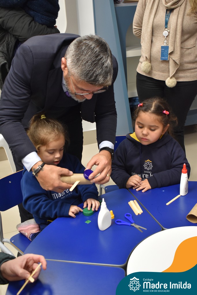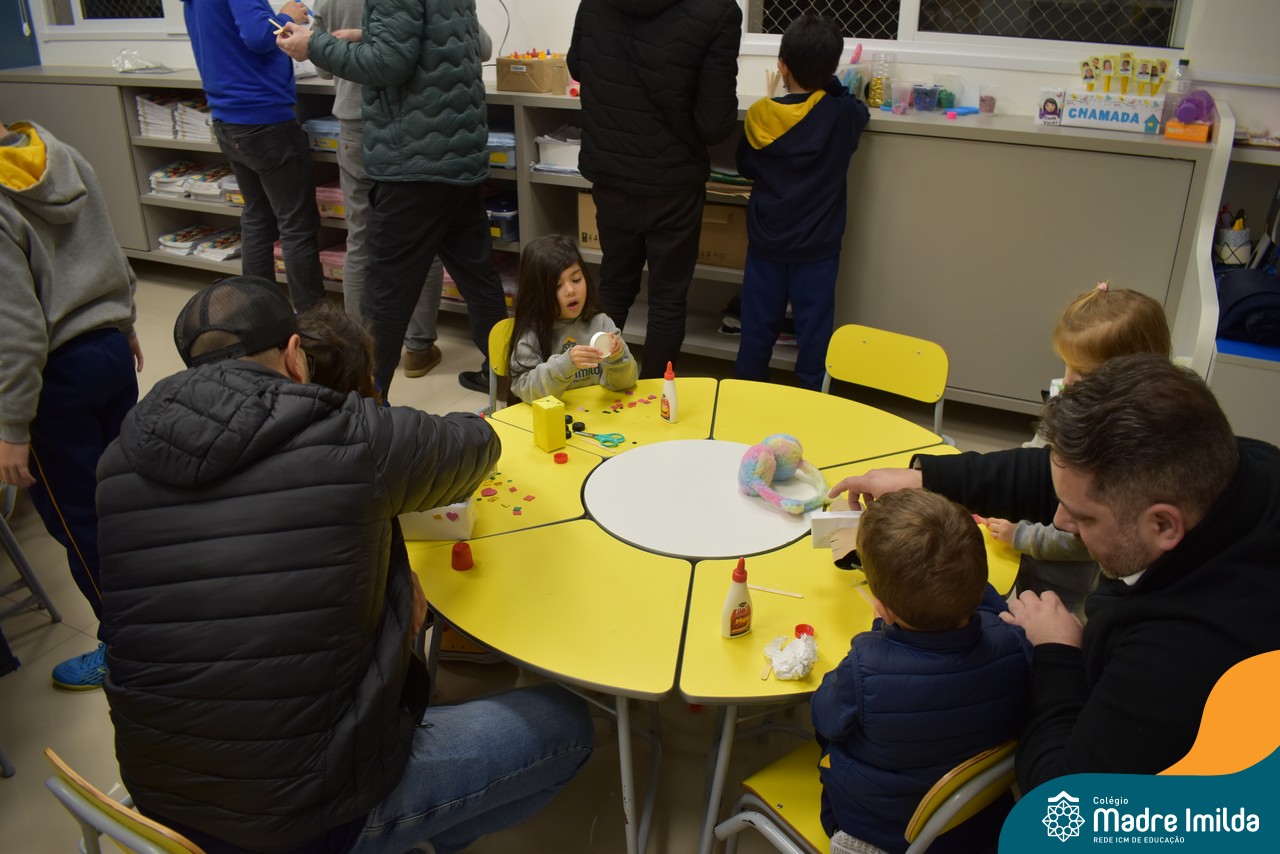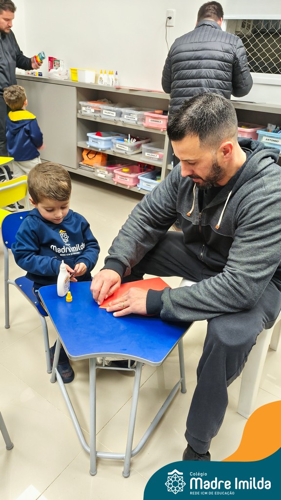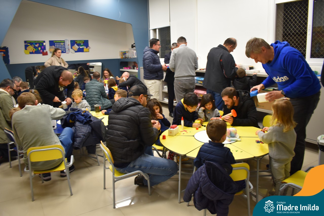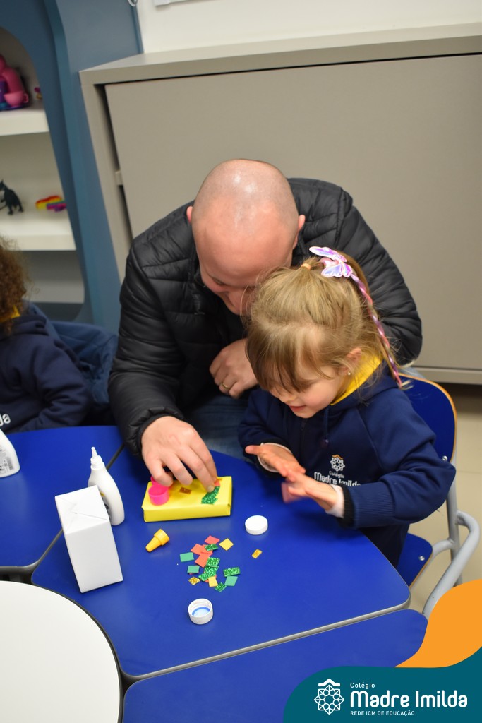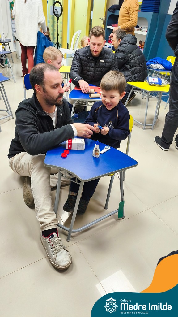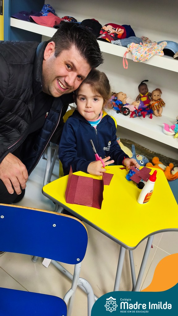 Logo após, pais e filhos compartilharam momentos de brincadeiras e construção de um brinquedo coletivo, promovendo a ludicidade, a criatividade e o fortalecimento dos vínculos familiares. Foram instantes de diversão e conexão, que valorizaram a presença e o envolvimento dos pais no cotidiano escolar.