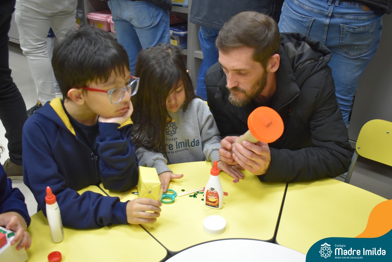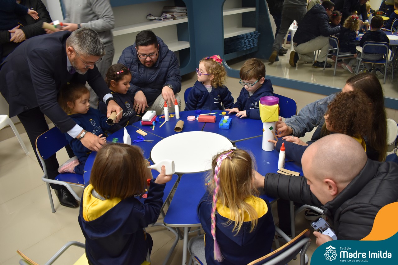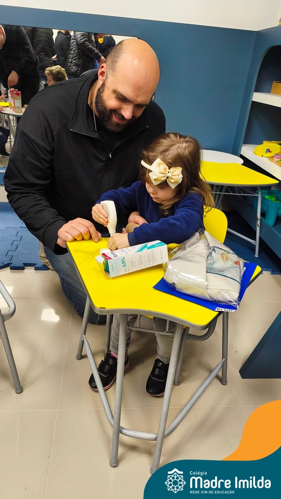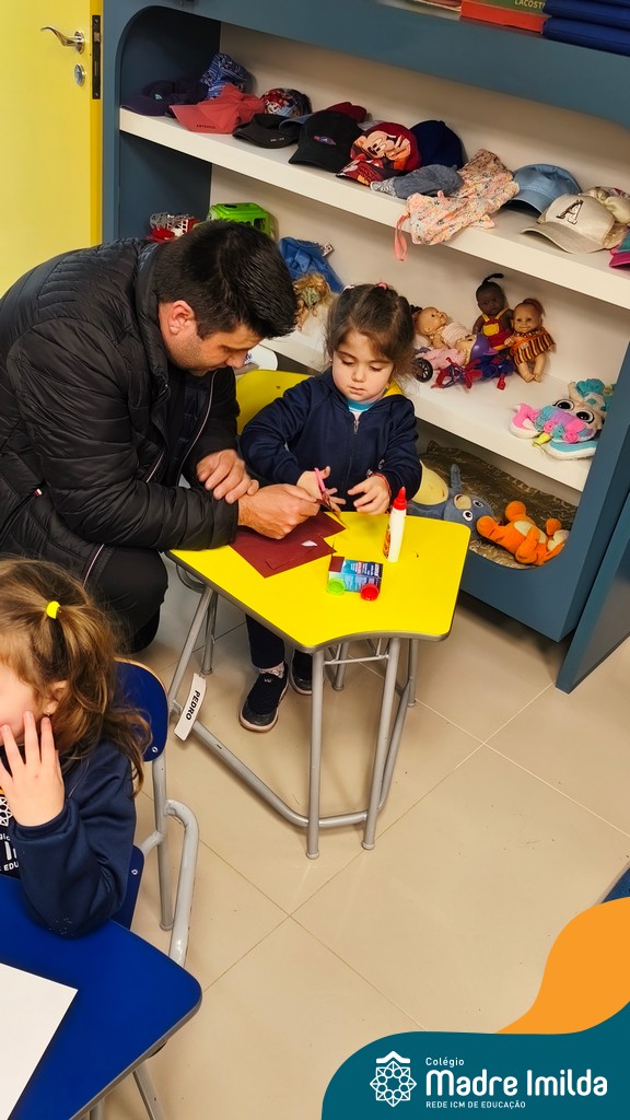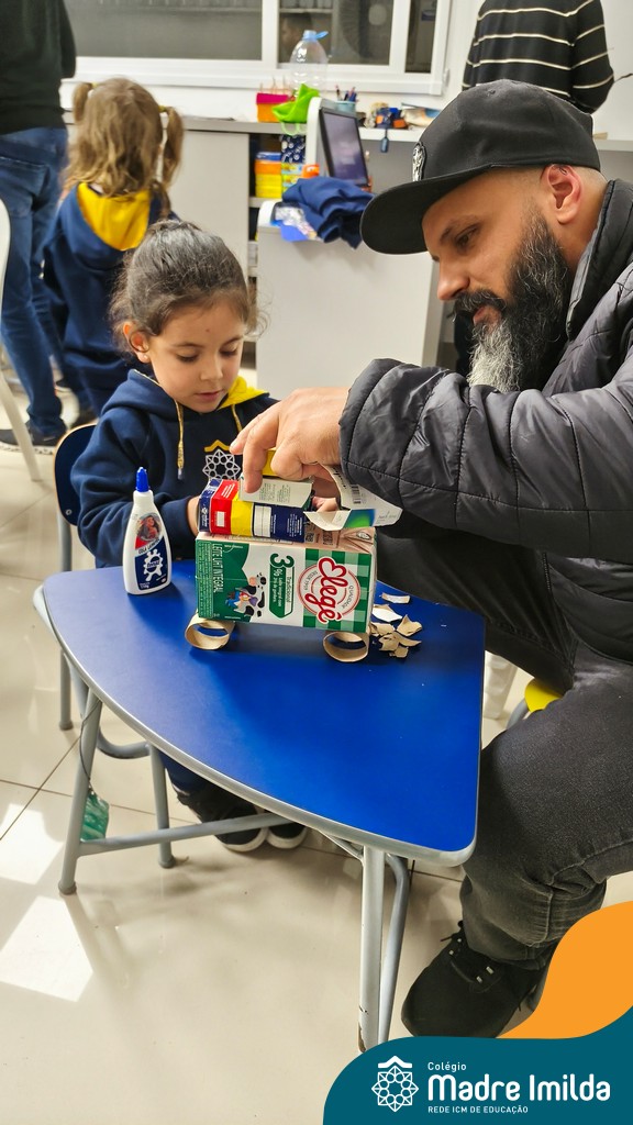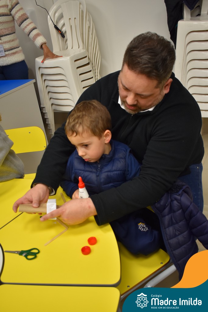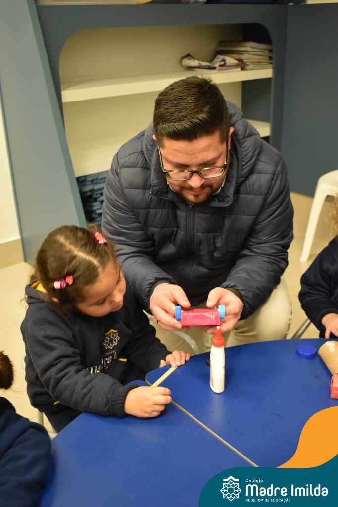 Logo após, pais e filhos compartilharam momentos de brincadeiras e construção de um brinquedo coletivo, promovendo a ludicidade, a criatividade e o fortalecimento dos vínculos familiares. Foram instantes de diversão e conexão, que valorizaram a presença e o envolvimento dos pais no cotidiano escolar.