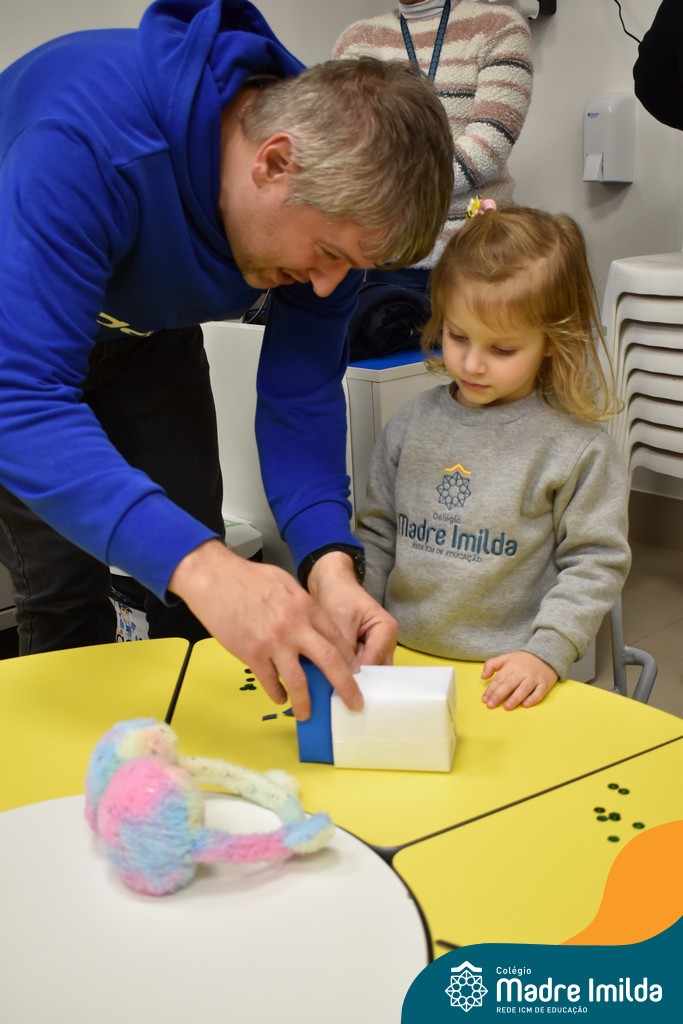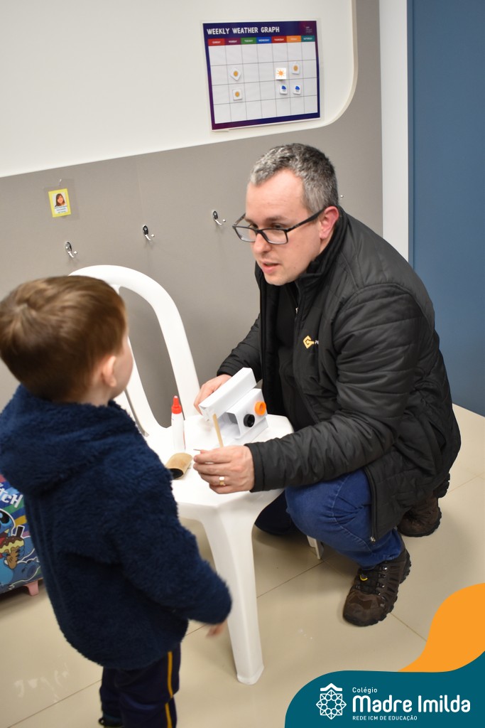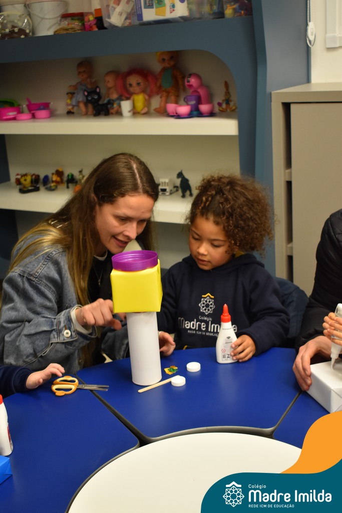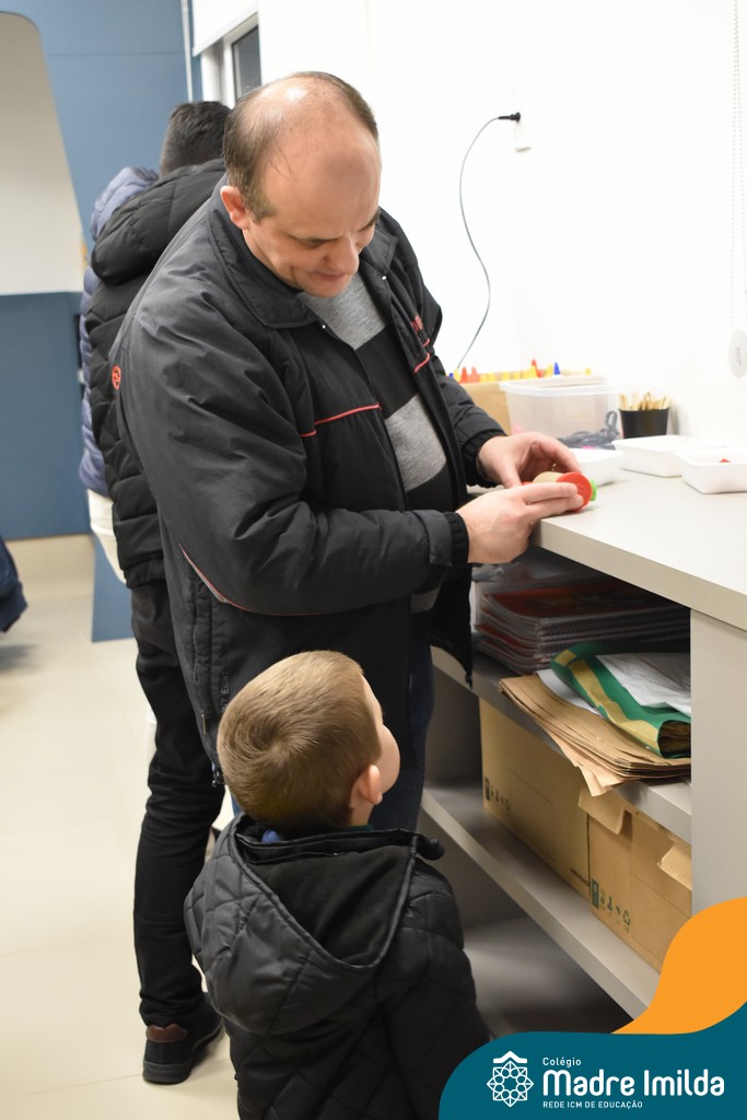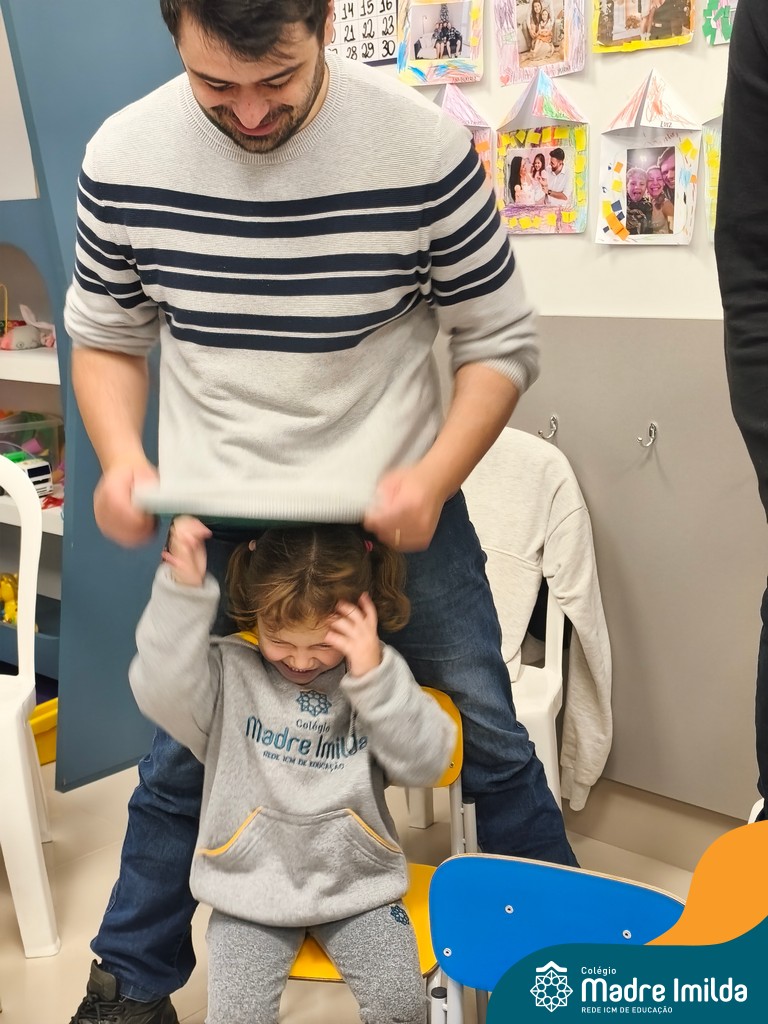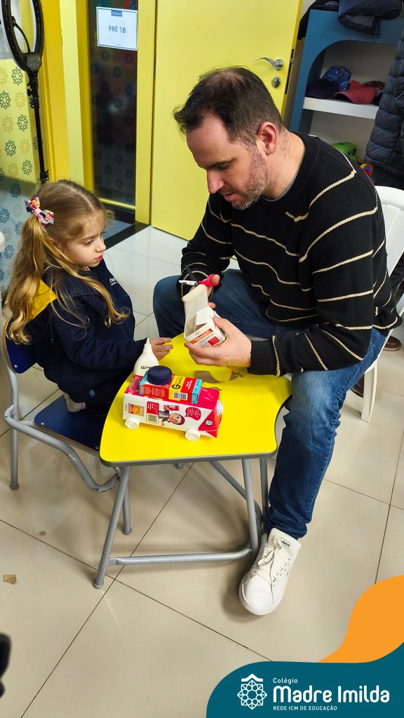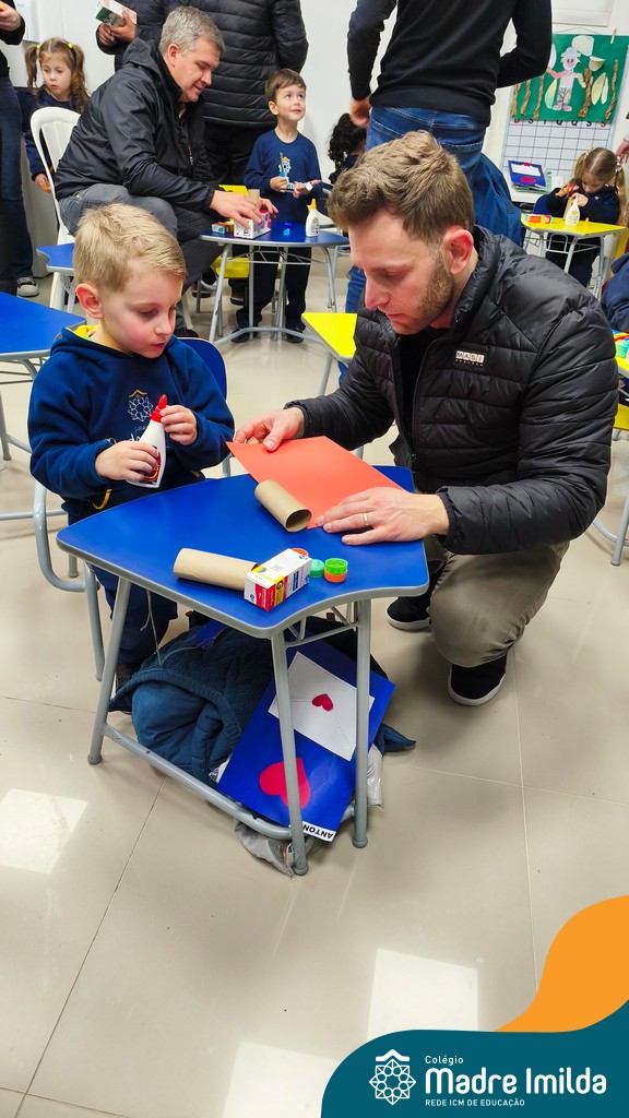 Logo após, pais e filhos compartilharam momentos de brincadeiras e construção de um brinquedo coletivo, promovendo a ludicidade, a criatividade e o fortalecimento dos vínculos familiares. Foram instantes de diversão e conexão, que valorizaram a presença e o envolvimento dos pais no cotidiano escolar.