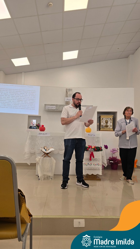 O Colégio viveu um momento especial de celebração, marcado pela fé, pela gratidão e pelo reconhecimento. A programação reuniu a celebração natalina, a entrega de placas de homenagem aos colaboradores que completaram jubileu por tempo de trabalho e, em seguida, a confraternização entre todos.