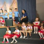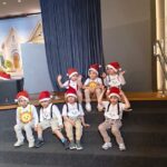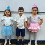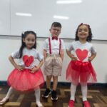 Durante o evento, os pequenos encantaram as famílias com canções em português e inglês, mostrando que a educação bilíngue também se constrói nas experiências afetivas e artísticas do cotidiano escolar.