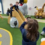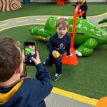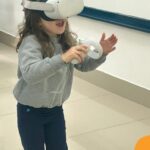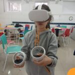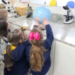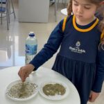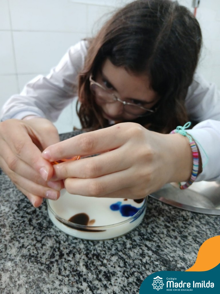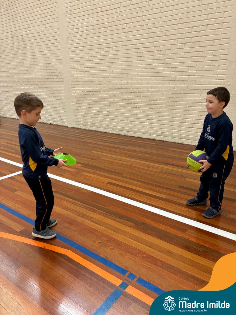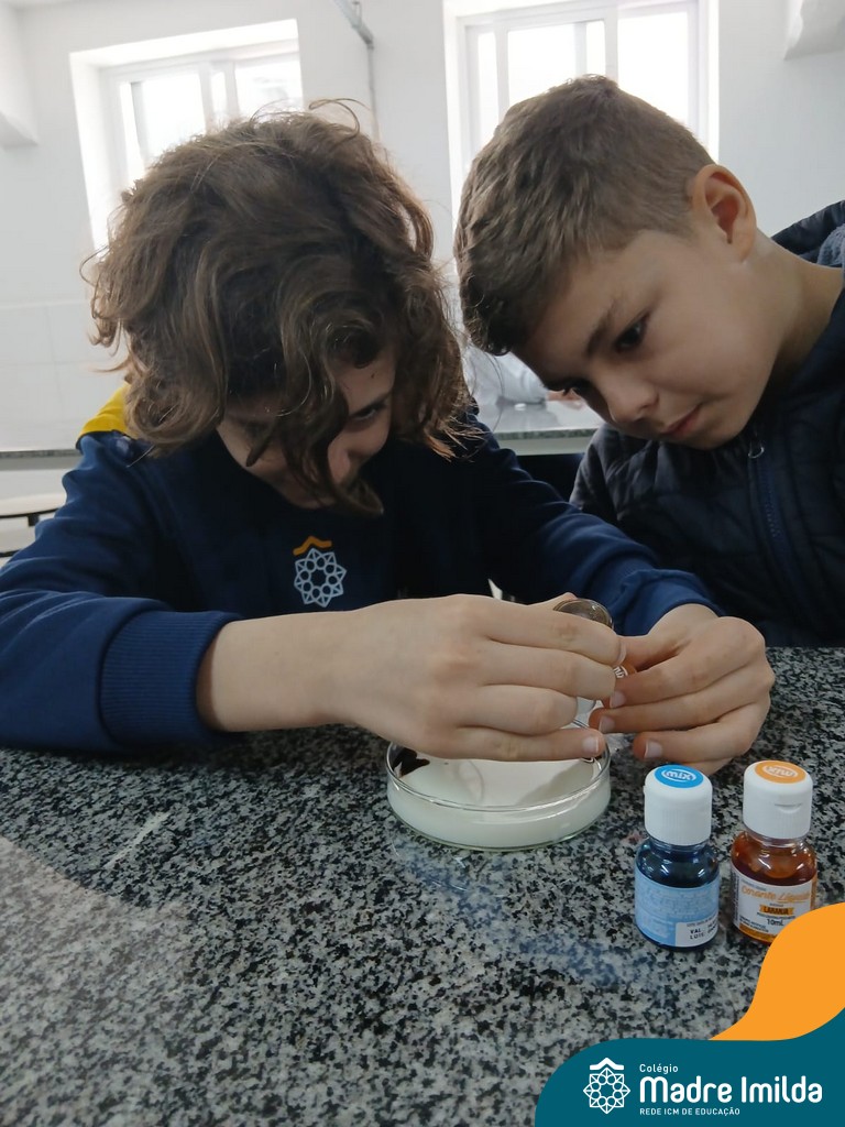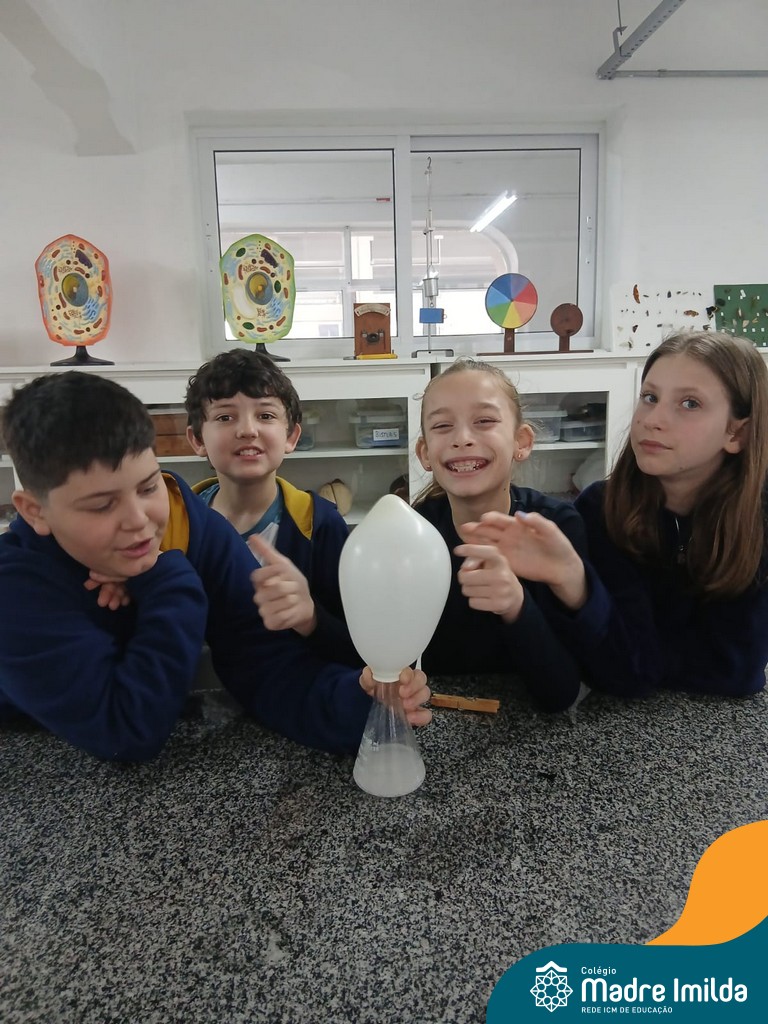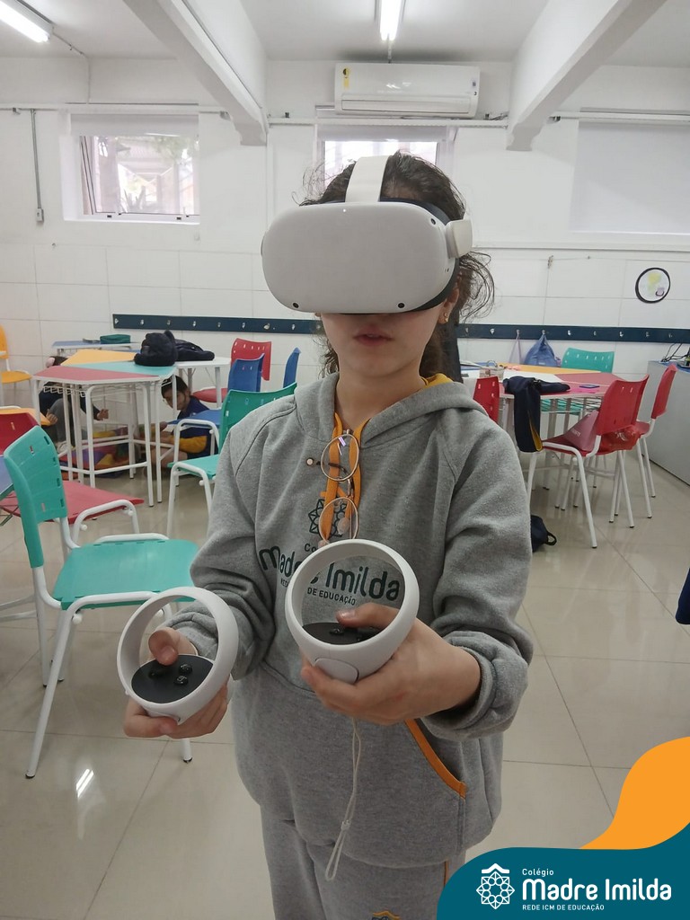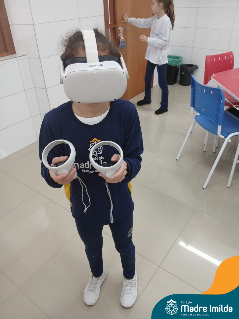 As atividades de Inglês, vôlei e brincadeiras coletivas fortalecem a comunicação, o trabalho em equipe e a coordenação motora. Já no Laboratório de Ciências, as experiências despertam a curiosidade natural das crianças: o “Dedo mágico”, o “Leite psicodélico”, a Areia Cinética, as reações químicas que formam gases e até o uso dos óculos de Realidade Virtual (VR) tornam o aprendizado algo vivo e encantador.