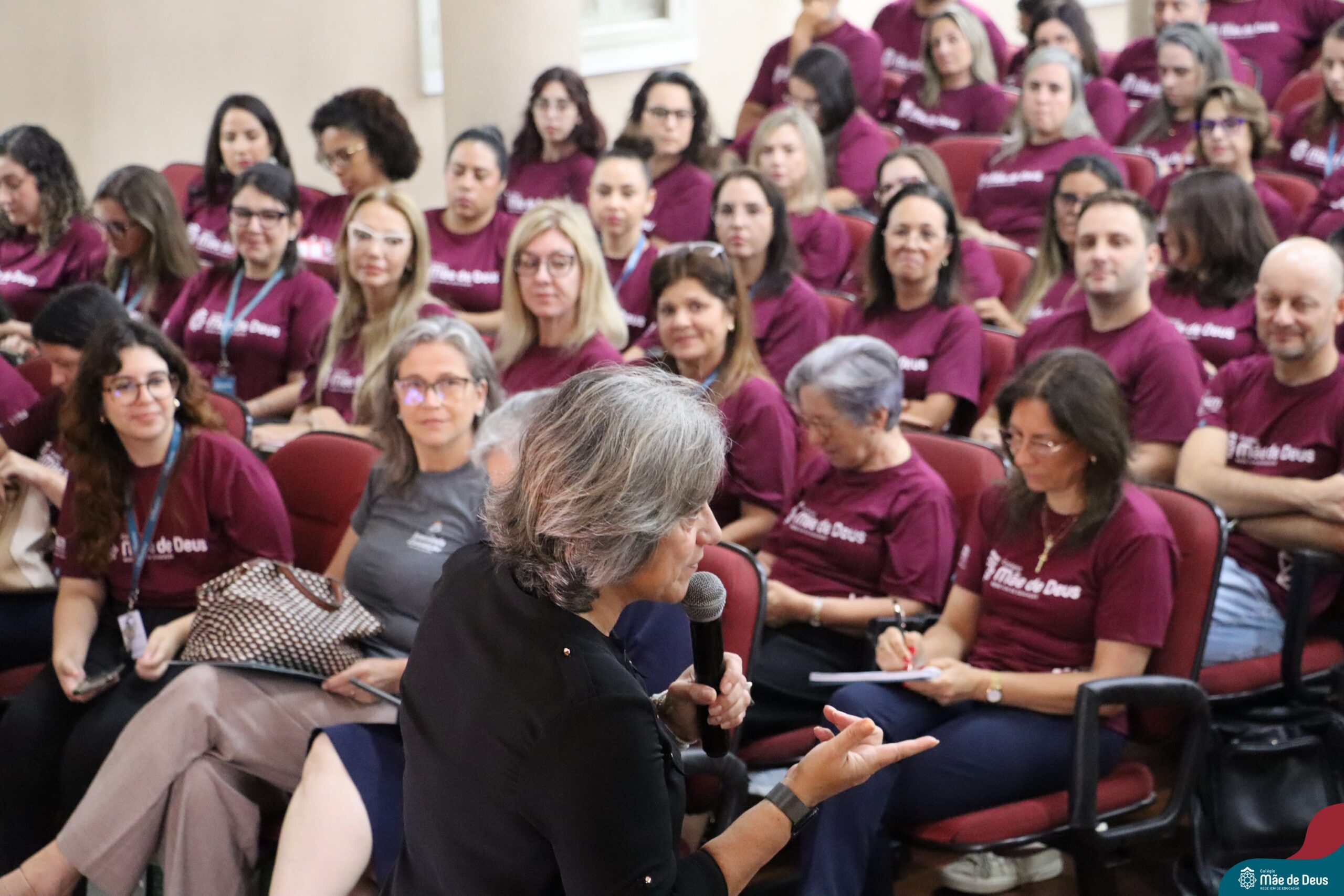 A programação da manhã incluiu momentos de acolhida institucional e espiritualidade, reafirmando os valores que orientam a Rede ICM. O momento foi conduzido pela Irmã Meridiane Brum, Coordenadora de Pastoral do Colégio Mãe de Deus.