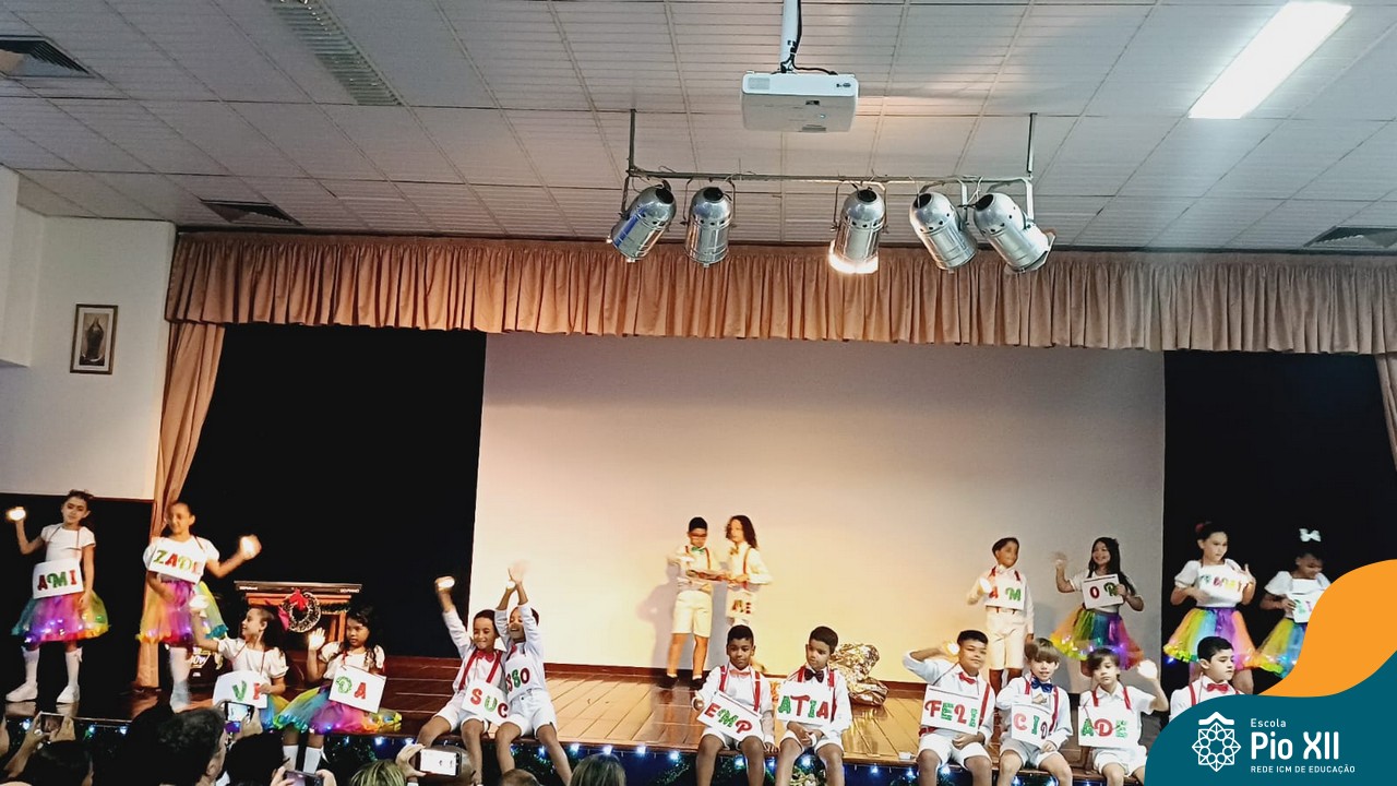 Apresentações de Natal encantam famílias no auditório da Escola Pio XII