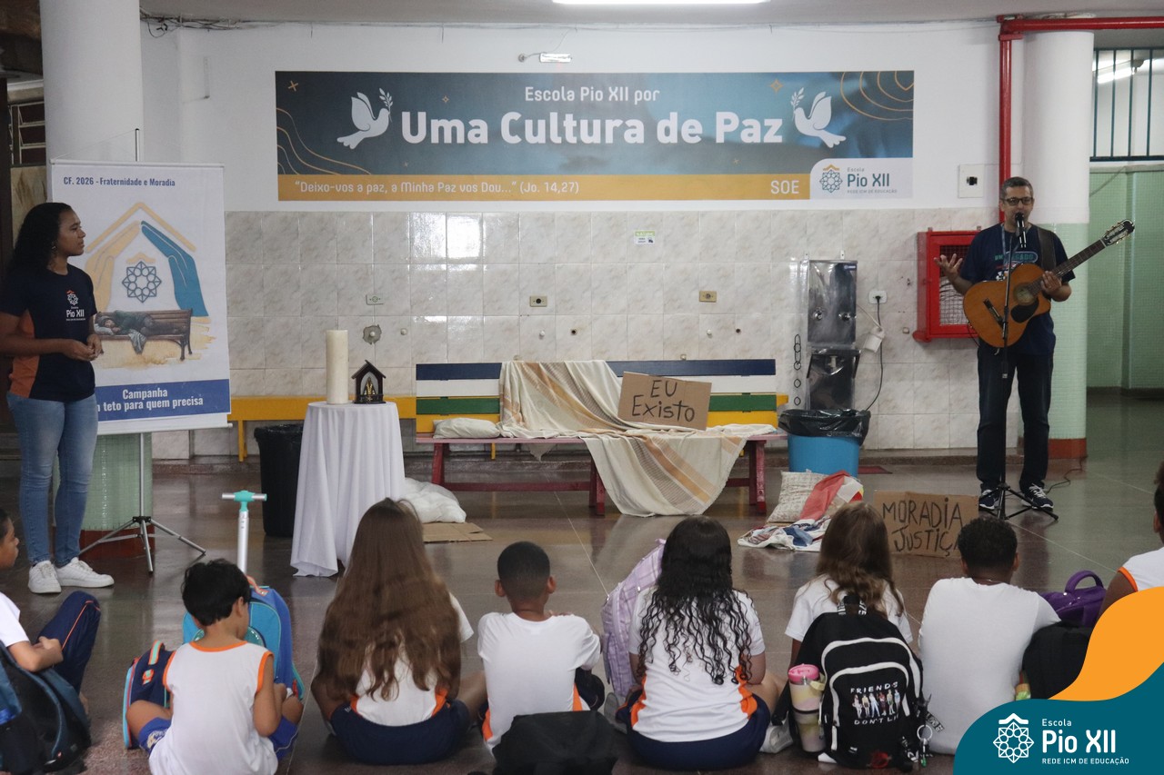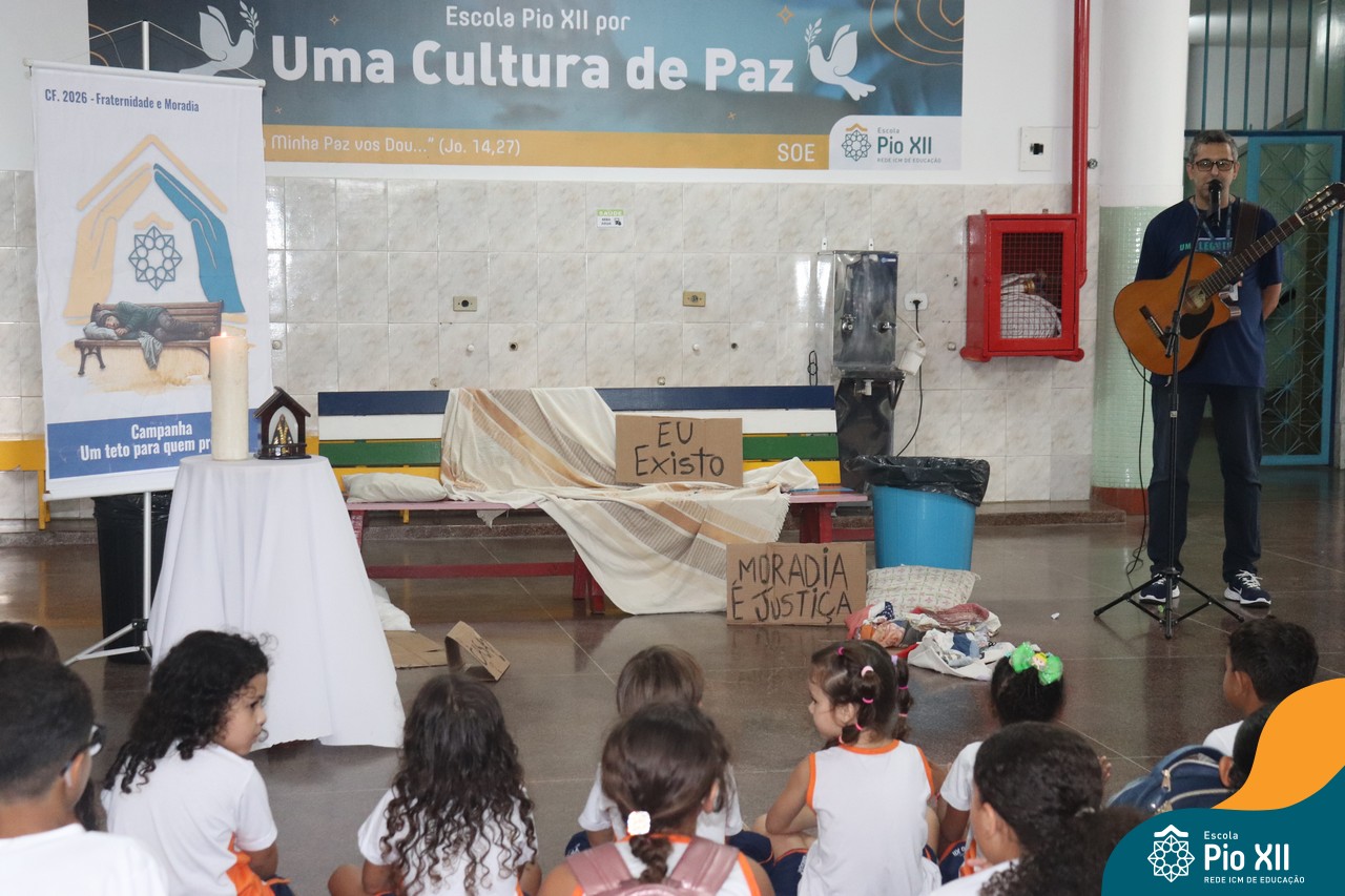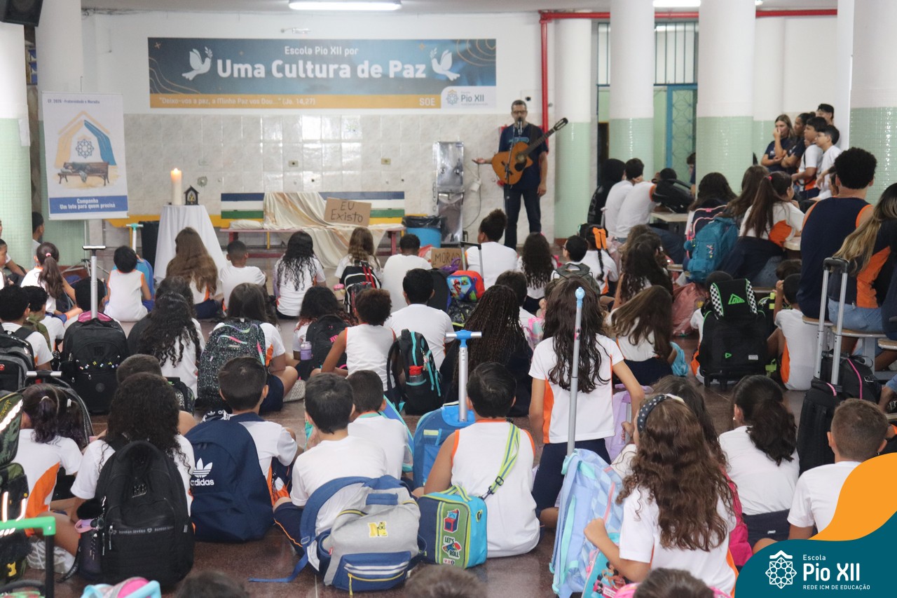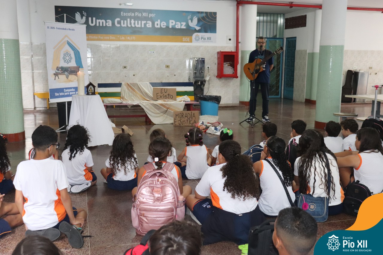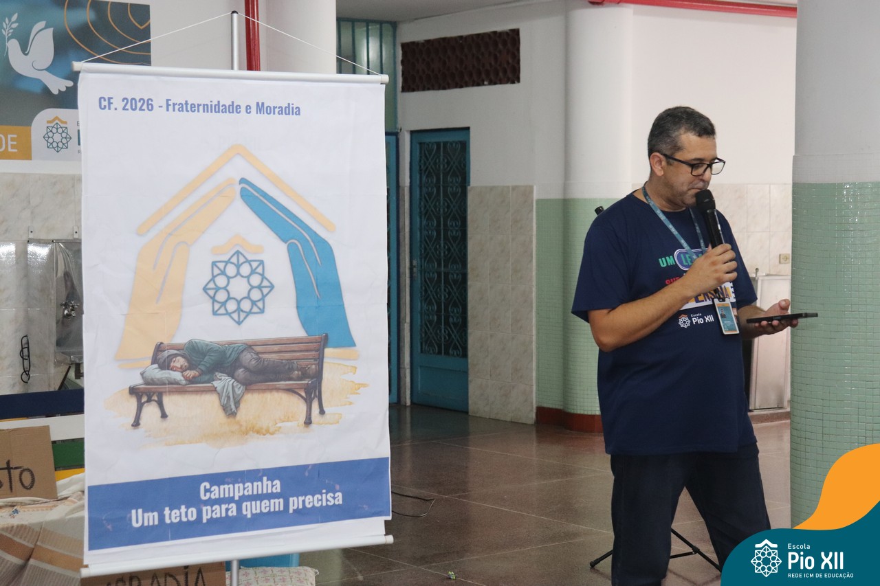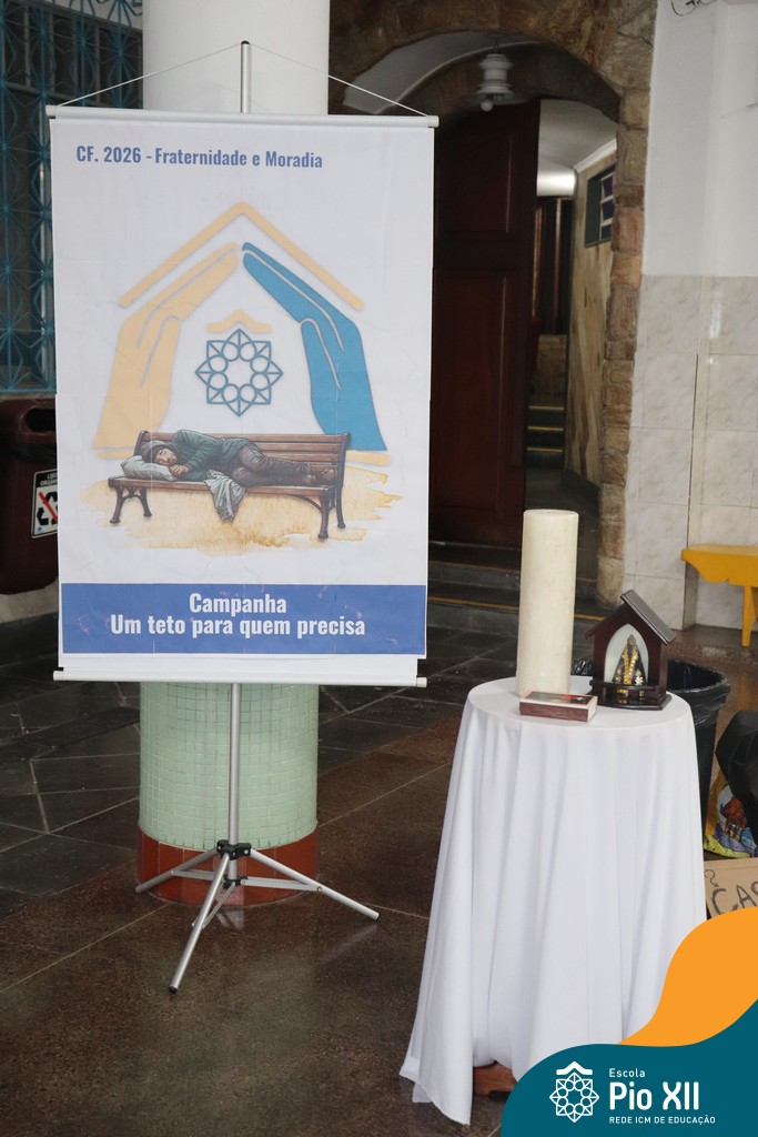 Hoje vivemos um momento especial na Escola Pio XII: a abertura da Campanha da Fraternidade 2026, durante nosso tradicional momento semanal de oração, com a presença da comunidade educativa.