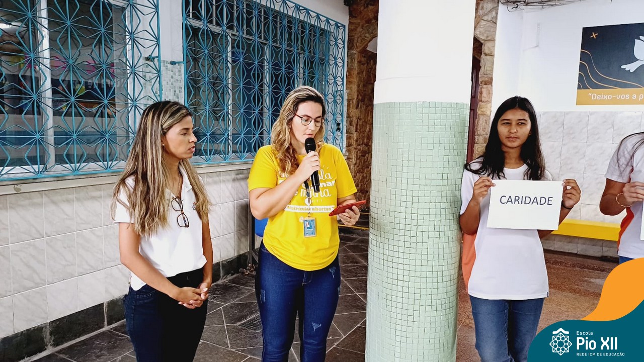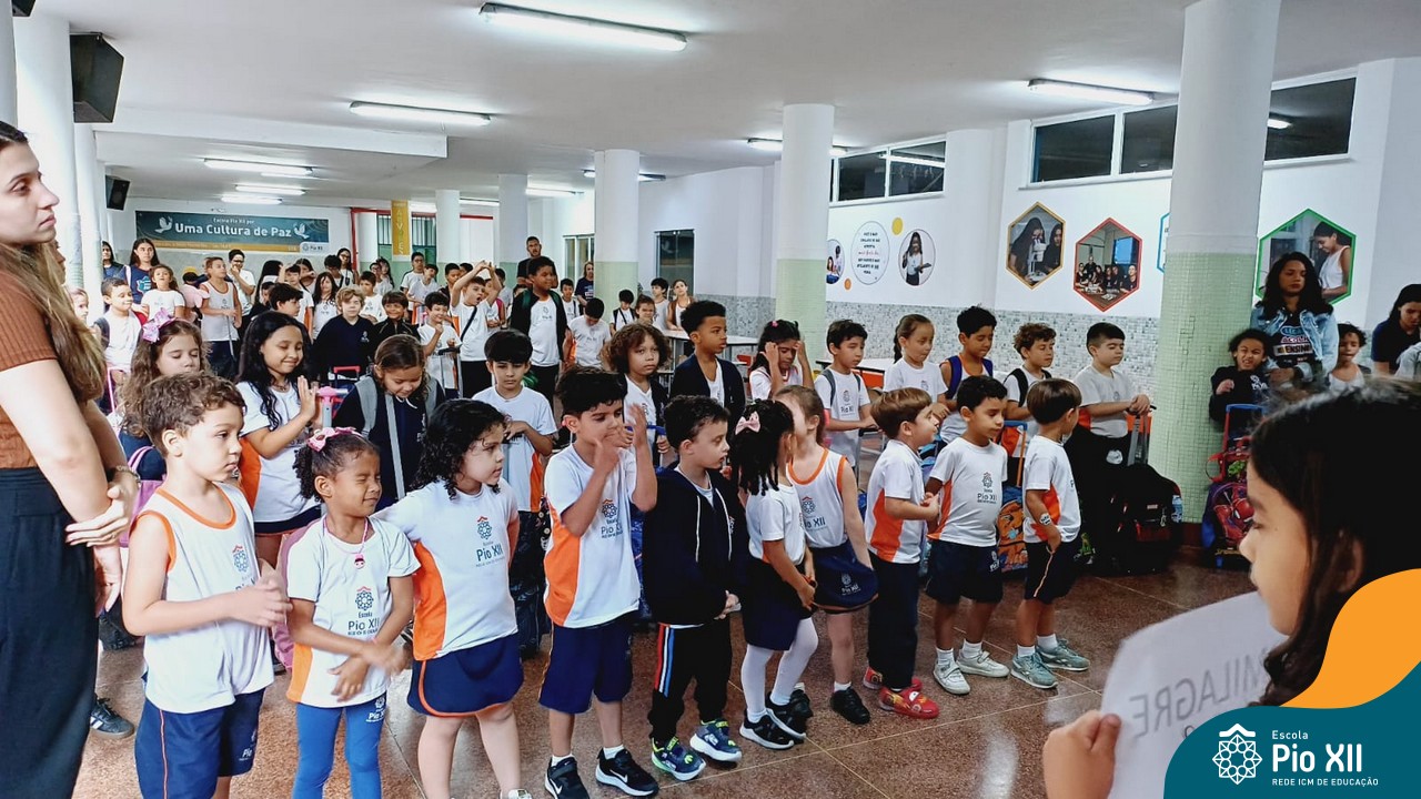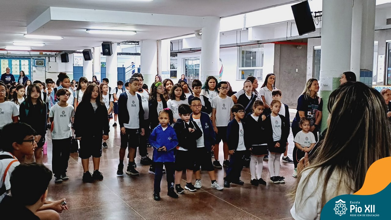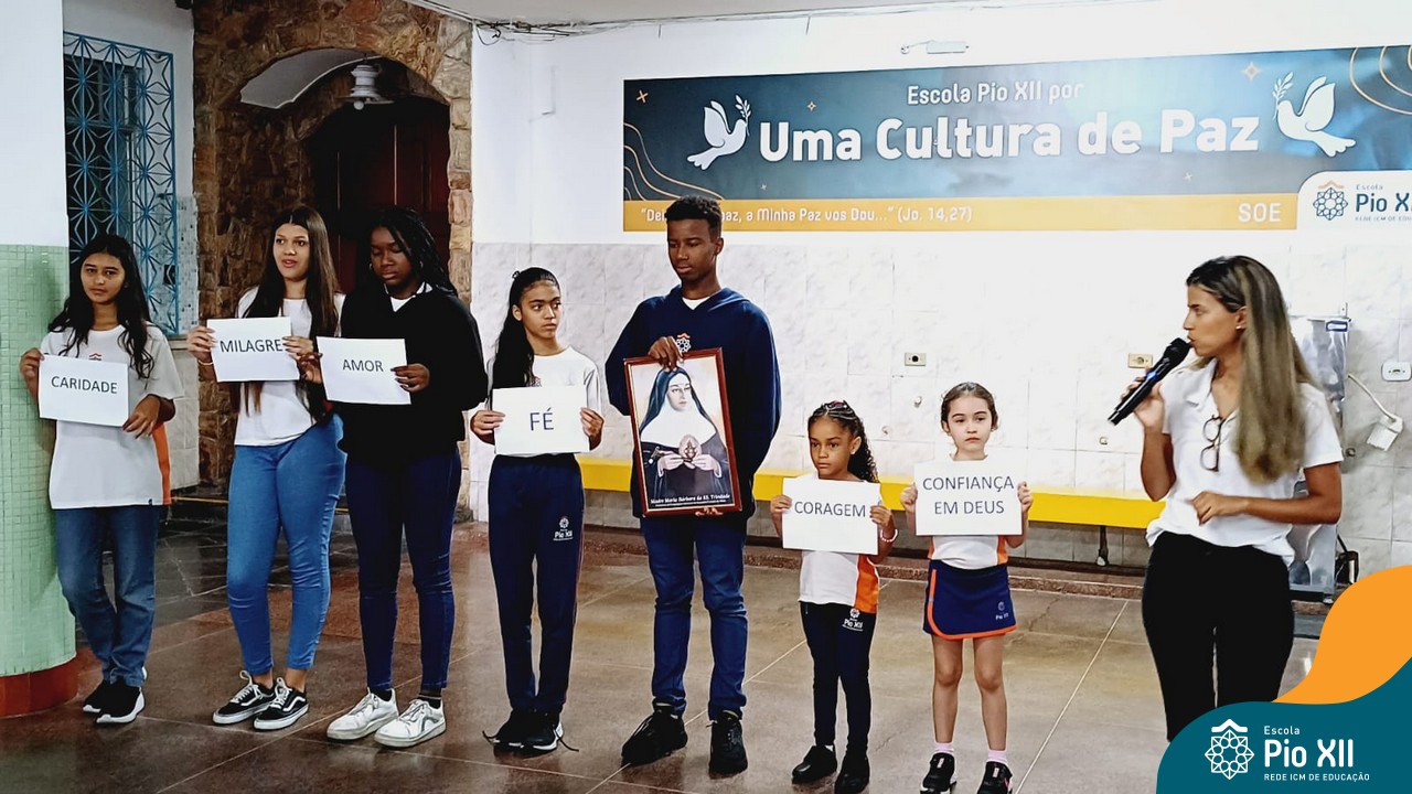 Em um momento de fé e comunhão, nossos alunos, do Maternal ao Ensino Médio, se reuniram no pátio da Escola Pio XII para celebrar a Memória Litúrgica da Beatificação da Bem-Aventurada Bárbara Maix.