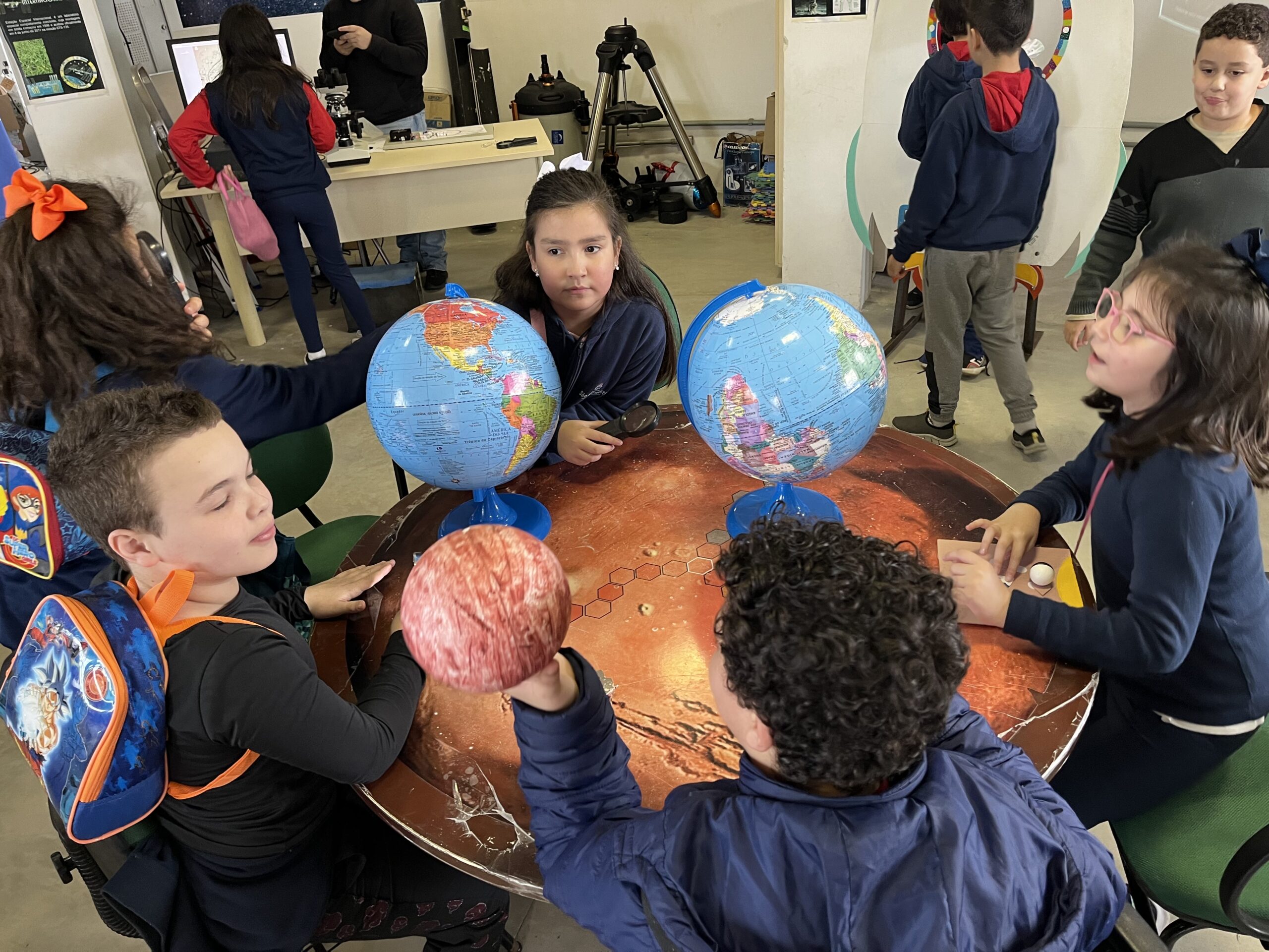 A aventura incluiu uma sessão encantadora chamada “Filhos do Sol”, que deu base para a construção dos primeiros conhecimentos sobre os planetas, e um momento investigativo no laboratório do espaço, onde os estudantes foram recebidos pelos responsáveis e bolsistas pertencentes ao projeto, que dividiram muito conhecimento sobre Astronomia.
