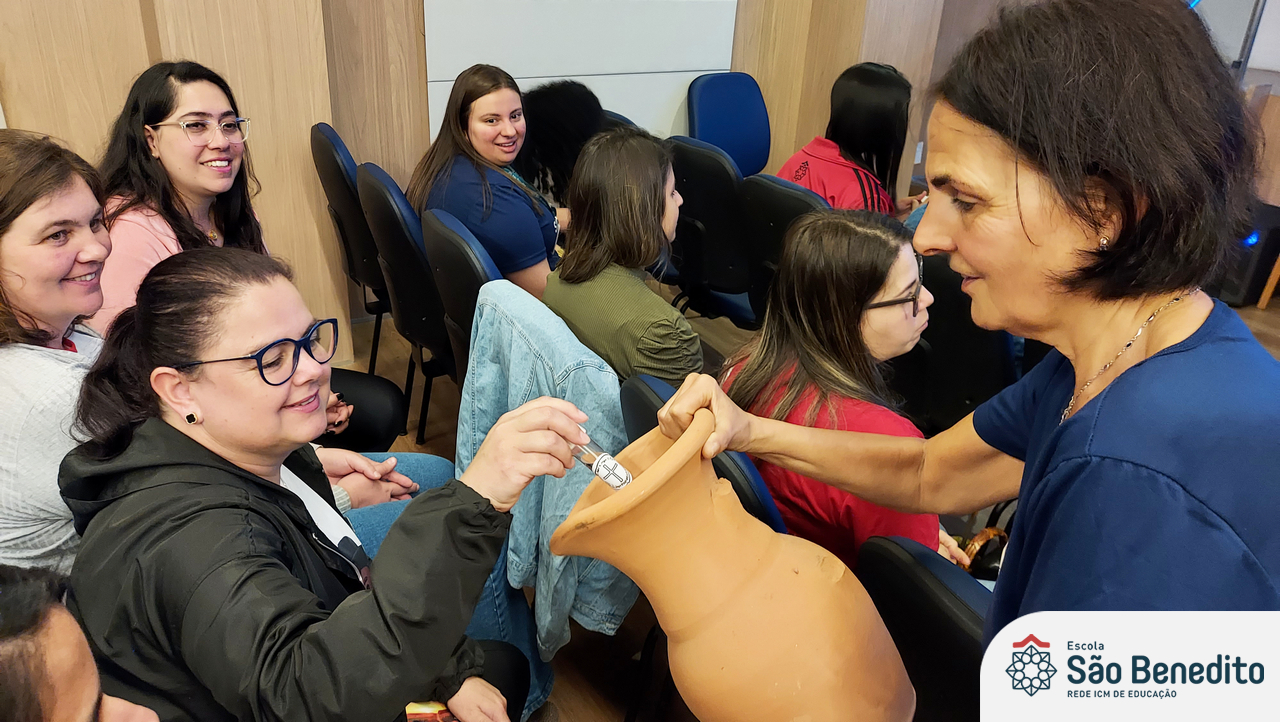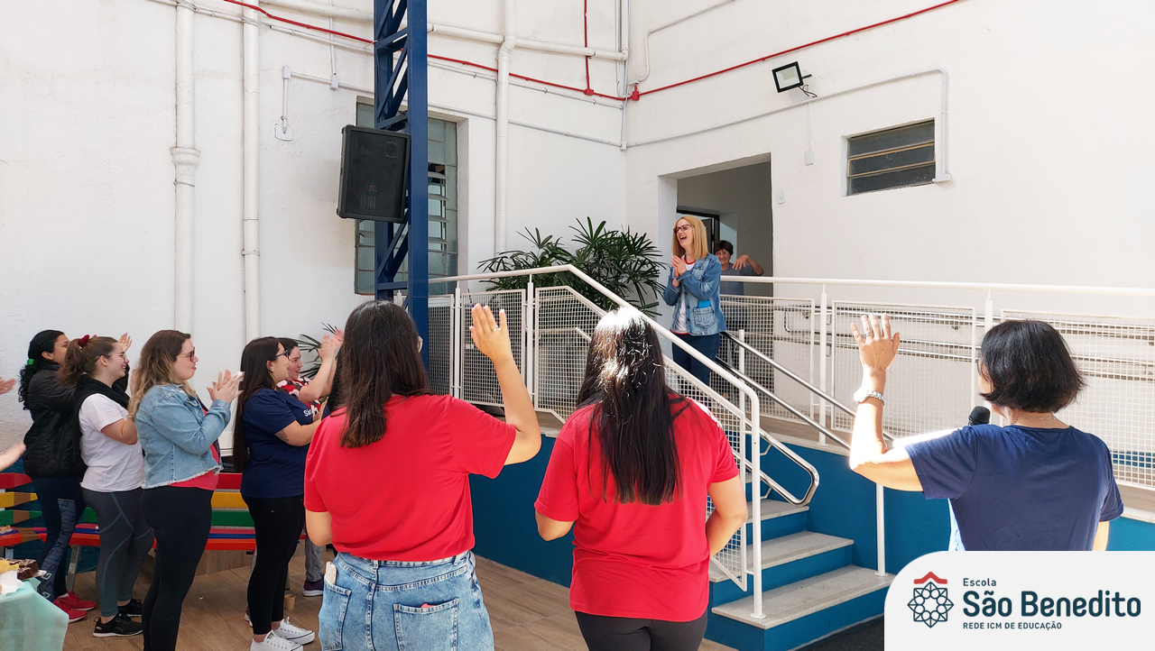 Na manhã do dia 21 de outubro, os educadores da Escola São Benedito se reuniram para celebrar a vocação de ensinar. Para isso, viveram três momentos: O primeiro, trabalhou a saúde do corpo e da mente, através de uma aula divertida e instrutiva com Amanda Barbareto, ex-ginasta federada do RJ, diretora e instrutora da Escola de Ginástica rítmica Amanda Barbareto; o segundo, com a partilha do alimento, onde além de desfrutar de um delicioso café e lanche, os educadores puderam se conhecer melhor; e o terceiro, onde cada um pôde ter sua alma alimentada através de um momento Pastoral, conduzido pela Filomena Freitas, que trabalhou a passagem da Mulher Samaritana.