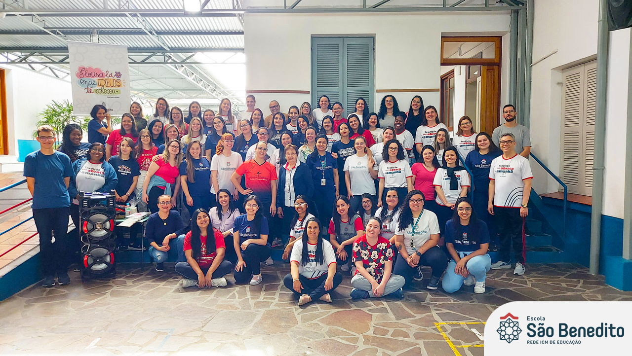 Na manhã do dia 21 de outubro, os educadores da Escola São Benedito se reuniram para celebrar a vocação de ensinar. Para isso, viveram três momentos: O primeiro, trabalhou a saúde do corpo e da mente, através de uma aula divertida e instrutiva com Amanda Barbareto, ex-ginasta federada do RJ, diretora e instrutora da Escola de Ginástica rítmica Amanda Barbareto; o segundo, com a partilha do alimento, onde além de desfrutar de um delicioso café e lanche, os educadores puderam se conhecer melhor; e o terceiro, onde cada um pôde ter sua alma alimentada através de um momento Pastoral, conduzido pela Filomena Freitas, que trabalhou a passagem da Mulher Samaritana.