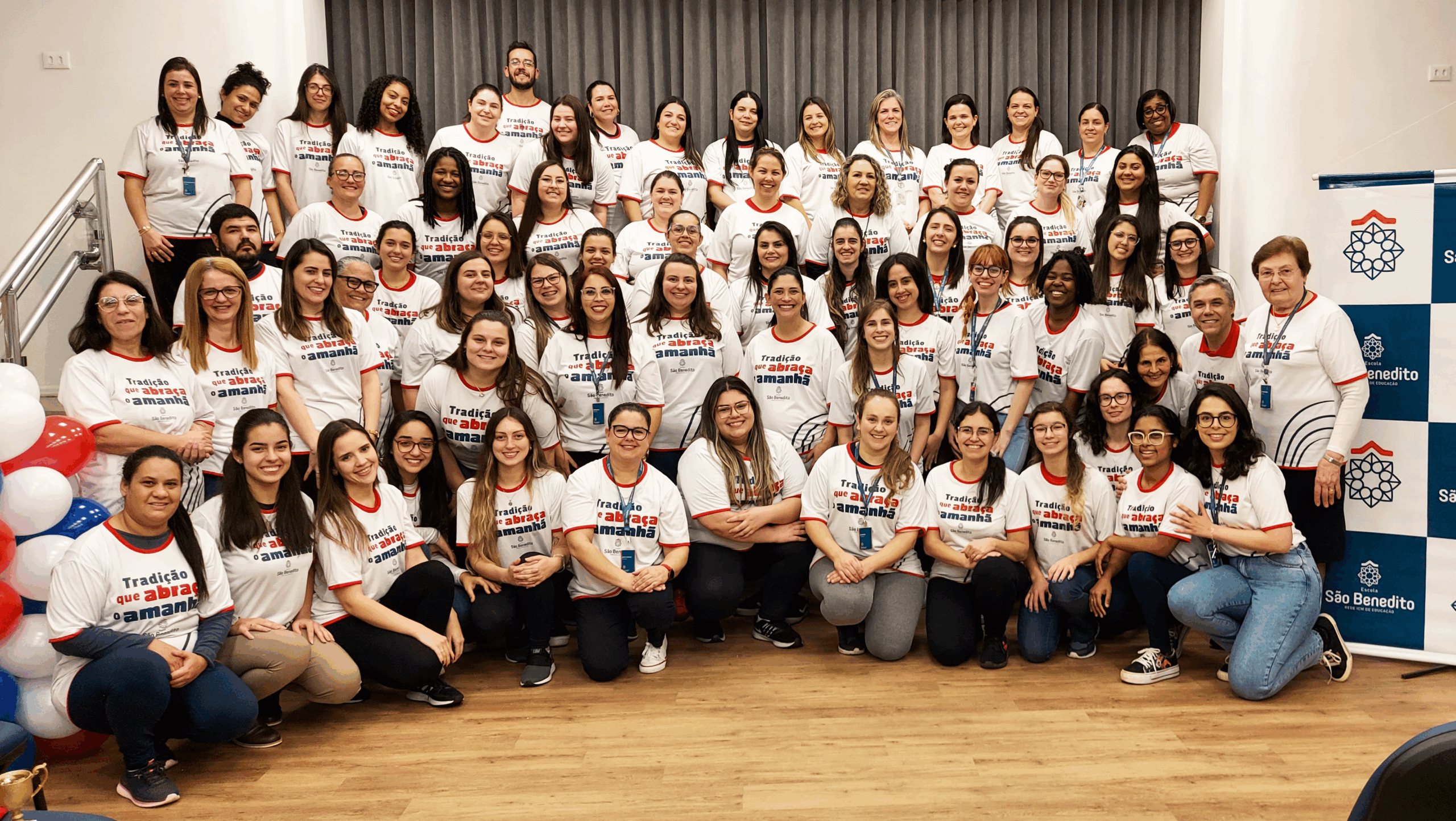 No dia 27 de junho, aniversário da Fundadora da Congregação das Irmãs do Imaculado Coração de Maria, os colaboradores e educadores da Escola São Benedito festejaram os resultados obtidos no ano de 2022/2023, encerrando a Campanha de Matrículas, cujo mote foi “Redesenhando o Futuro”. E após guiarmos as nossas escolhas e as dos estudantes, buscando a construção de um futuro melhor, chegou o momento de abraçarmos essa nova realidade cheia de oportunidades criada pela Família São Benedito. E quando falamos em família, falamos de toda a família mesmo: professores, colaboradores, estudantes, pais, responsáveis, tios, avós, amigos, madrinhas, e todas as pessoas que contribuem direta ou indiretamente para o crescimento do São Benedito.