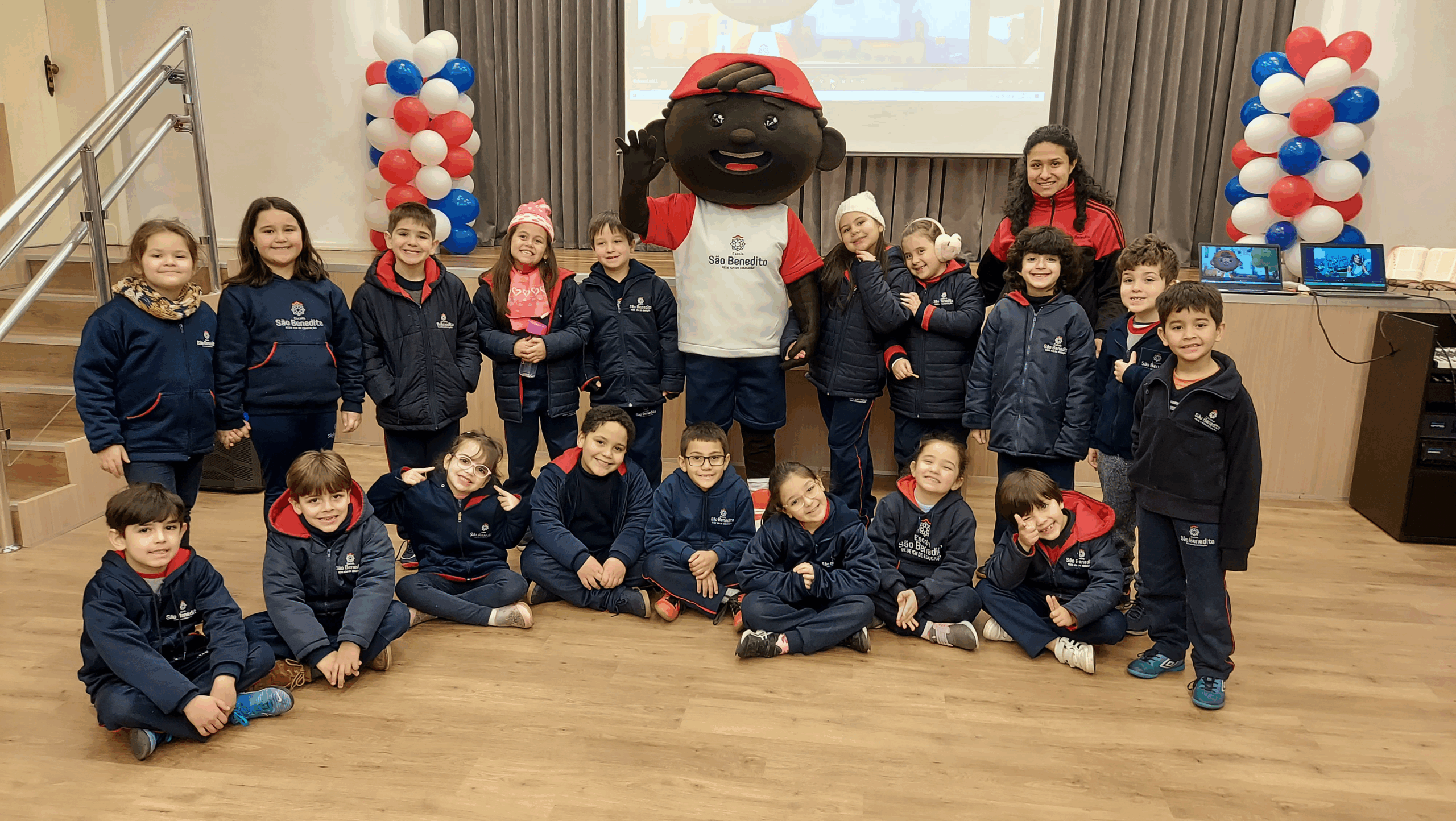 Dentre as atividades, vivemos a Hora da Pastoral com a Coord. de Pastoral, Filomena, que abordou a importância da amizade através de cantinhos e coreografias, e apresentou o amigão dos estudantes do São Benedito, o mascote Bene, que teve sua estreia em 17 de julho. As crianças também assistiram uma peça de teatro, que foi preparada com muito carinho pela equipe da Hora do Conto, “Tia Rosinha e seus Amigos”, que trouxe a adaptação do clássico infantil, Chapeuzinho Vermelho, de forma inédita, relacionando a leitura e a amizade. Para que esses dois momentos valiosos se tornassem ainda mais extraordinários, os estudantes das turmas de 1º a 4º Ano, que são amigos de toda a escola, participaram como convidados mais que especiais!