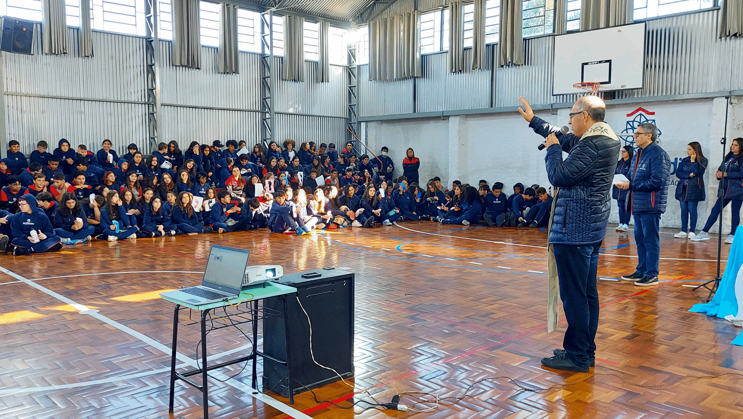 Centrado no princípio do coração que arde ao ouvir a Palavra, e dos pés que se colocam a caminho para anunciar o encontro com o Ressuscitado, o momento contou com a bênção do Padre Jair da Silva (Catedral de São Sebastião), com a encenação da passagem dos Discípulos de Emaús (realizada pelos estudantes do 9º Ano e o professor de teatro), com o gesto simbólico de cada estudante colocar os “seus pés” a caminho de Deus, e a ação solidária, que se deu através da arrecadação de alimentos não perecíveis, que serão destinados às famílias necessitadas.