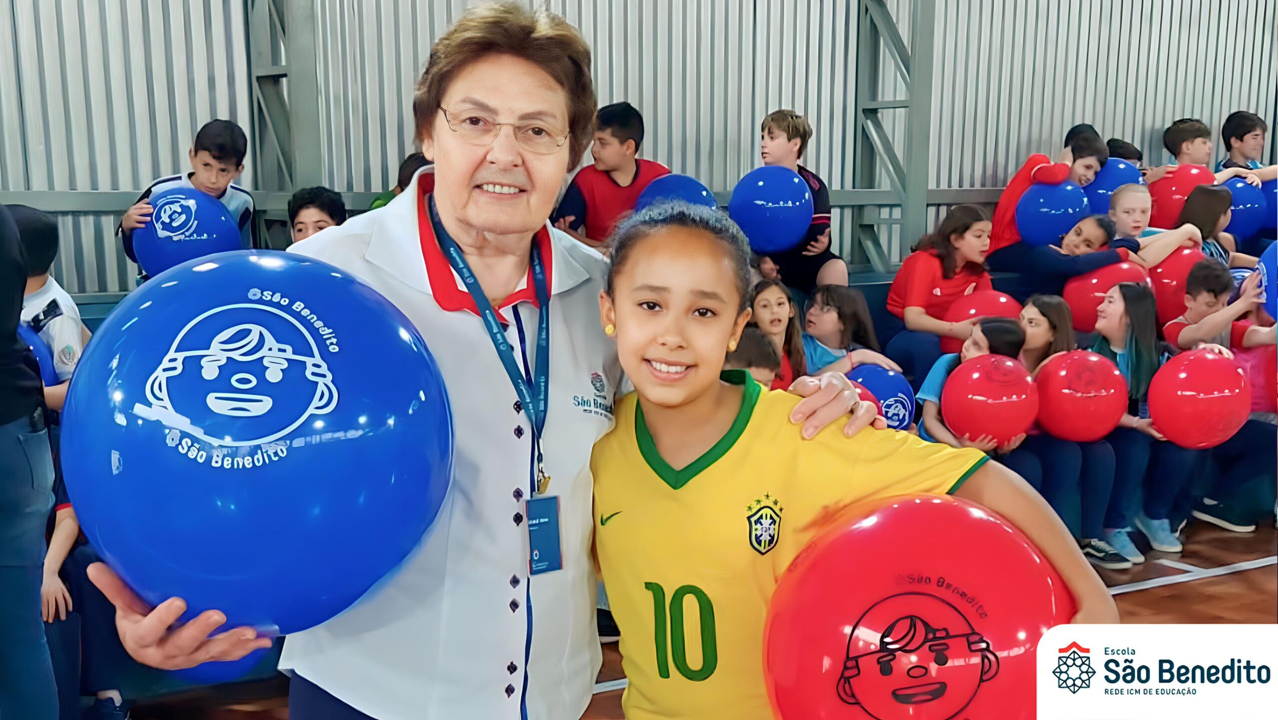 Ser criança é bom, não é mesmo? Agora imagine ser criança e ganhar presente? É bom demais! E foi pensando em tornar esse dia ainda mais especial, que a Diretora, Irmã Ines Terezinha Sangalli, fez a entrega de um presente (bola do Bene) para as crianças do São Benedito aproveitarem ainda mais essa parte linda da vida.