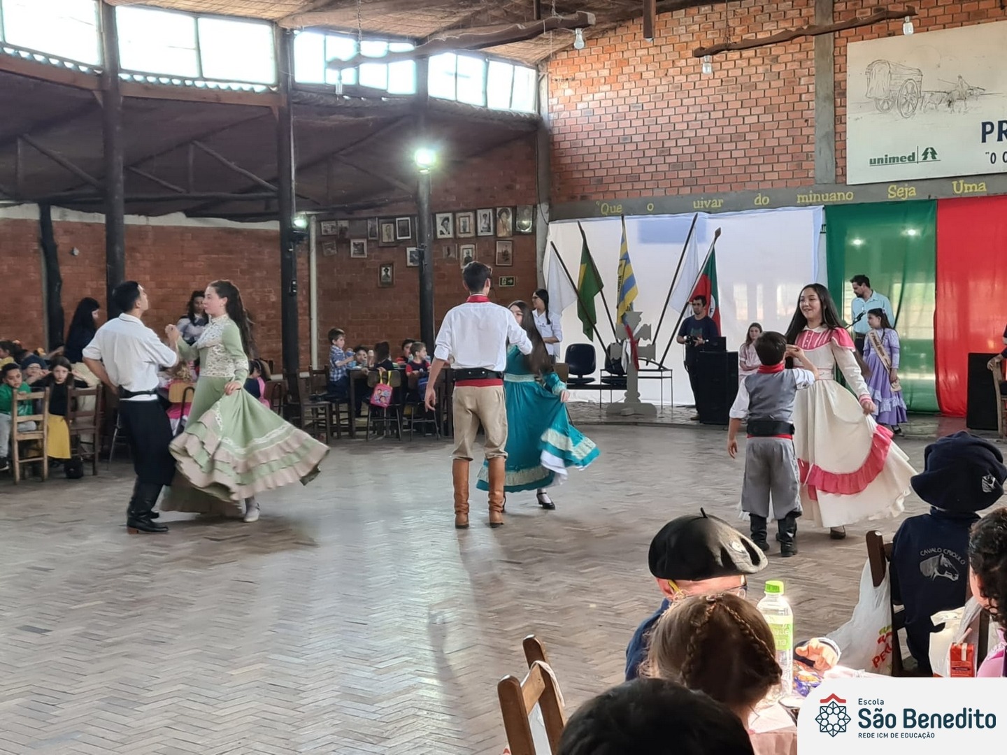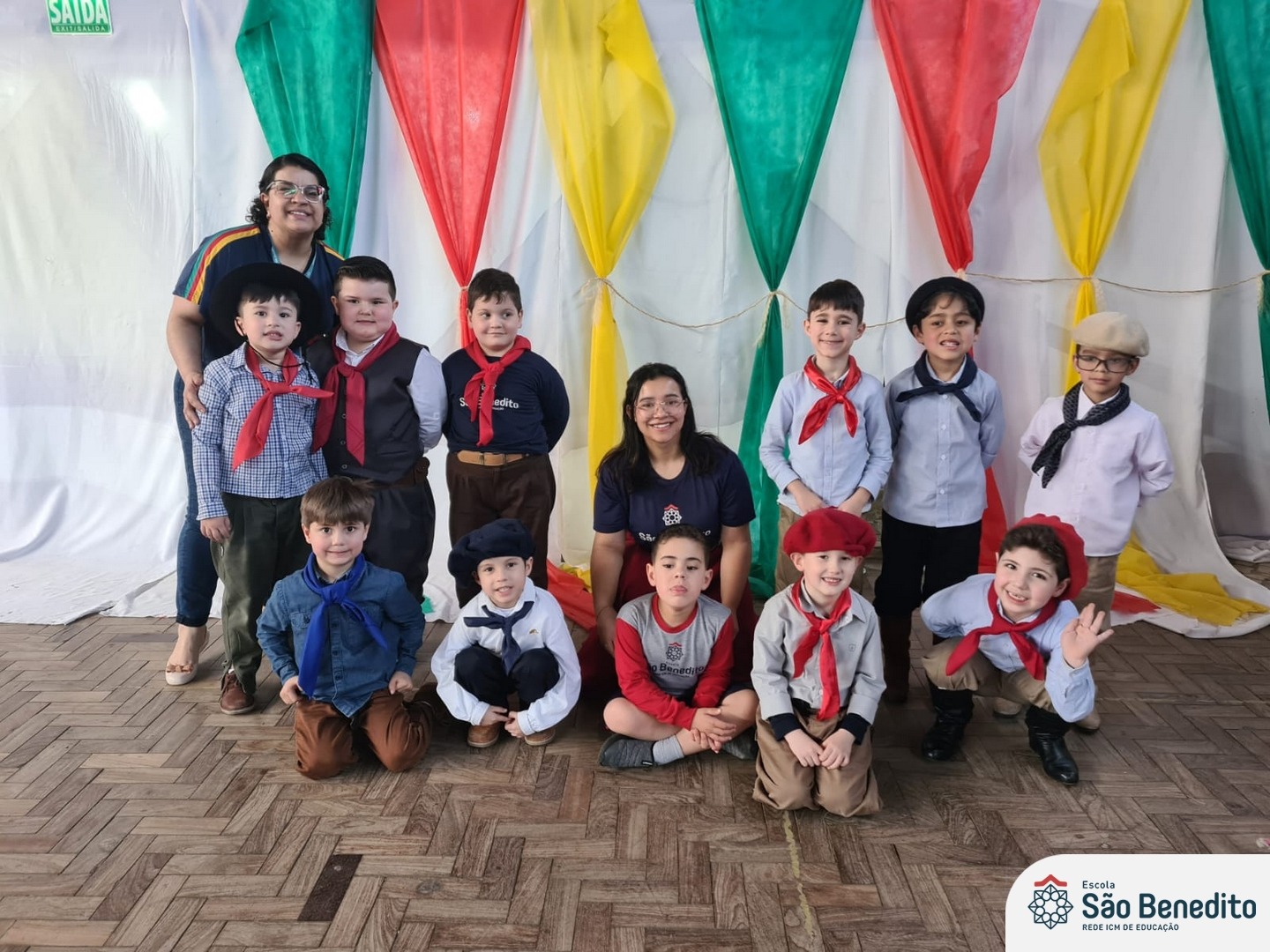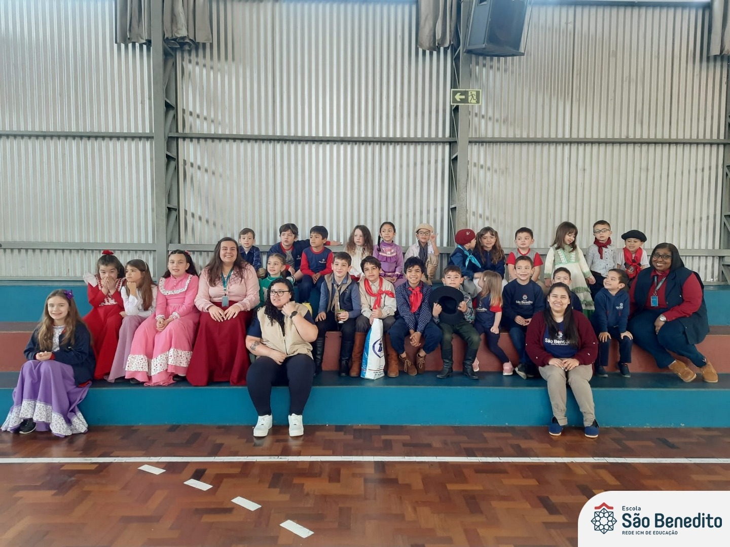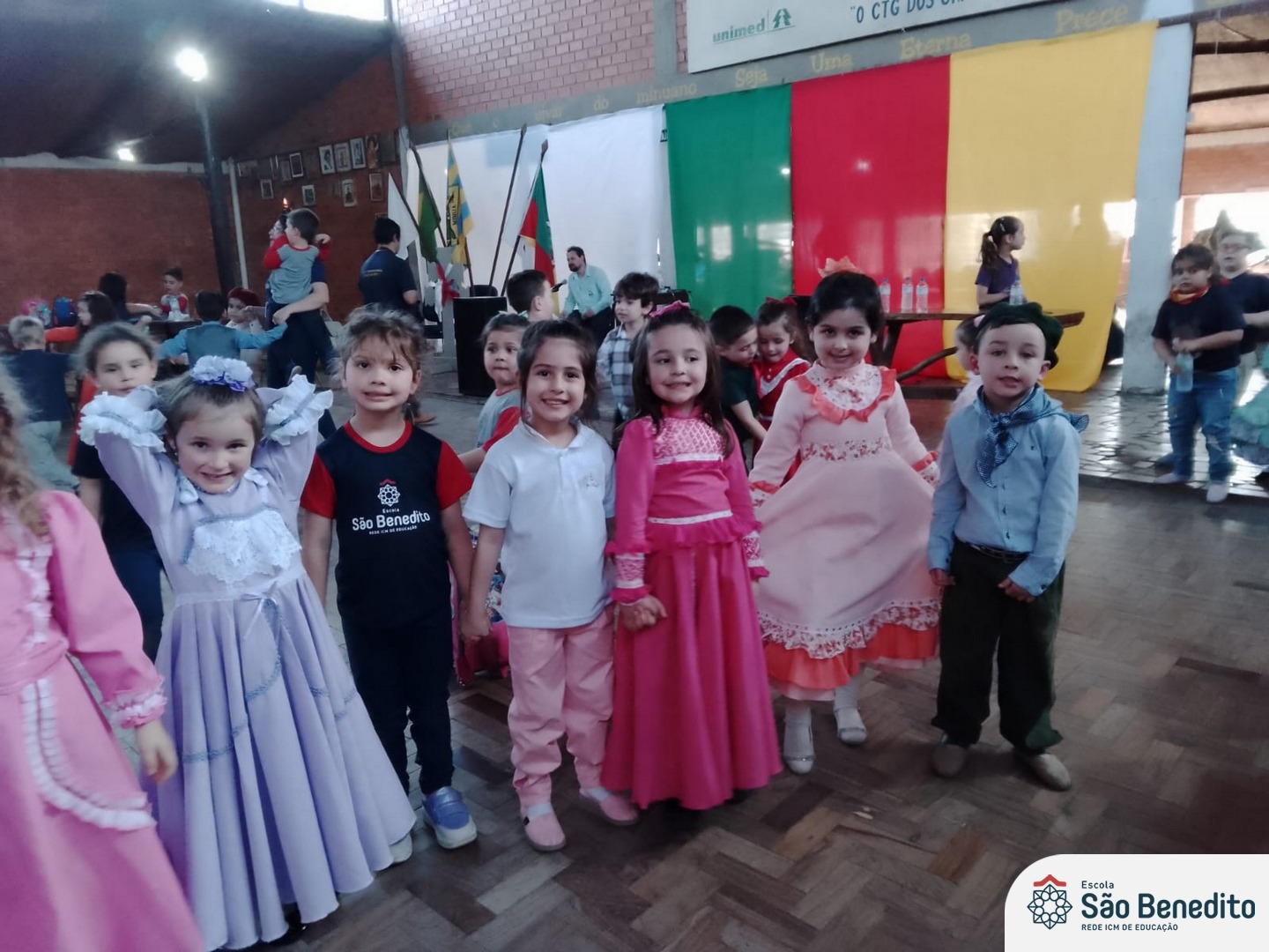 Durante a Semana Farroupilha, a Escola São Benedito celebrou com uma série de atividades tradicionalistas que envolveram toda a comunidade escolar. Houve apresentações de CTG, declamações, música e dança. Essas atividades proporcionaram um momento de confraternização e aprendizado sobre a cultura gaúcha, fortalecendo os laços entre os participantes e celebrando as tradições do Rio Grande do Sul.
