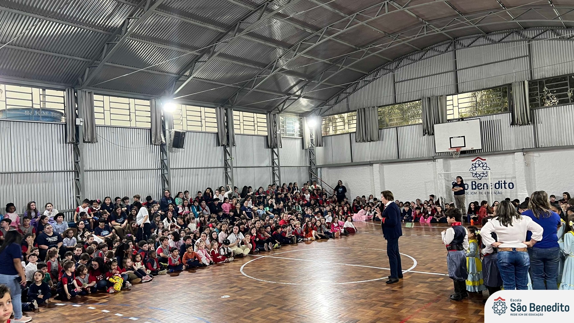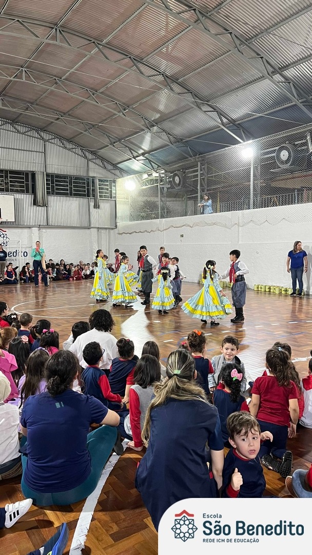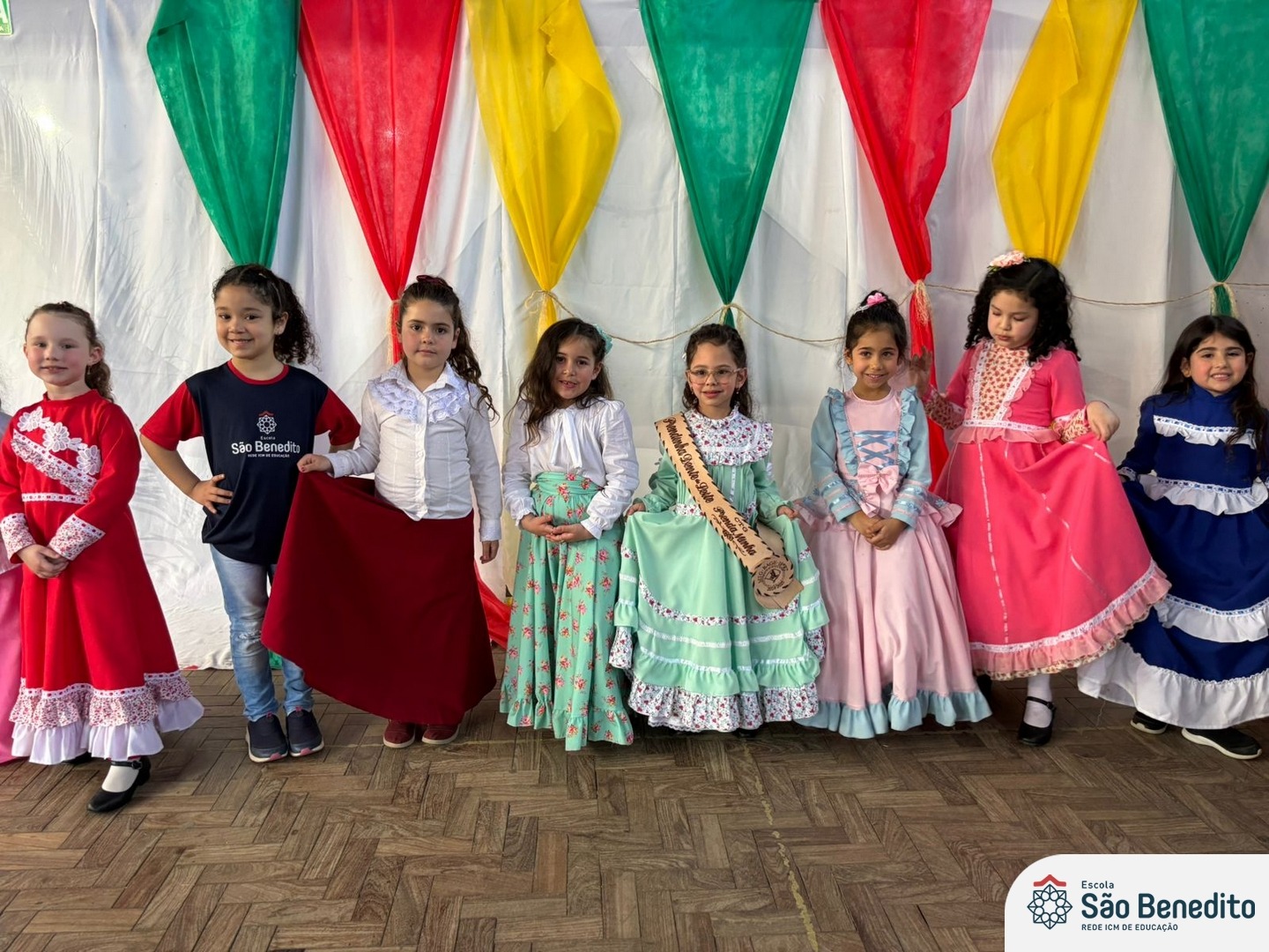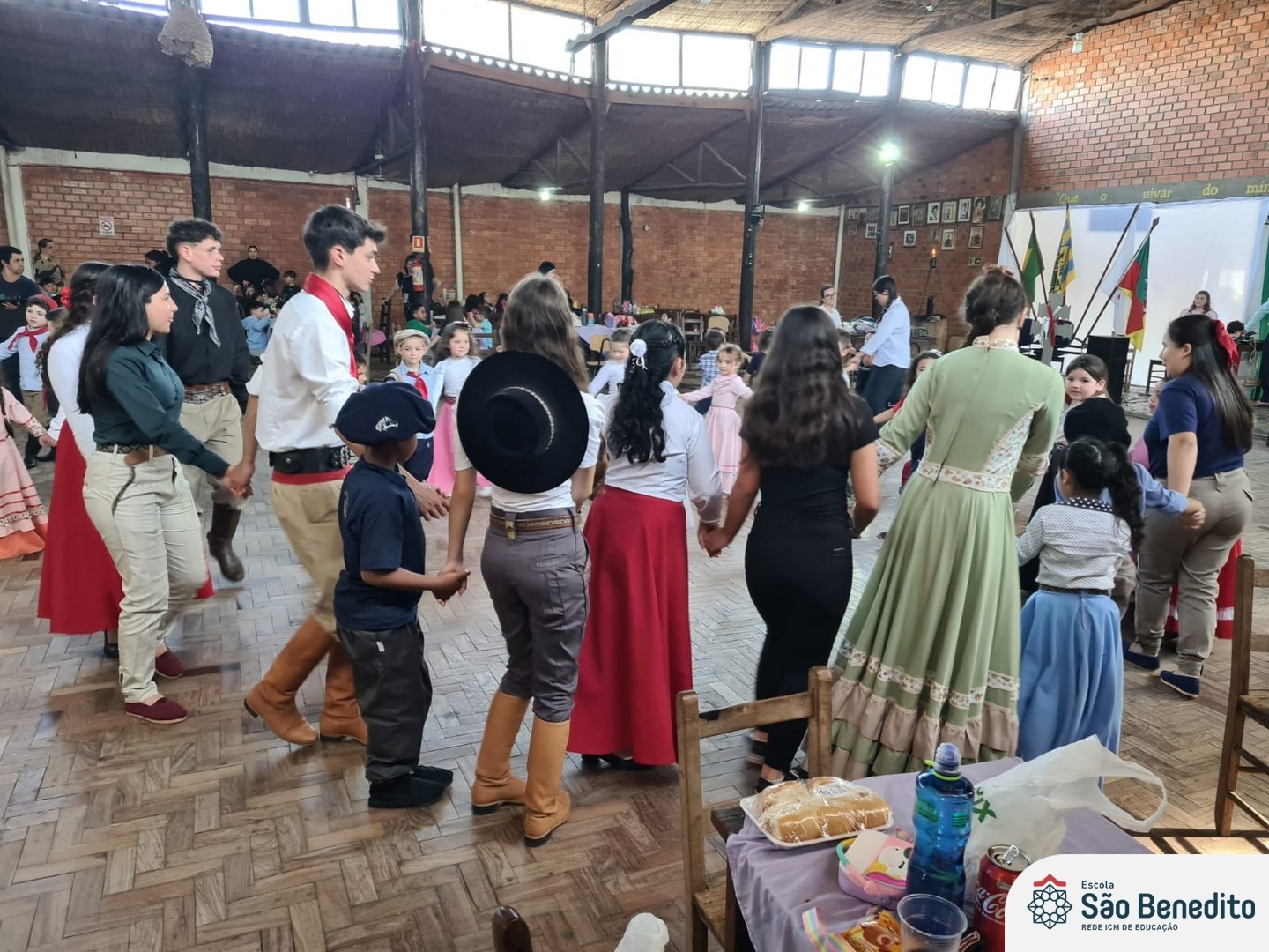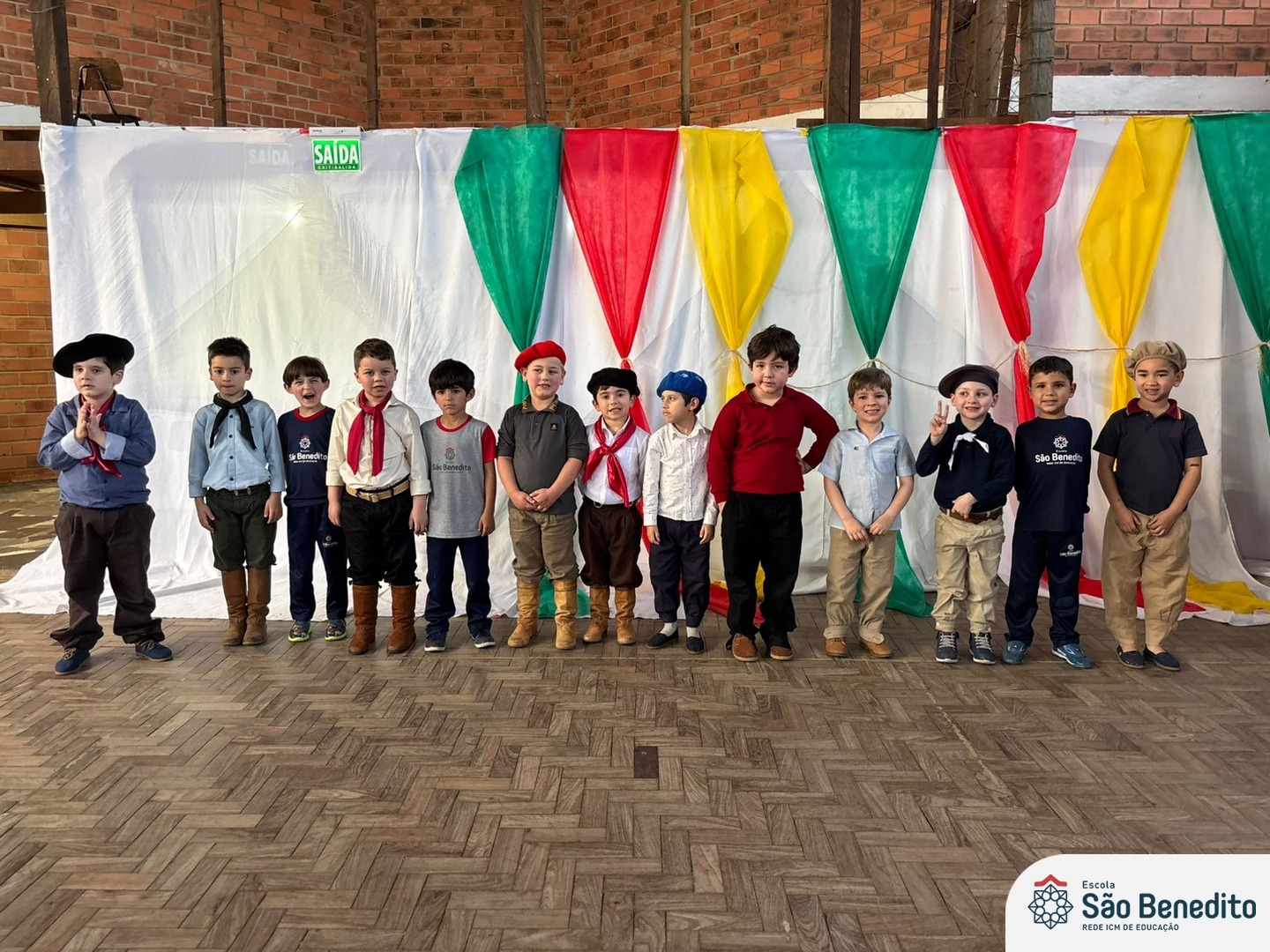 Durante a Semana Farroupilha, a Escola São Benedito celebrou com uma série de atividades tradicionalistas que envolveram toda a comunidade escolar. Houve apresentações de CTG, declamações, música e dança. Essas atividades proporcionaram um momento de confraternização e aprendizado sobre a cultura gaúcha, fortalecendo os laços entre os participantes e celebrando as tradições do Rio Grande do Sul.