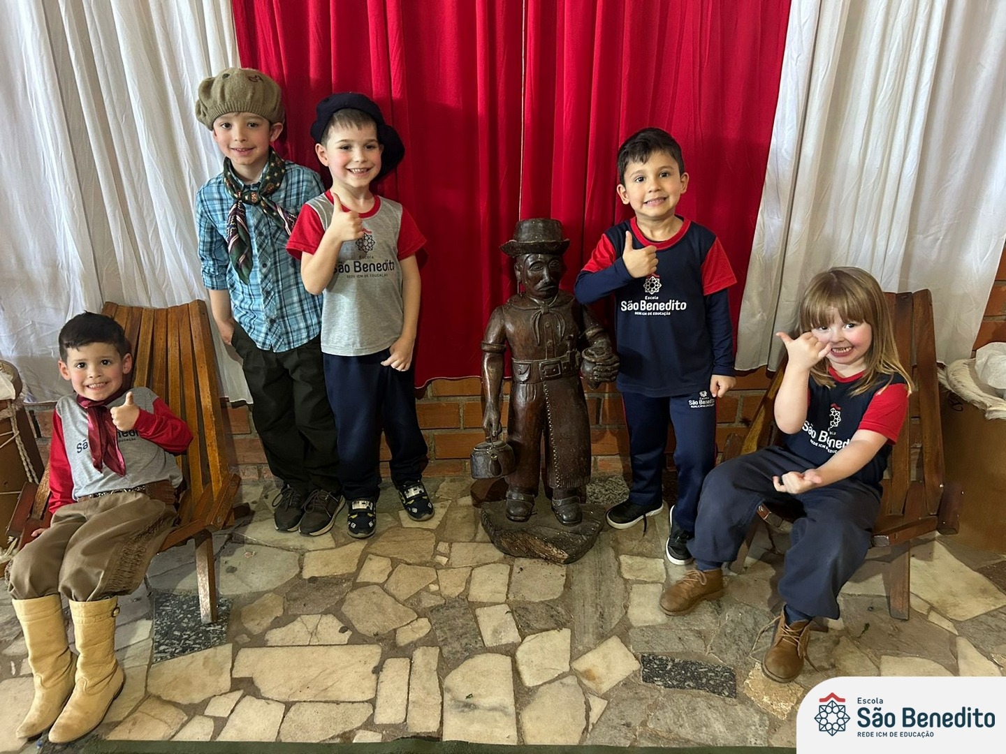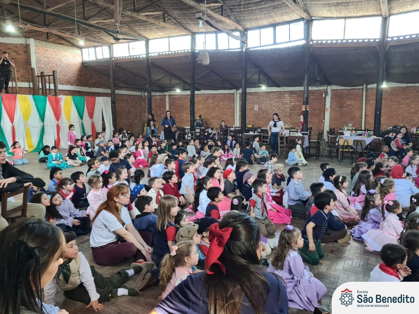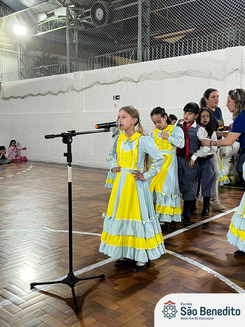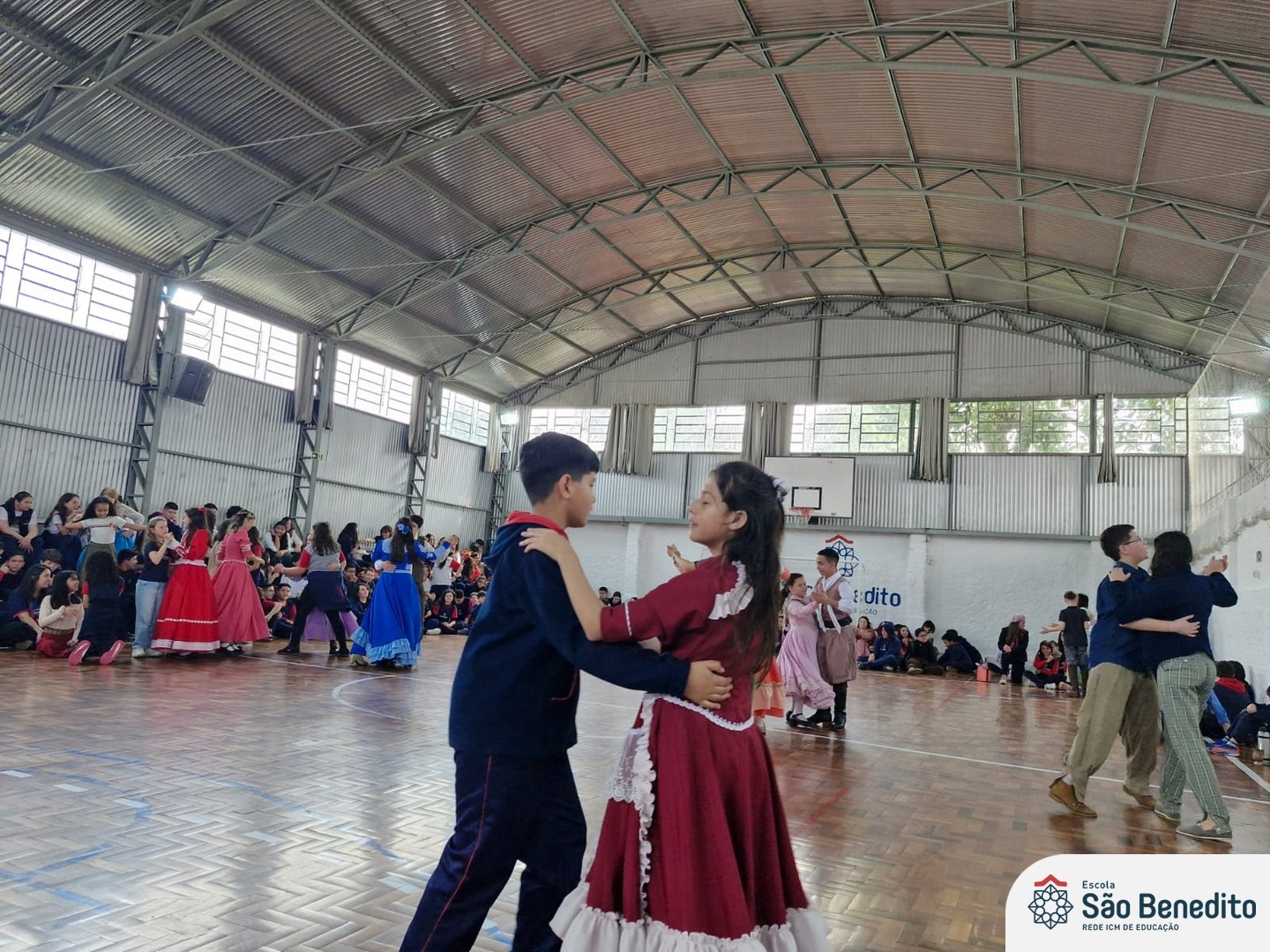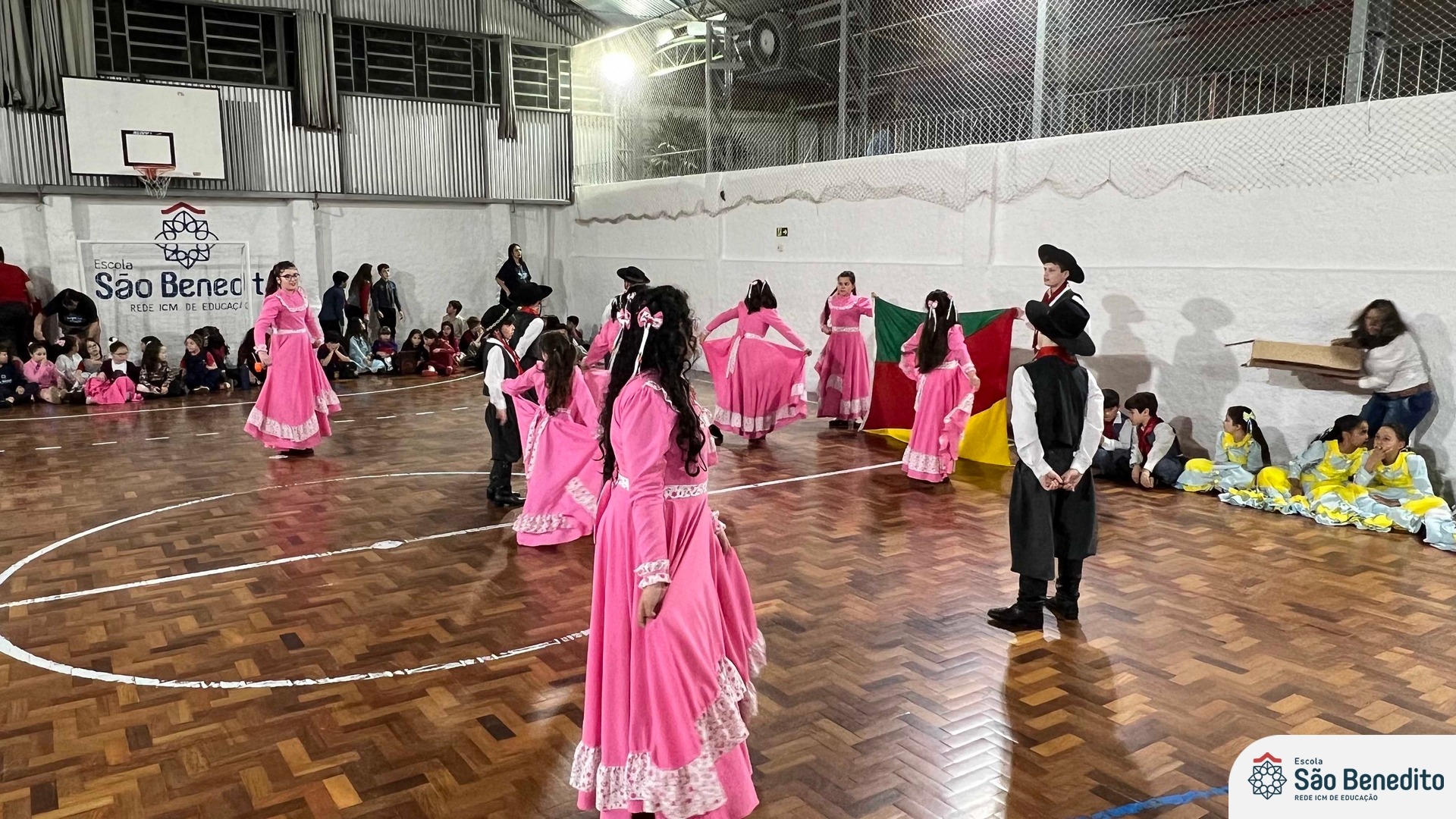 Durante a Semana Farroupilha, a Escola São Benedito celebrou com uma série de atividades tradicionalistas que envolveram toda a comunidade escolar. Houve apresentações de CTG, declamações, música e dança. Essas atividades proporcionaram um momento de confraternização e aprendizado sobre a cultura gaúcha, fortalecendo os laços entre os participantes e celebrando as tradições do Rio Grande do Sul.
