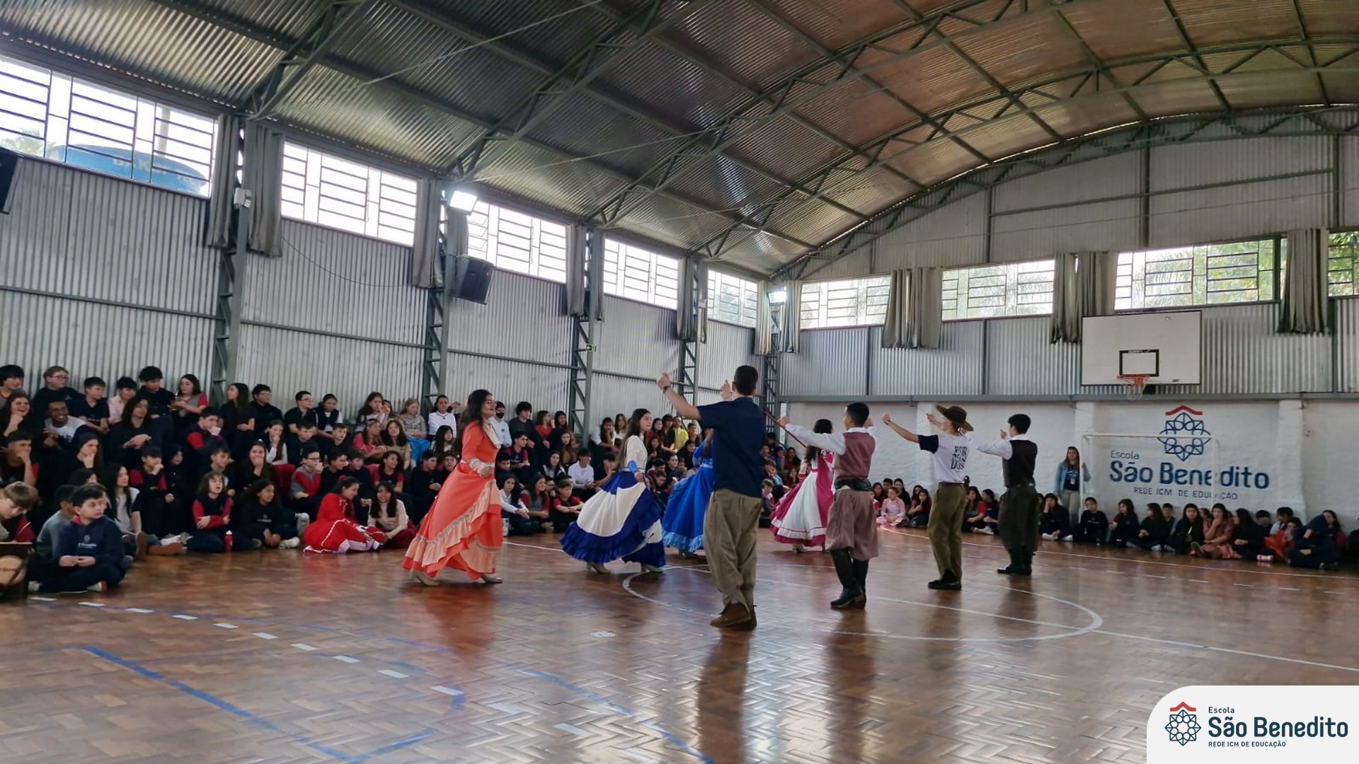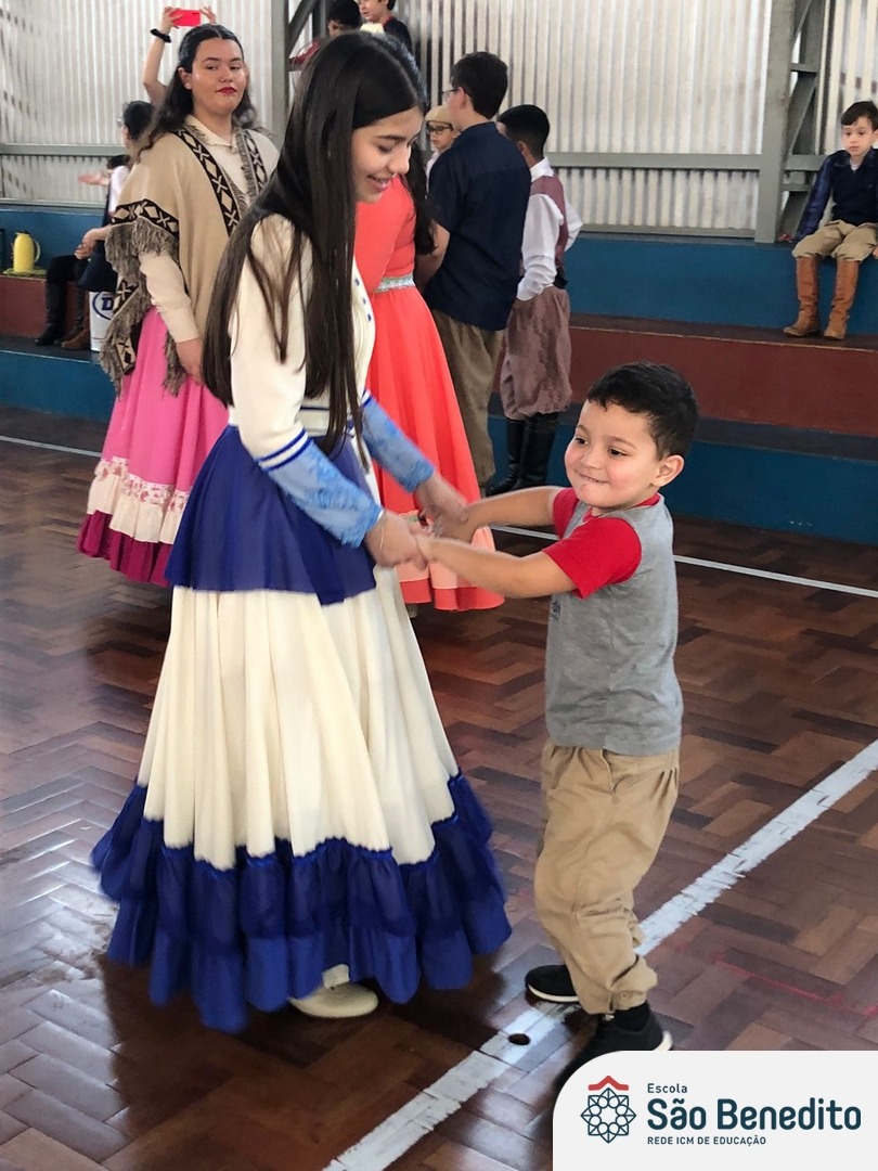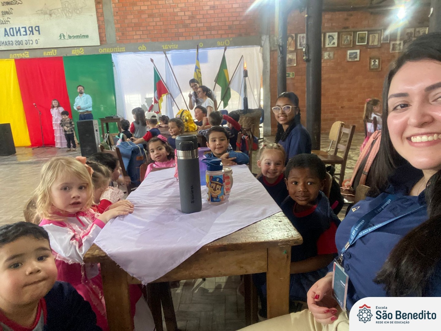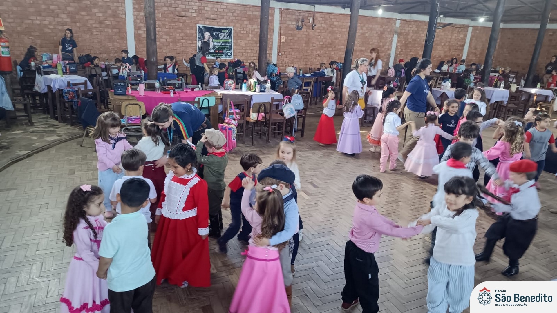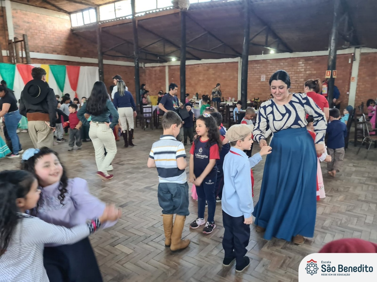 Durante a Semana Farroupilha, a Escola São Benedito celebrou com uma série de atividades tradicionalistas que envolveram toda a comunidade escolar. Houve apresentações de CTG, declamações, música e dança. Essas atividades proporcionaram um momento de confraternização e aprendizado sobre a cultura gaúcha, fortalecendo os laços entre os participantes e celebrando as tradições do Rio Grande do Sul.