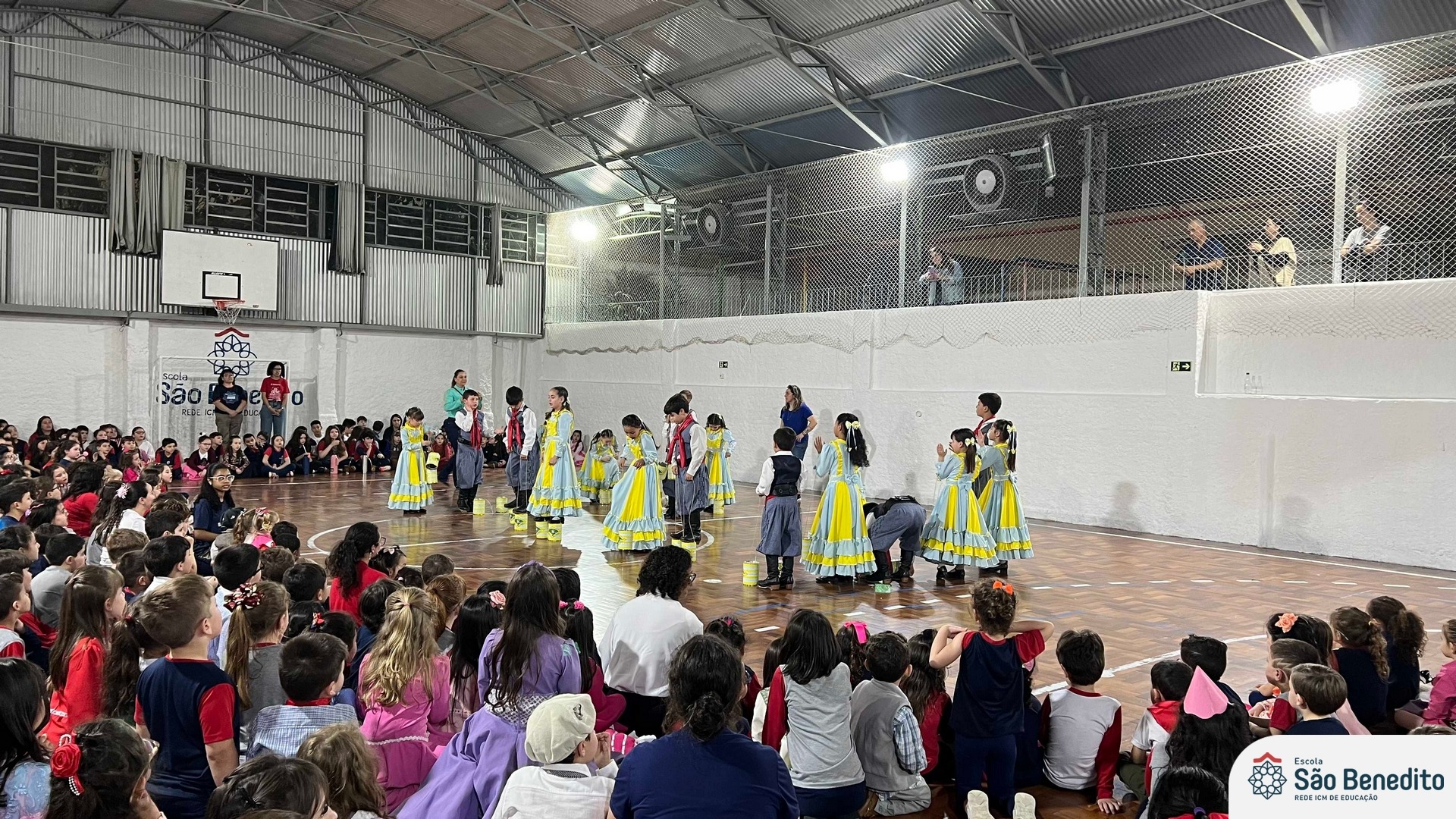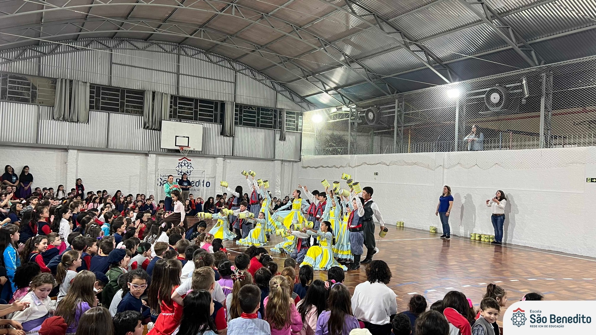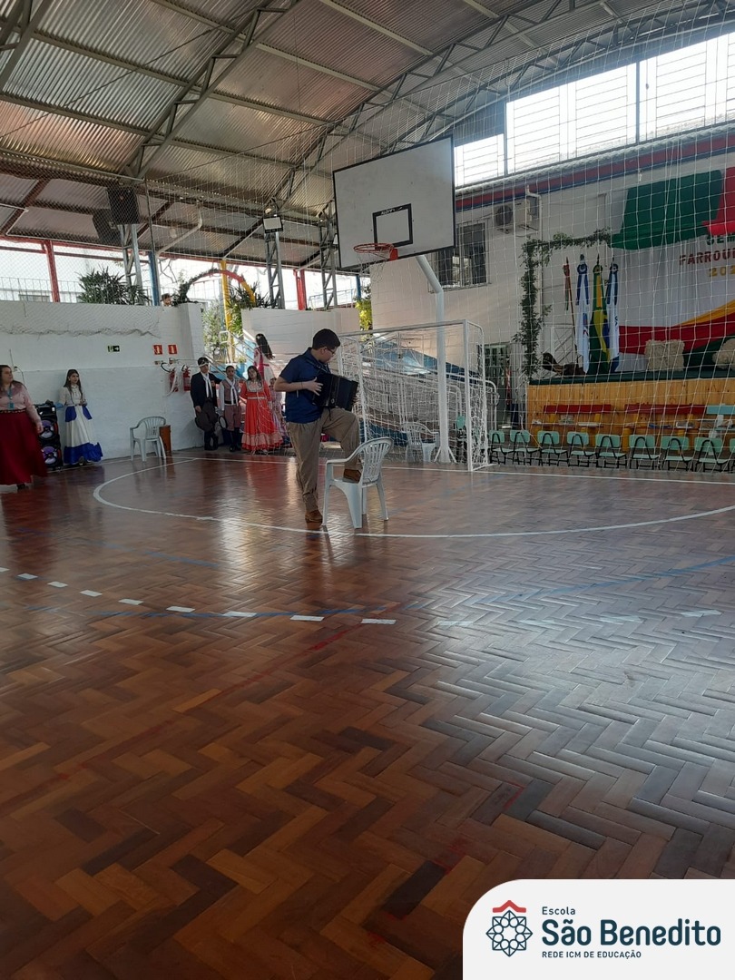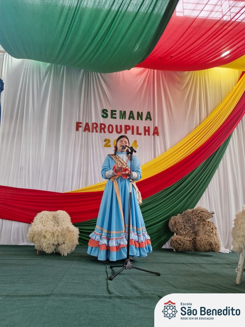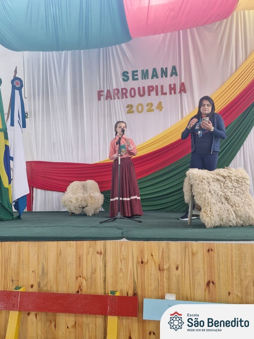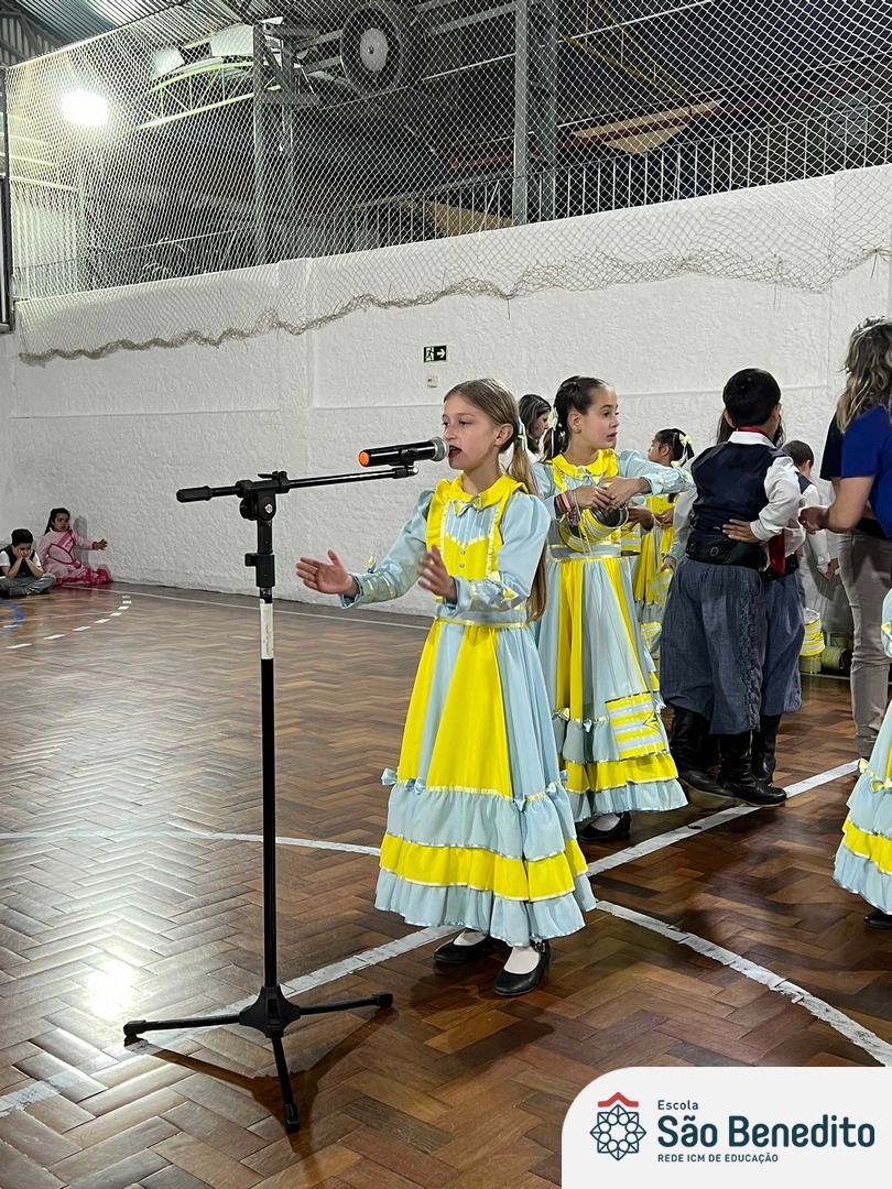 Durante a Semana Farroupilha, a Escola São Benedito celebrou com uma série de atividades tradicionalistas que envolveram toda a comunidade escolar. Houve apresentações de CTG, declamações, música e dança. Essas atividades proporcionaram um momento de confraternização e aprendizado sobre a cultura gaúcha, fortalecendo os laços entre os participantes e celebrando as tradições do Rio Grande do Sul.