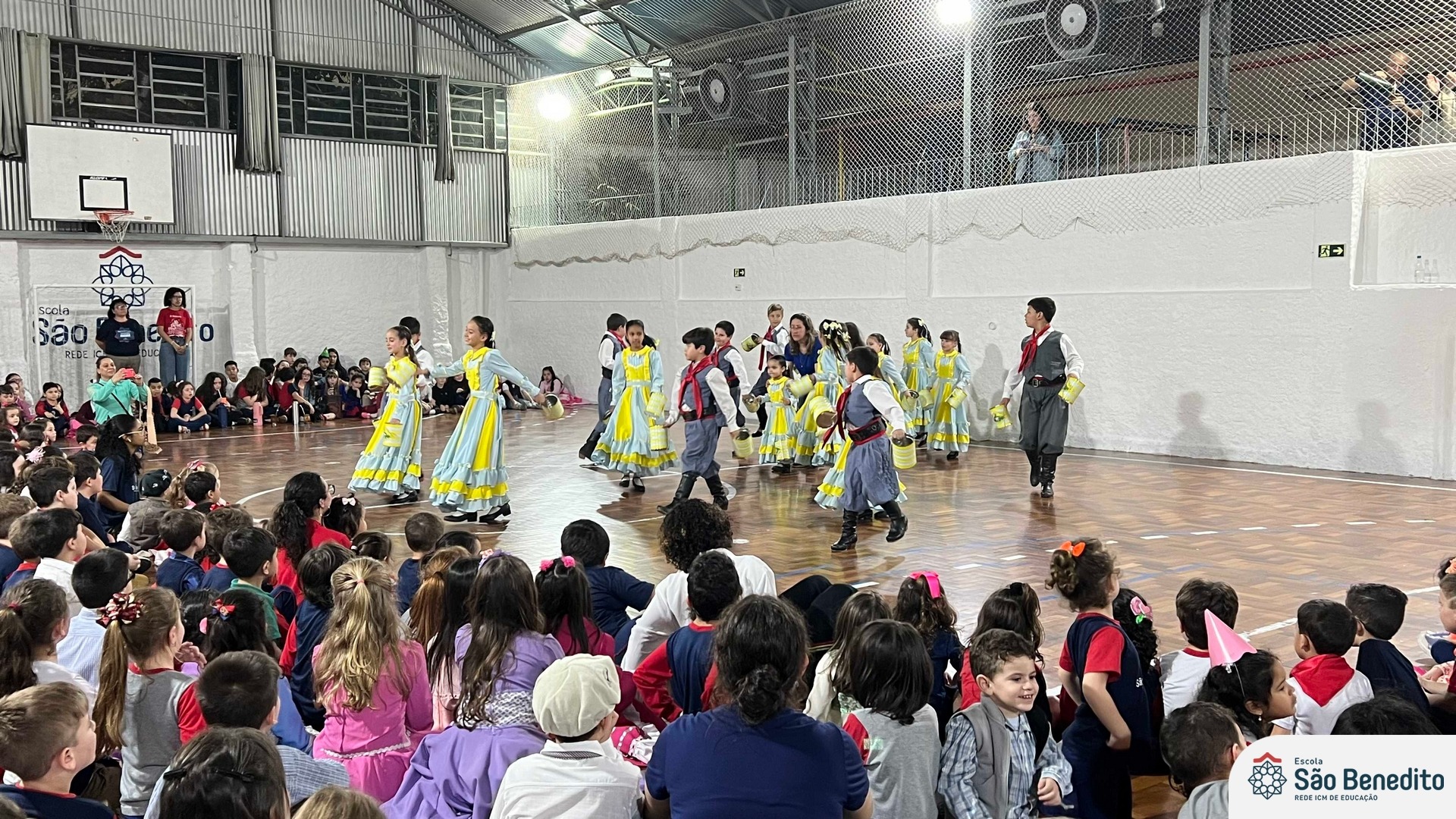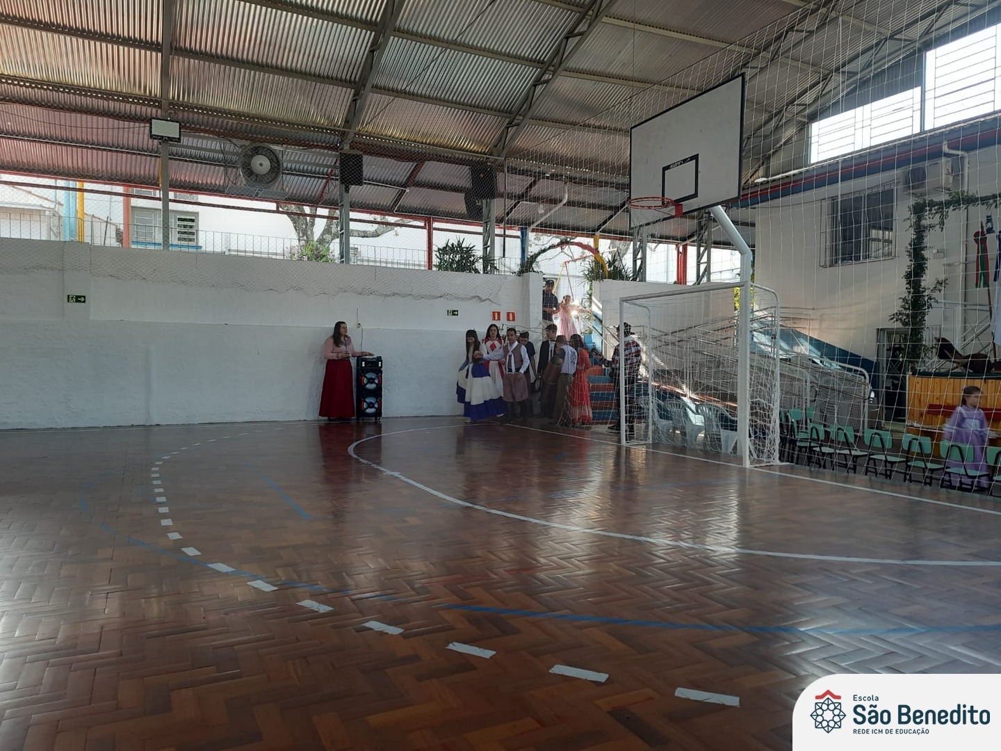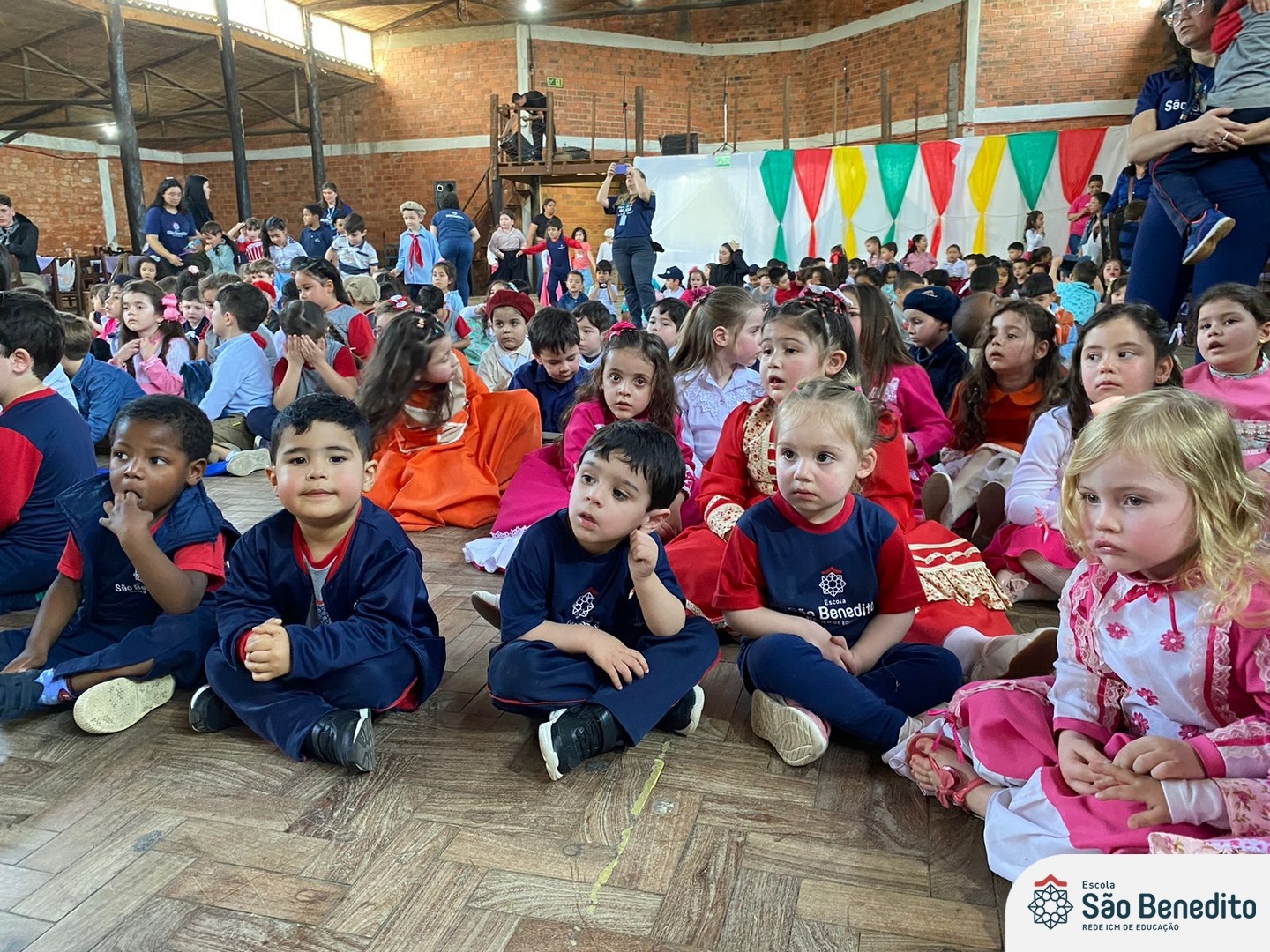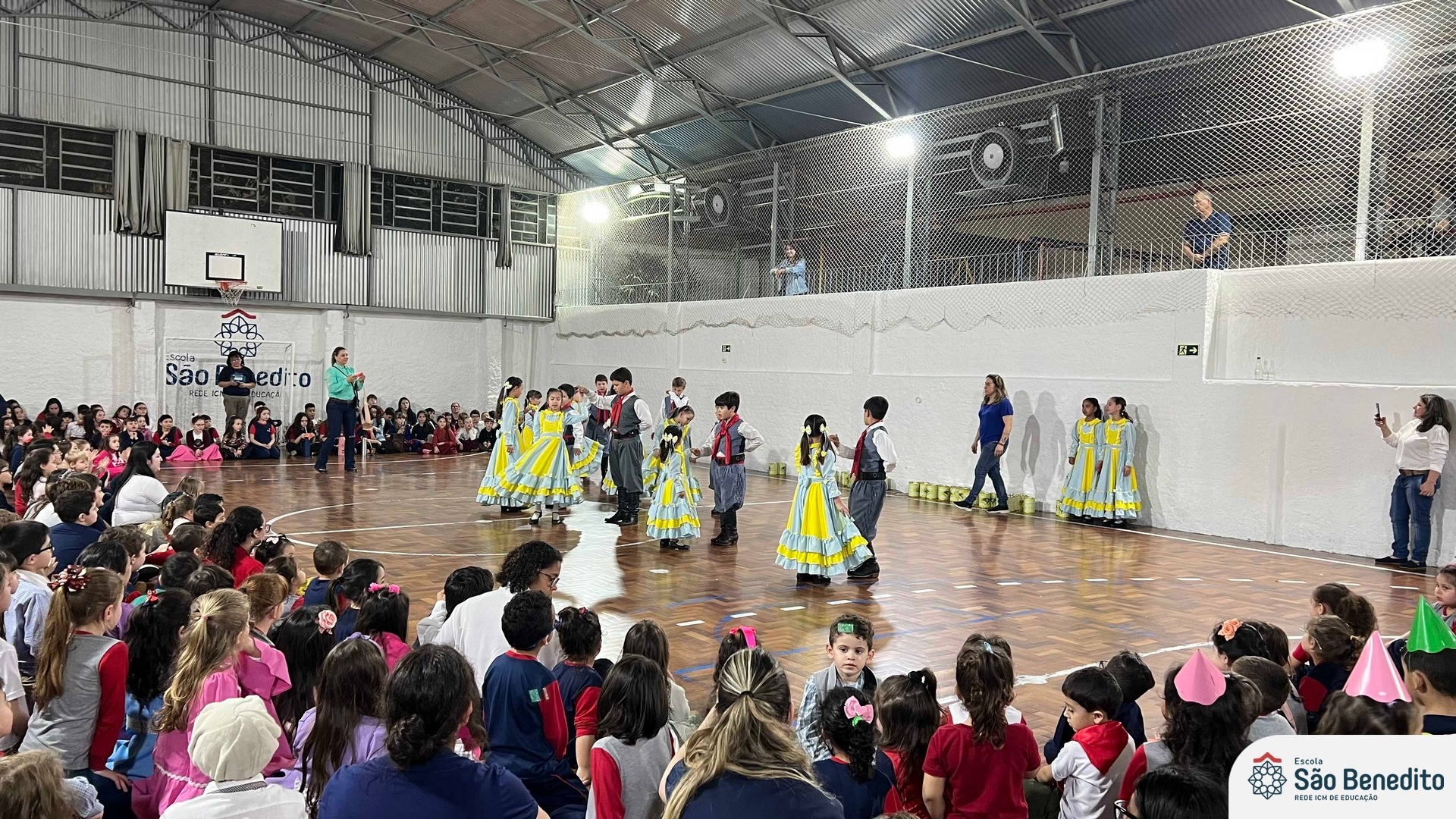 Durante a Semana Farroupilha, a Escola São Benedito celebrou com uma série de atividades tradicionalistas que envolveram toda a comunidade escolar. Houve apresentações de CTG, declamações, música e dança. Essas atividades proporcionaram um momento de confraternização e aprendizado sobre a cultura gaúcha, fortalecendo os laços entre os participantes e celebrando as tradições do Rio Grande do Sul.