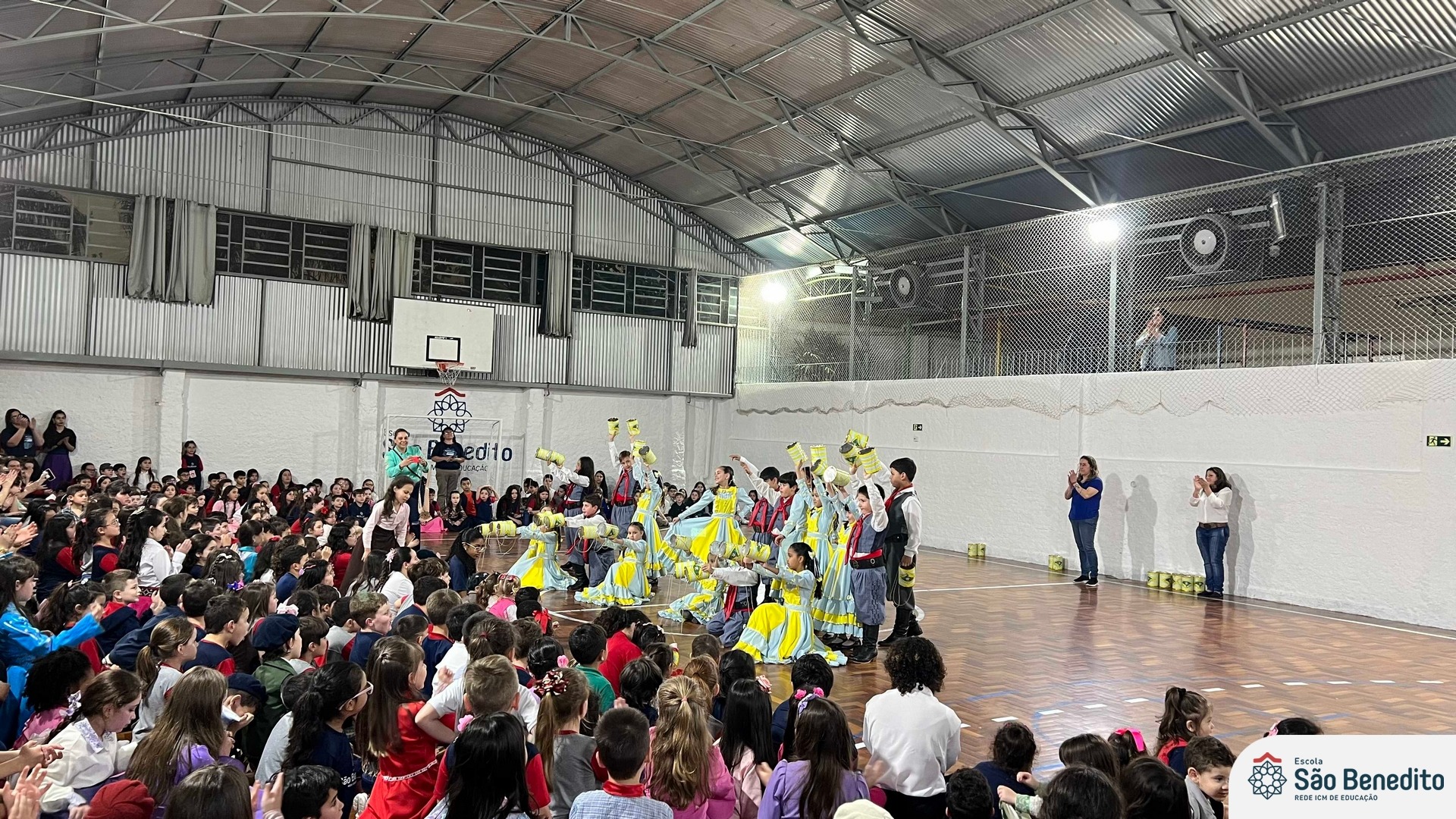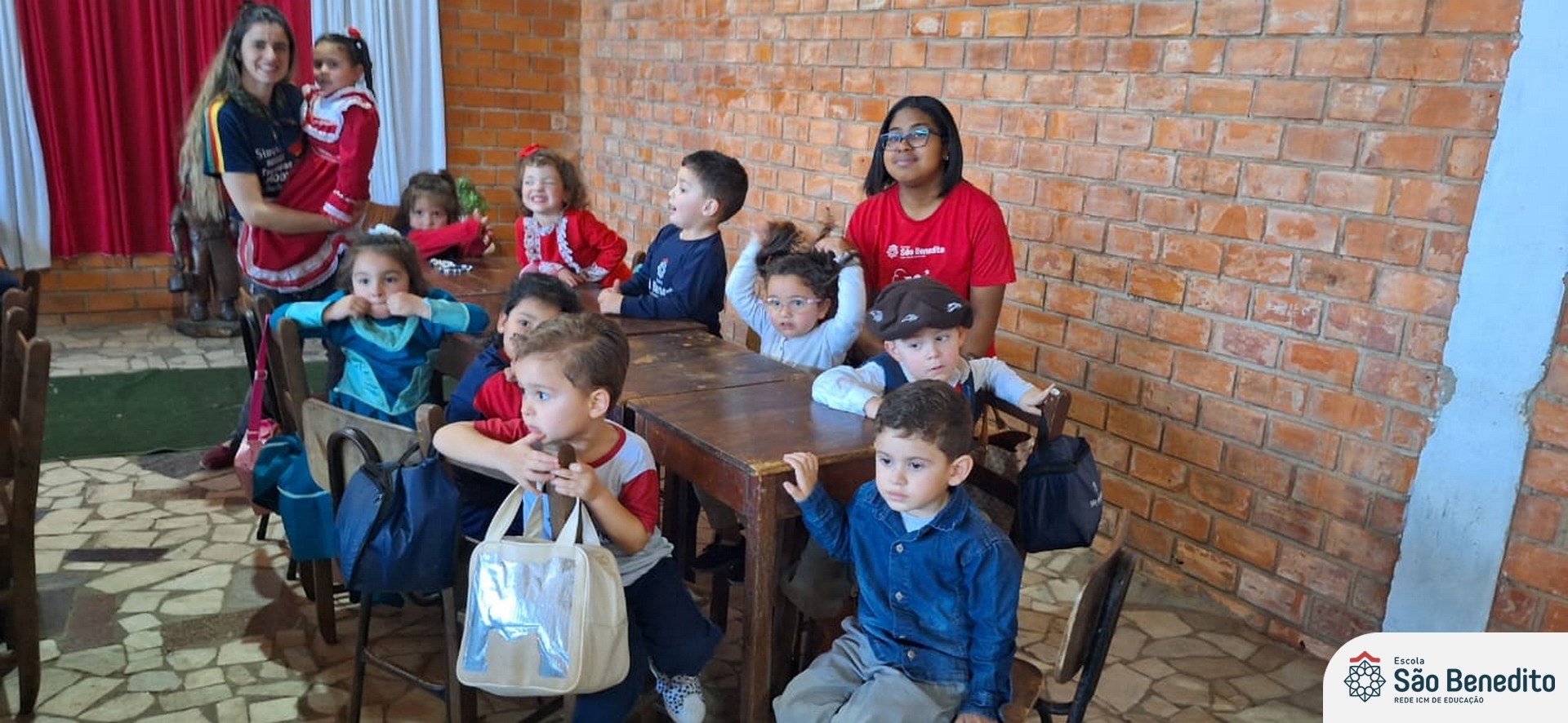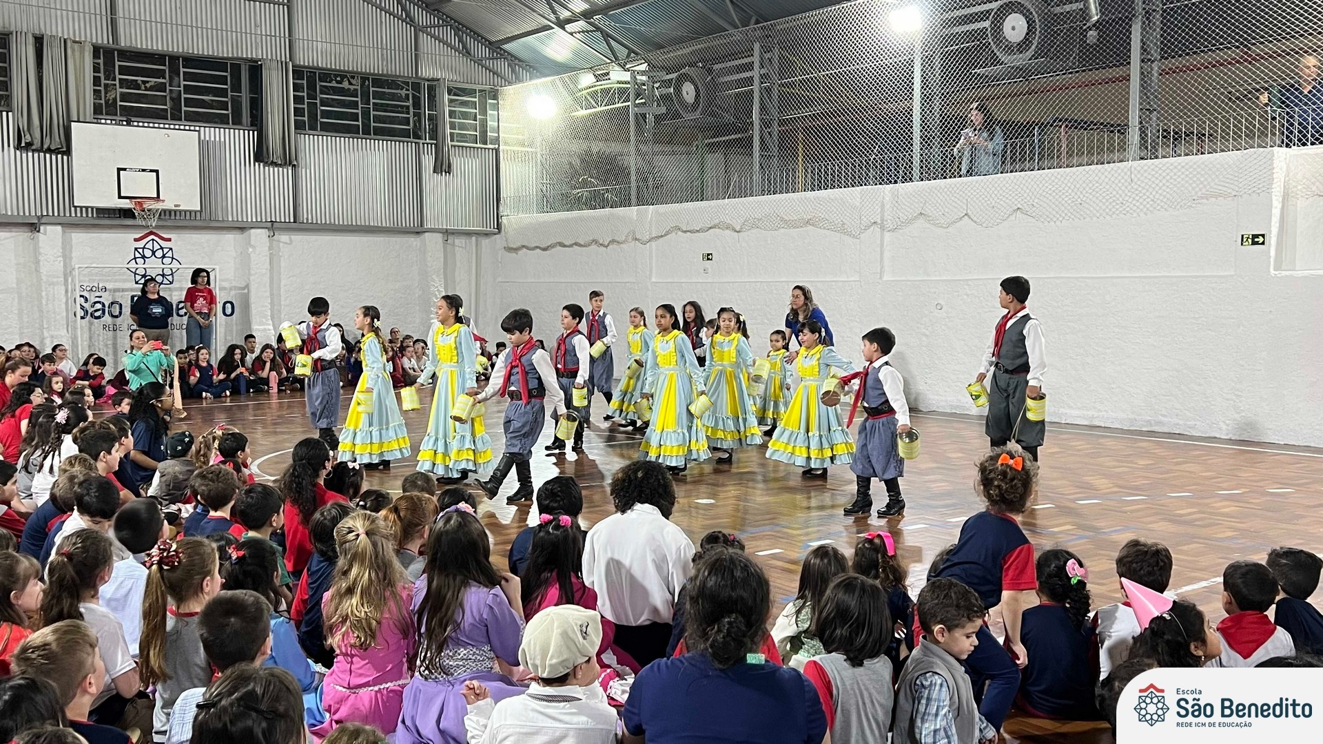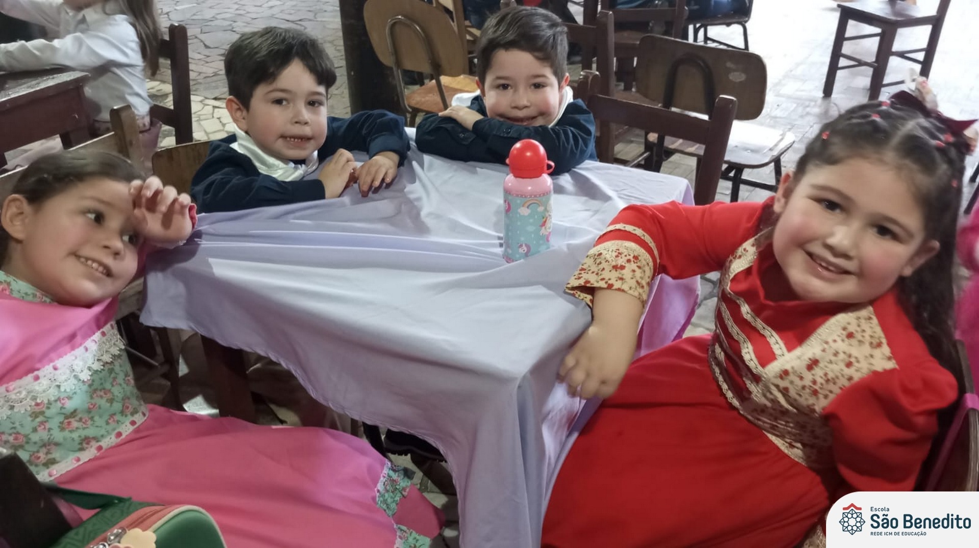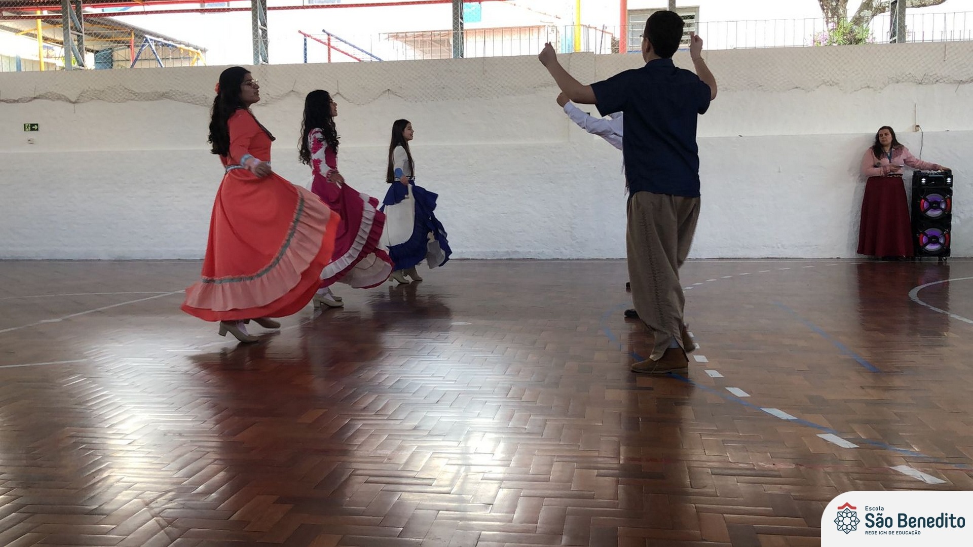Durante a Semana Farroupilha, a Escola São Benedito celebrou com uma série de atividades tradicionalistas que envolveram toda a comunidade escolar. Houve apresentações de CTG, declamações, música e dança. Essas atividades proporcionaram um momento de confraternização e aprendizado sobre a cultura gaúcha, fortalecendo os laços entre os participantes e celebrando as tradições do Rio Grande do Sul.