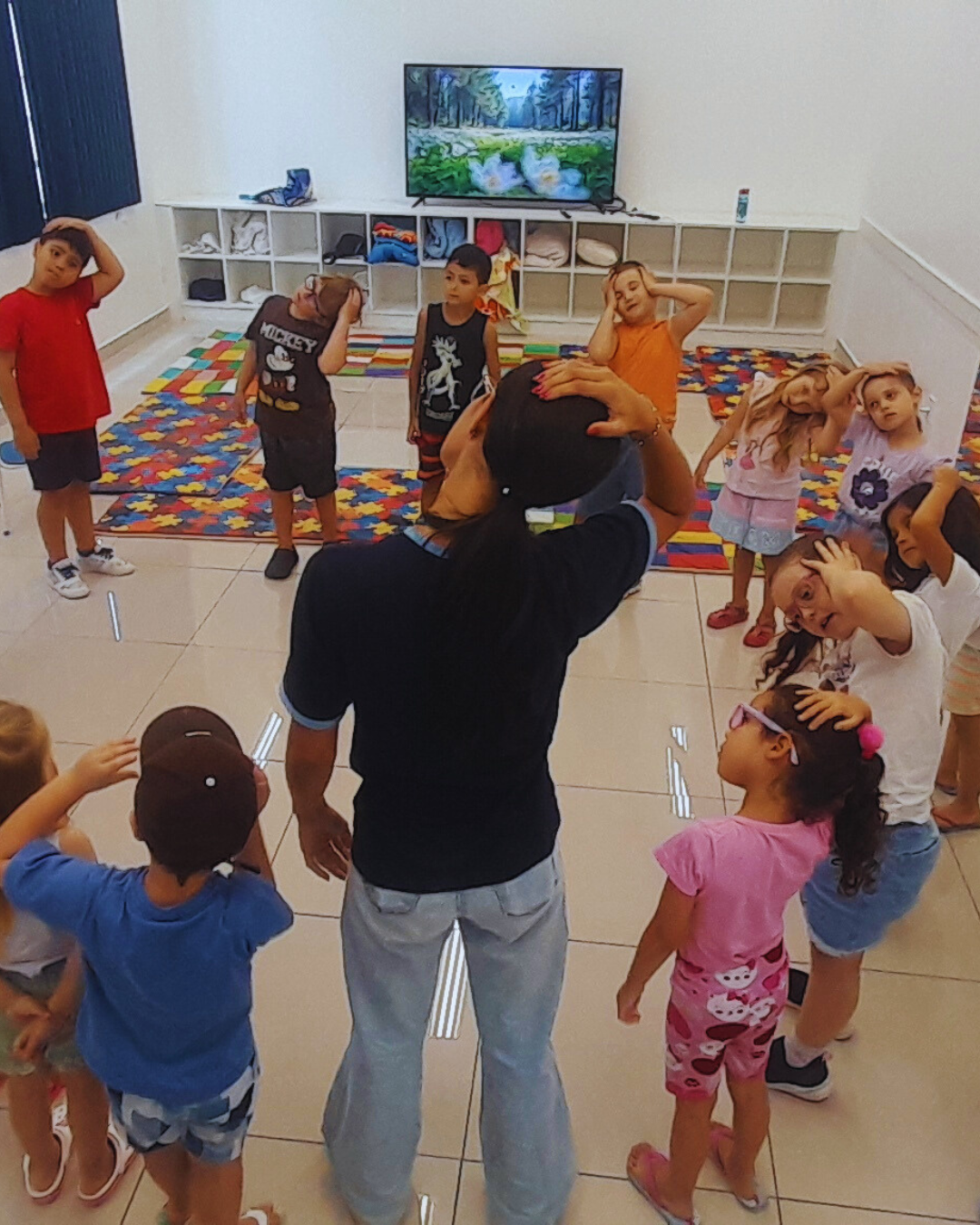 Entre as atividades realizadas, destacaram-se momentos de cineminha, tarde molhada, atividades esportivas como “Afunda ou Boia?”, circuito sobre rodas, além de propostas voltadas ao cuidado emocional e ao equilíbrio, como a oficina de meditação e a volta à calma.