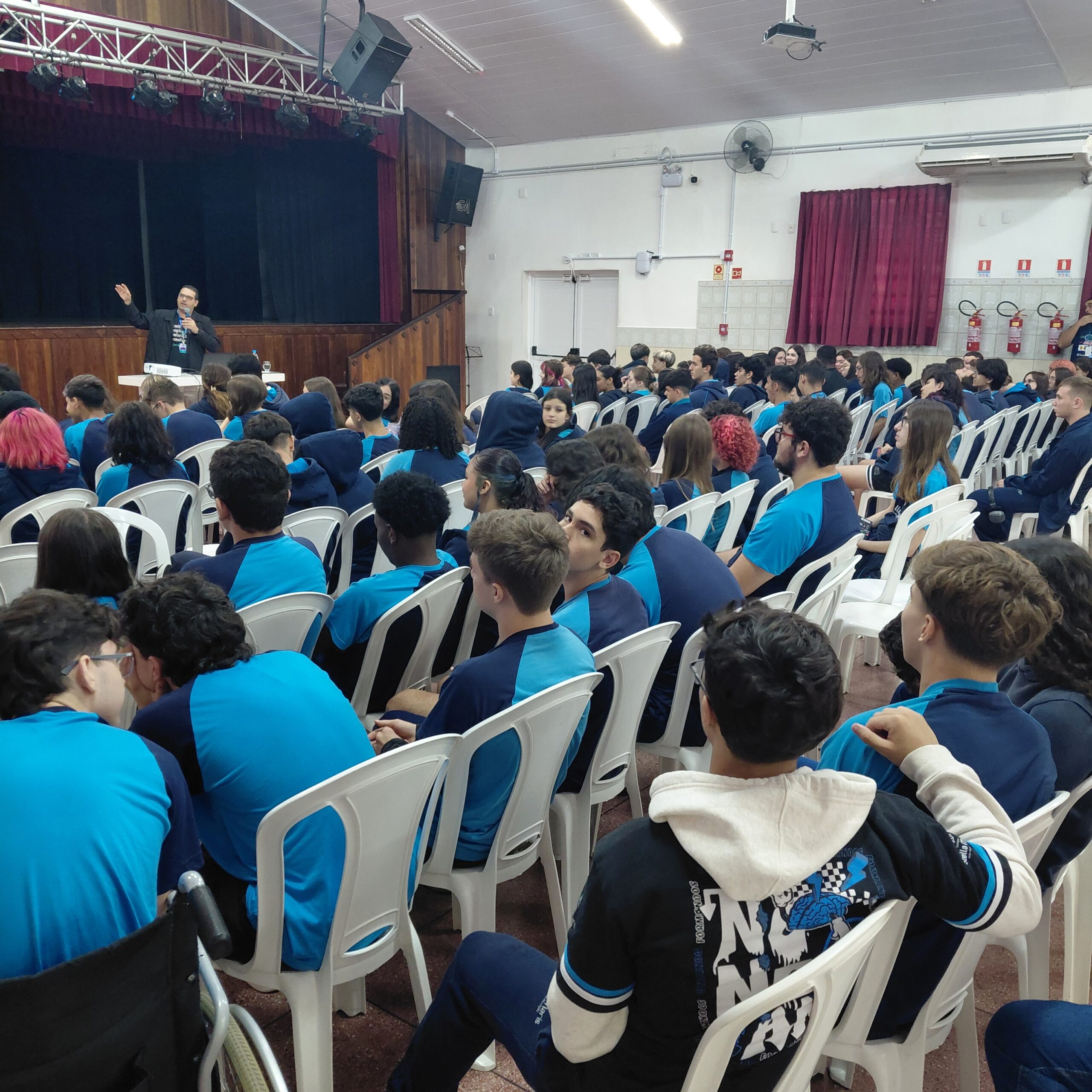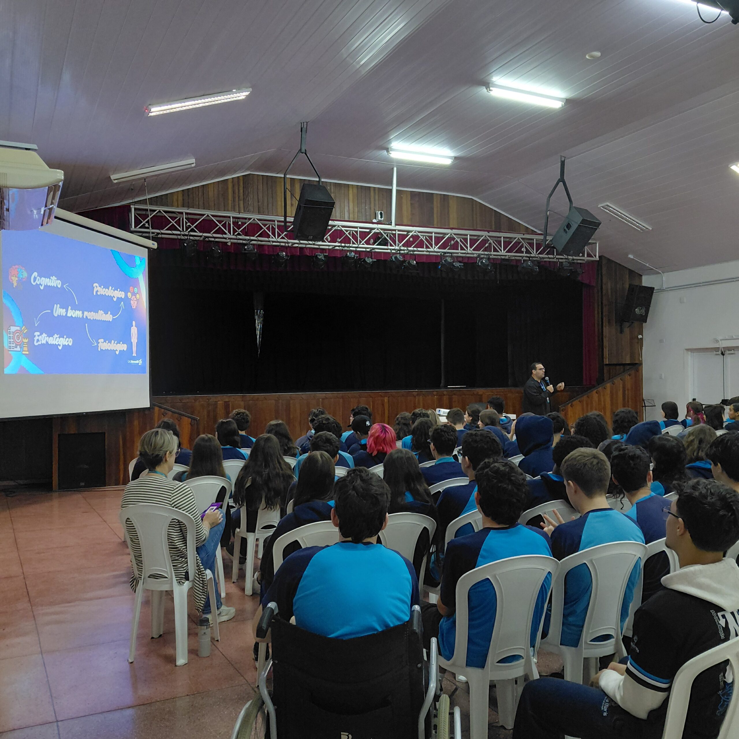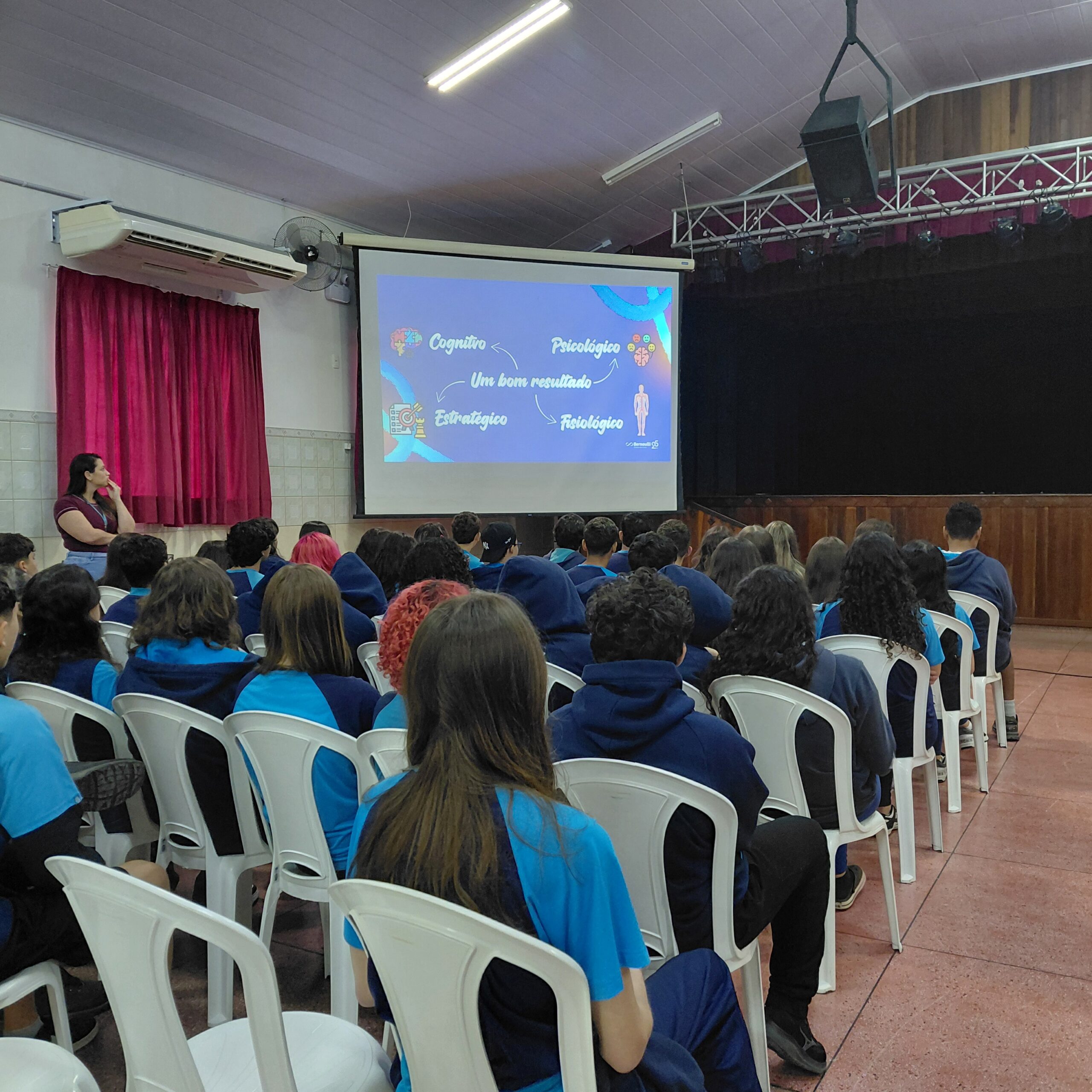 A atividade foi direcionada aos estudantes da 1ª, 2ª e 3ª séries do Ensino Médio e contou com a participação do assessor Daniel Pragana, Coordenador de Conteúdo Didático do Ensino Médio do Sistema de Ensino Bernoulli. Durante o encontro, foram compartilhadas orientações e técnicas voltadas à gestão do tempo, organização da rotina de estudos e estratégias para potencializar a aprendizagem.