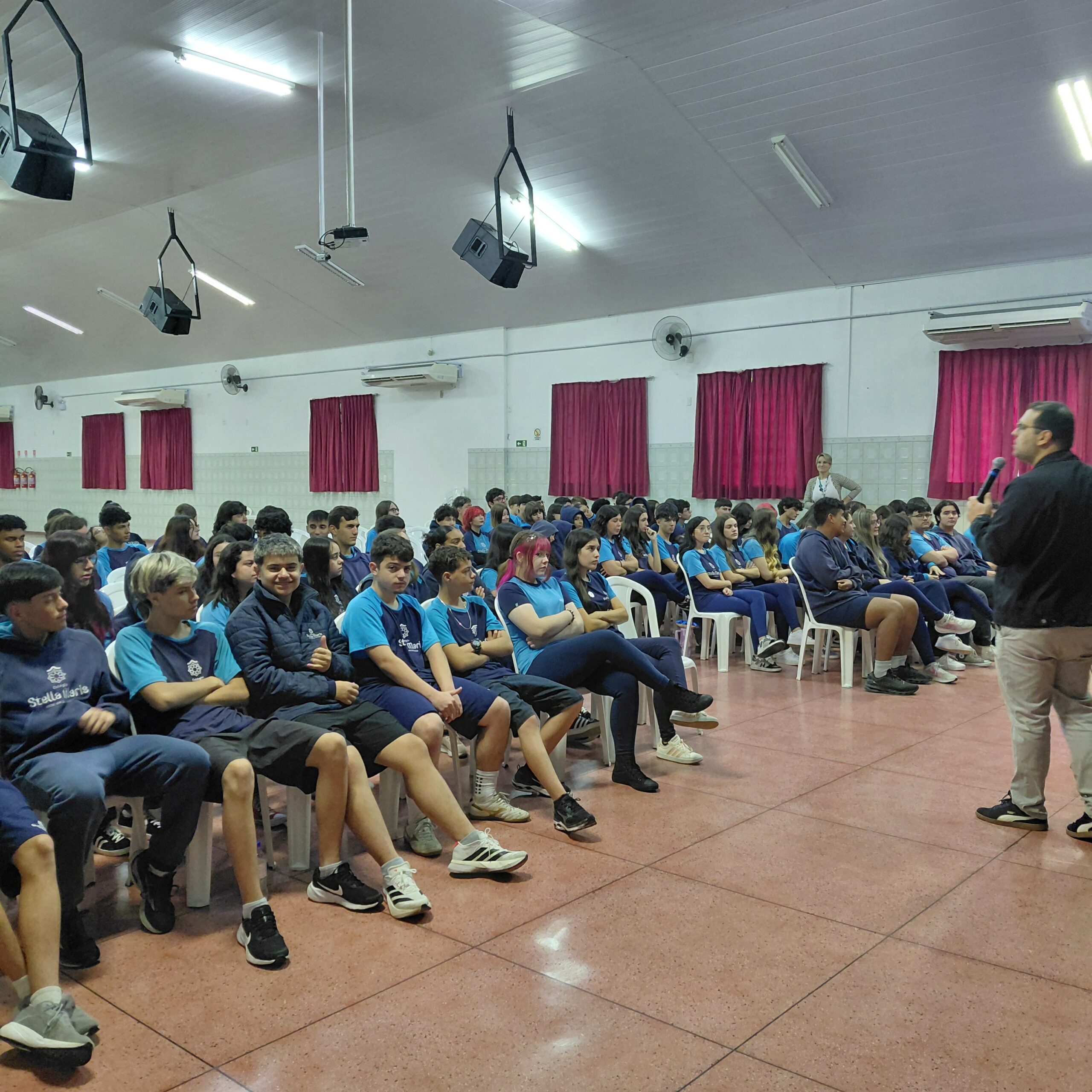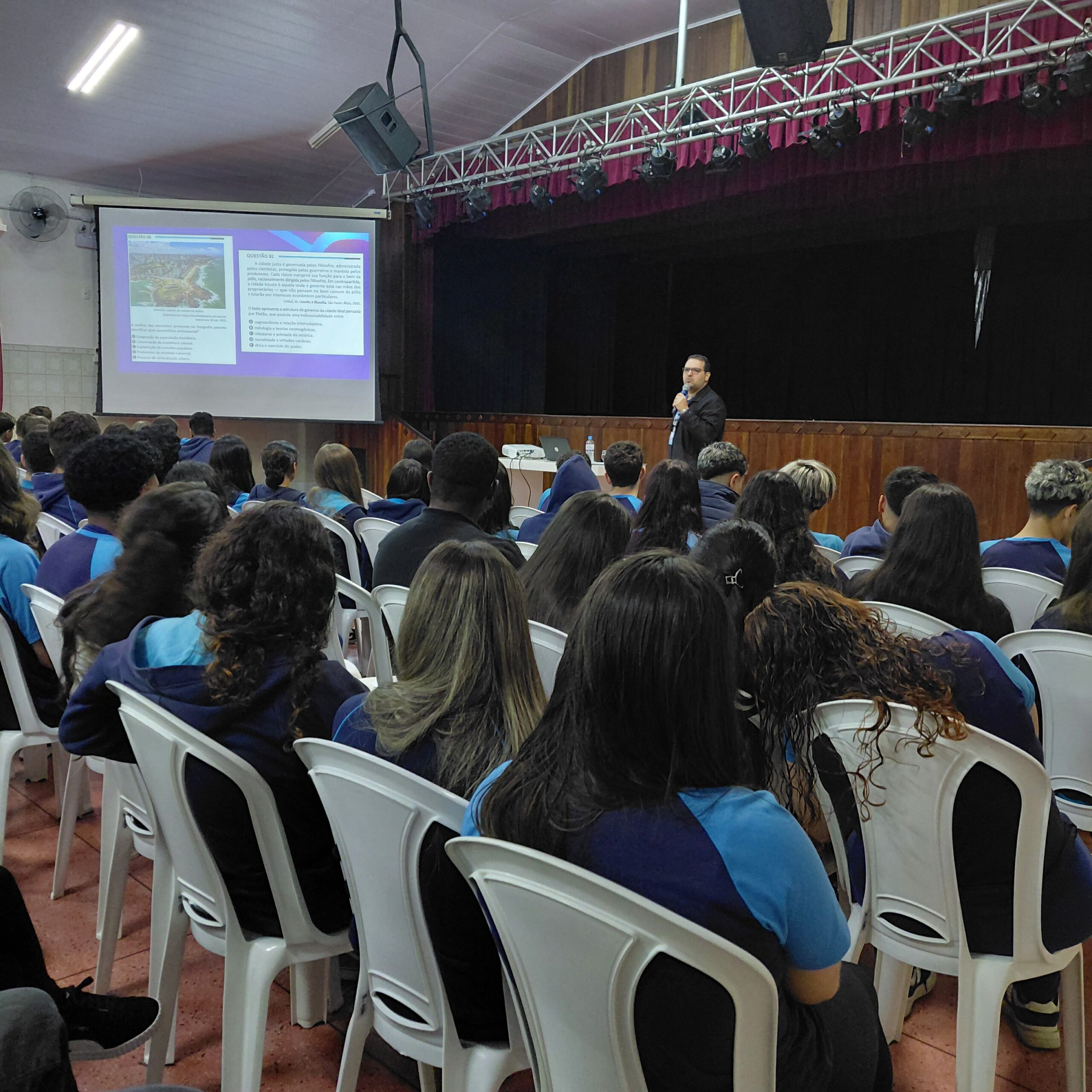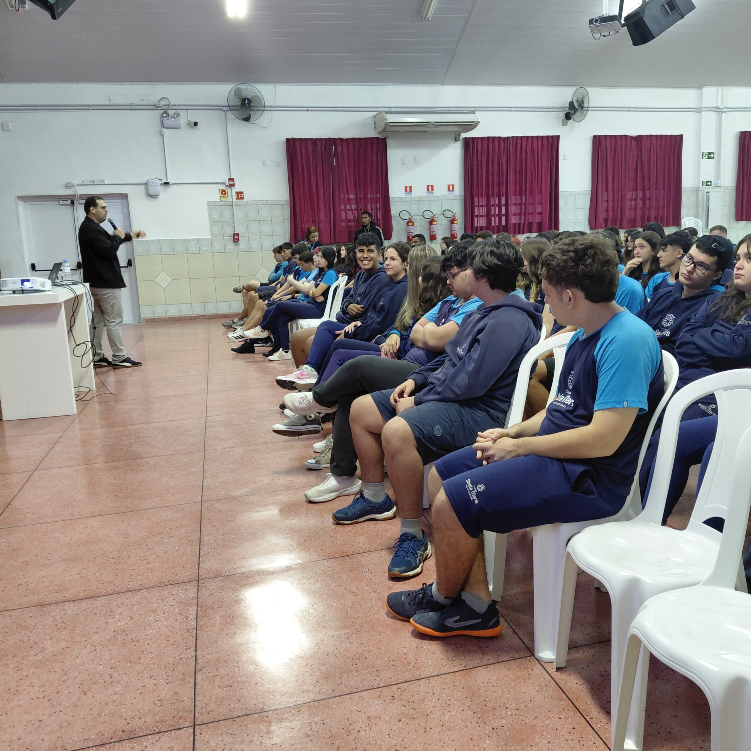 A atividade foi direcionada aos estudantes da 1ª, 2ª e 3ª séries do Ensino Médio e contou com a participação do assessor Daniel Pragana, Coordenador de Conteúdo Didático do Ensino Médio do Sistema de Ensino Bernoulli. Durante o encontro, foram compartilhadas orientações e técnicas voltadas à gestão do tempo, organização da rotina de estudos e estratégias para potencializar a aprendizagem.