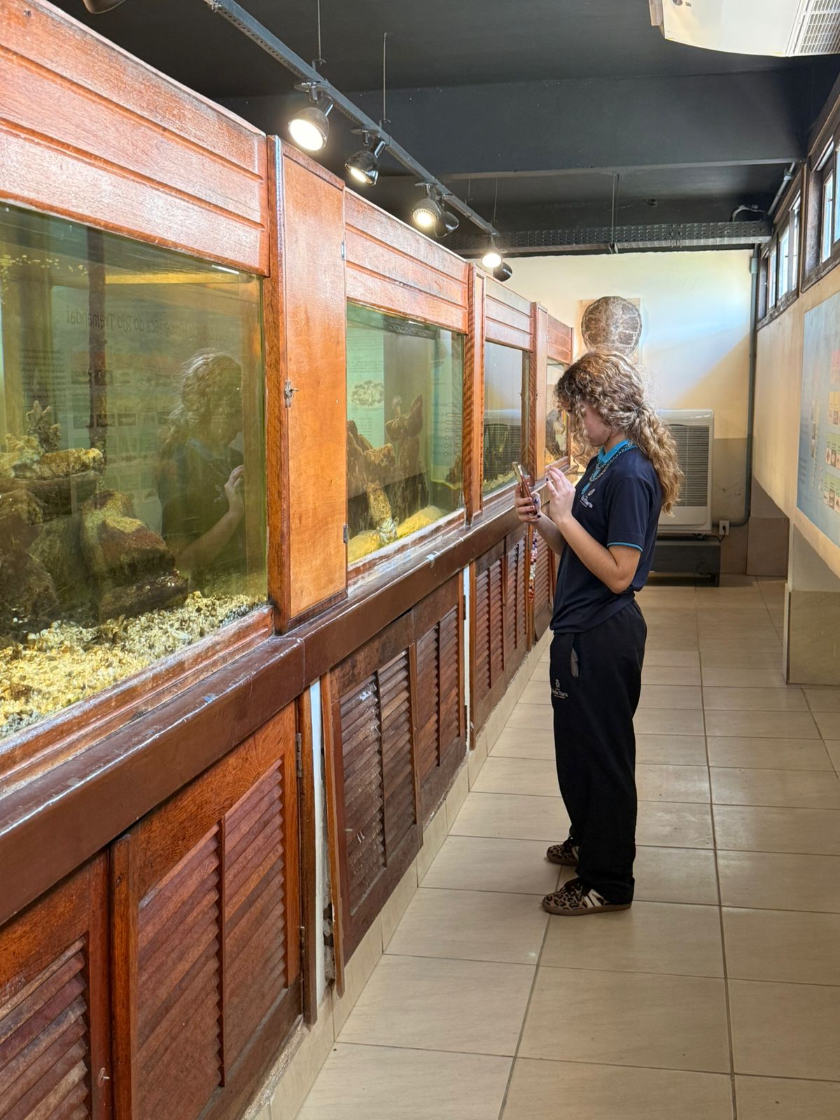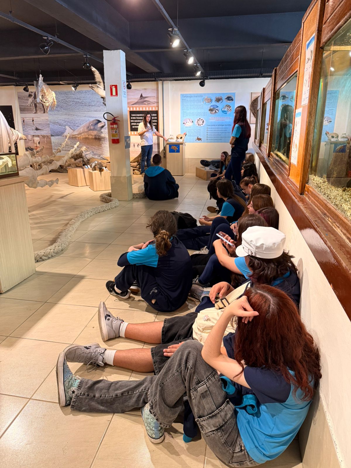 A saída pedagógica incluiu ainda a visita ao Ceclimar/UFRGS, com atividades no Museu de Ciências Naturais (MUCIN) e no Centro de Reabilitação de Animais Marinhos (CERAM). Nesse espaço, os estudantes aprofundaram seus conhecimentos sobre a biodiversidade marinha e refletiram sobre os impactos das ações humanas nos oceanos.