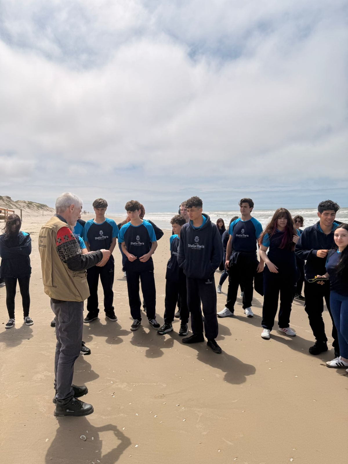 Na Foz do Rio Tramandaí, no município de Imbé, os estudantes realizaram uma caminhada orientada para observação das dunas, compreendendo a importância de sua preservação para o equilíbrio ambiental e a proteção dos ecossistemas costeiros.