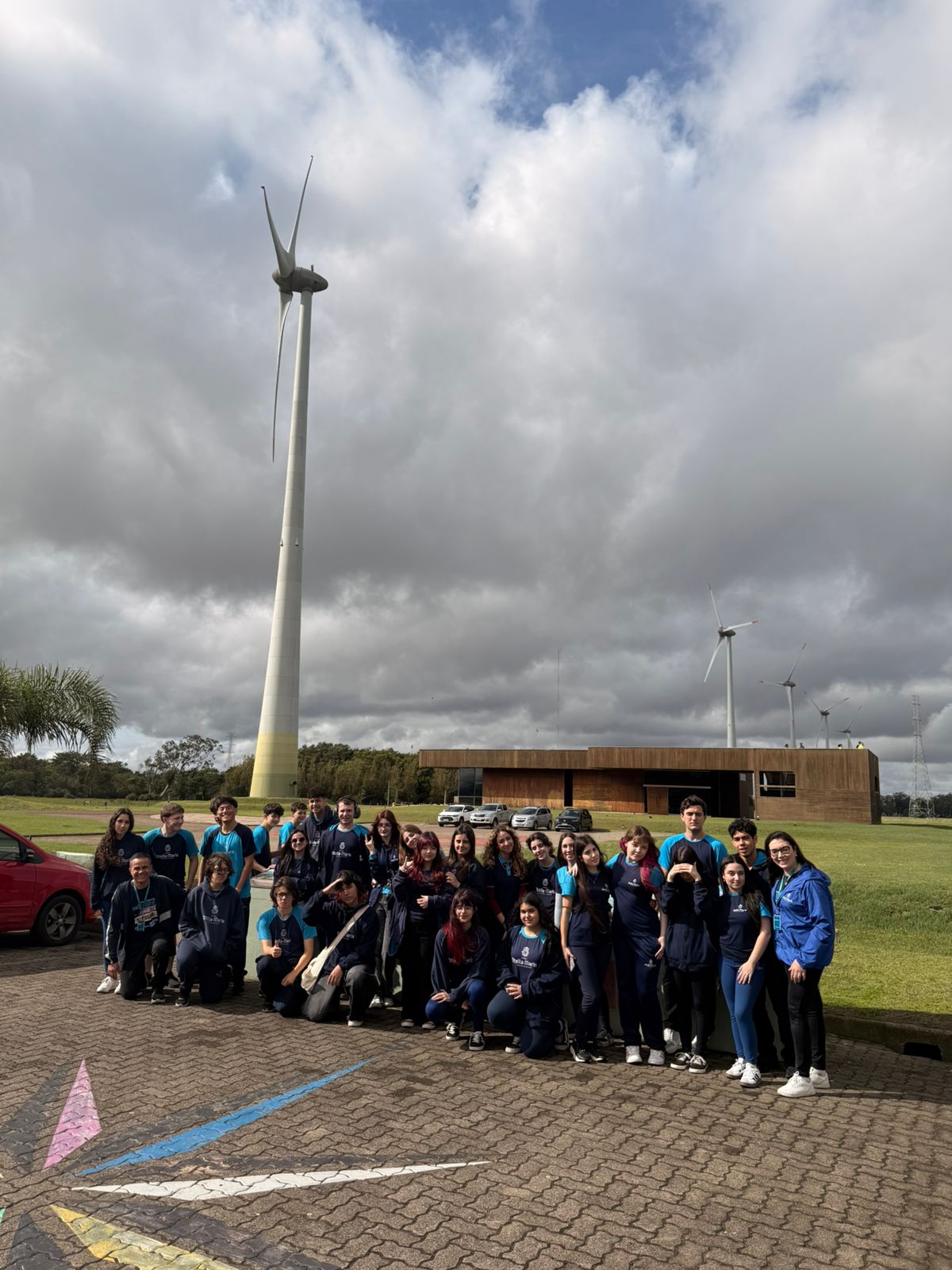 A atividade contou com o acompanhamento da Professora Joseli e teve início no Morro da Borússia, em Osório, onde os estudantes puderam observar o relevo da região, apreciar a paisagem do litoral e conhecer aspectos históricos locais. No mesmo local, visitaram o , referência internacional em energia renovável, ampliando a compreensão sobre fontes sustentáveis de energia e seu papel no desenvolvimento responsável.