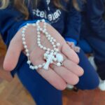 Reunidos na Capela e na Gruta de Nossa Senhora de Lourdes, os estudantes vivenciaram momentos de fé e ternura ao aprender o significado do terço e a utilizá-lo como instrumento de oração, descobrindo, a cada conta, um caminho de encontro com Maria e com Jesus.
