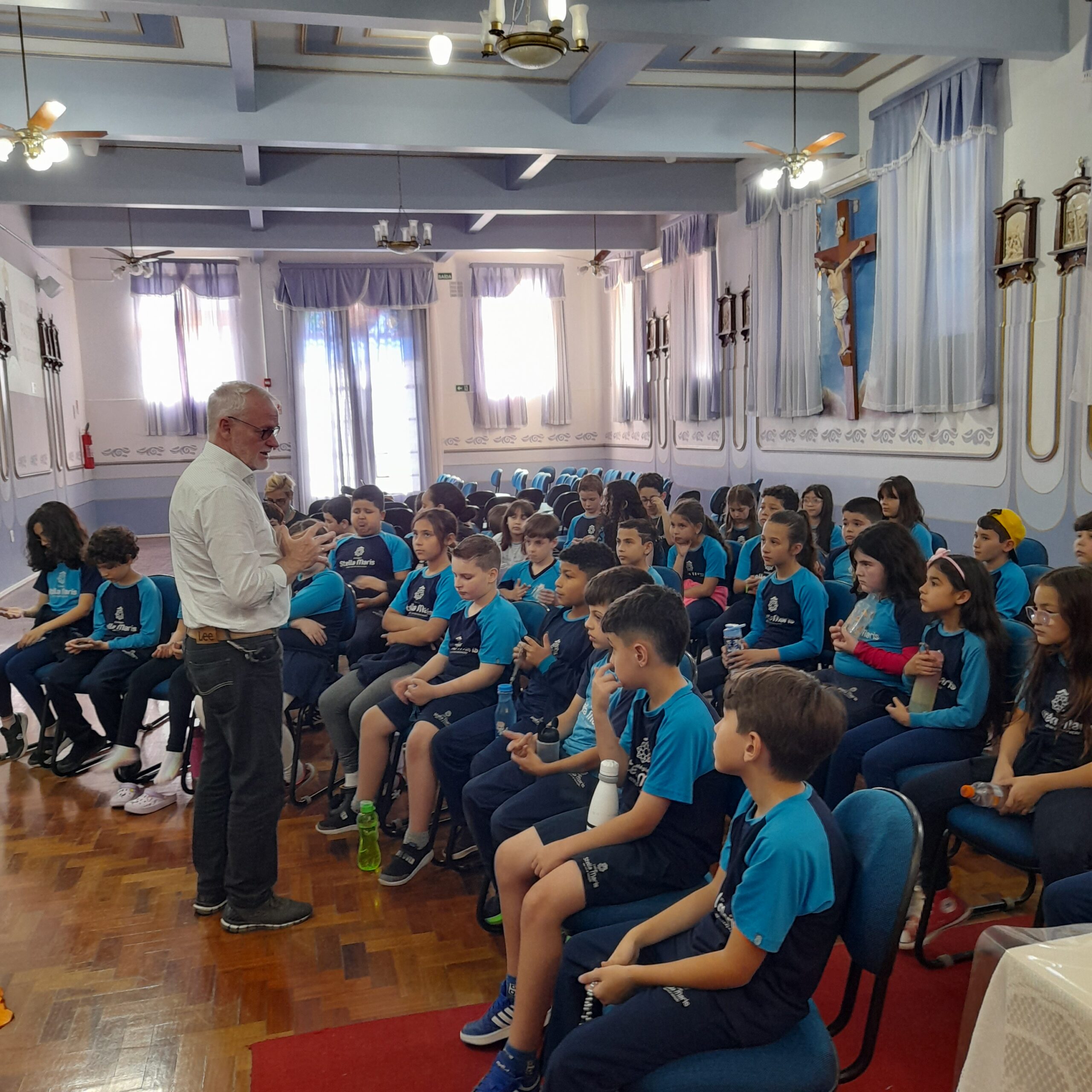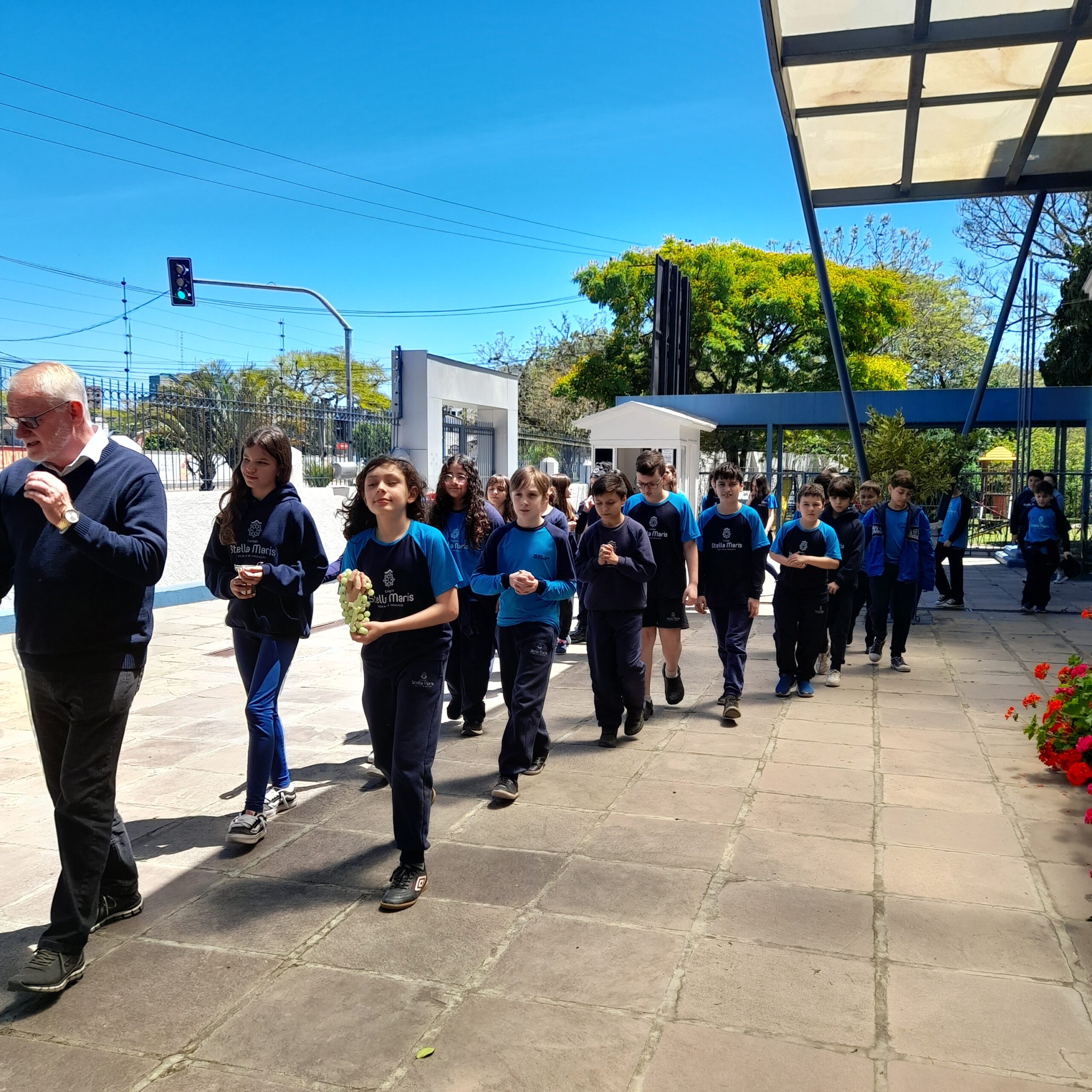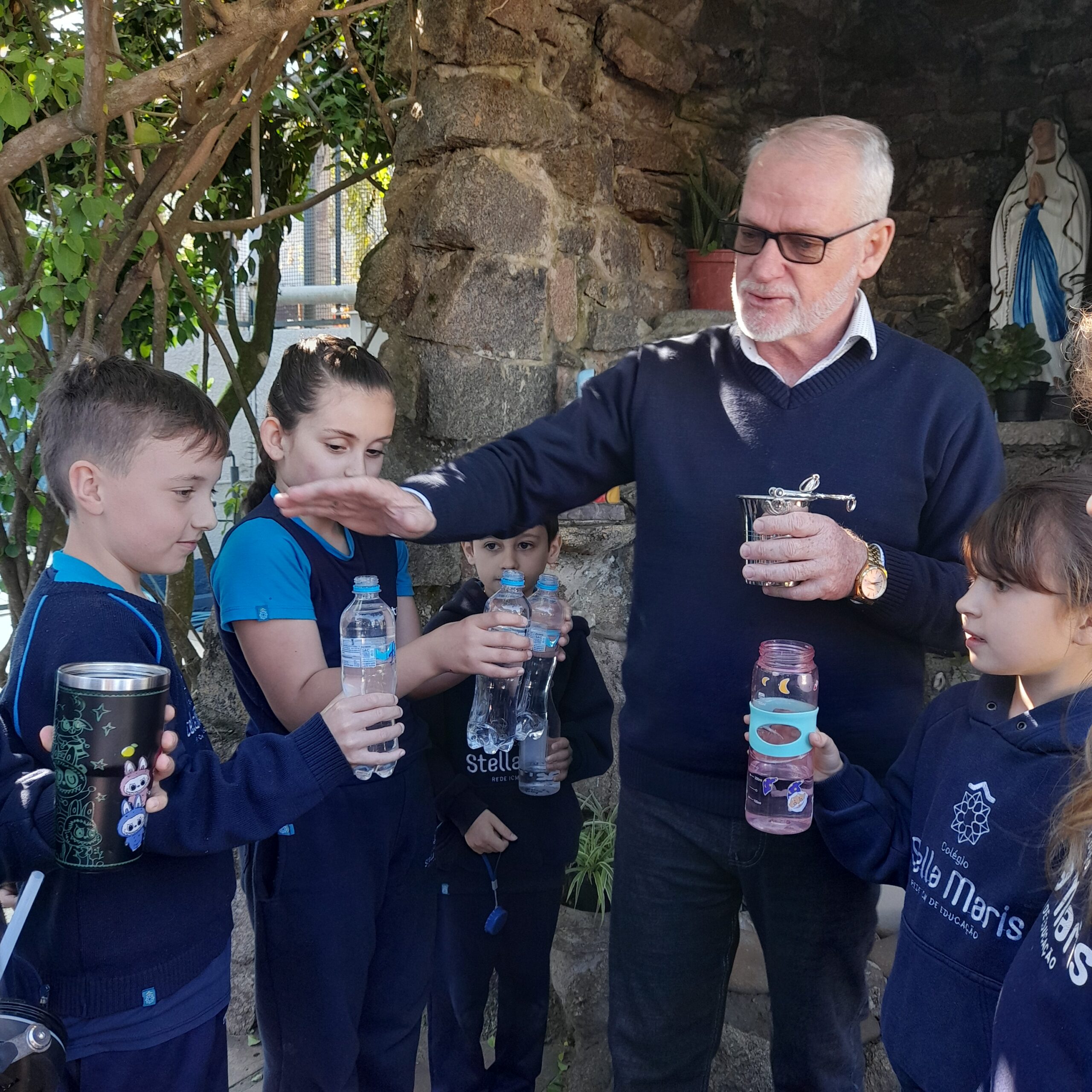 Ao final do encontro, na Gruta, os estudantes receberam as bênçãos do Padre Edison Stein, levando consigo seus tercinhos e a água abençoada, símbolos de fé, esperança e proteção.