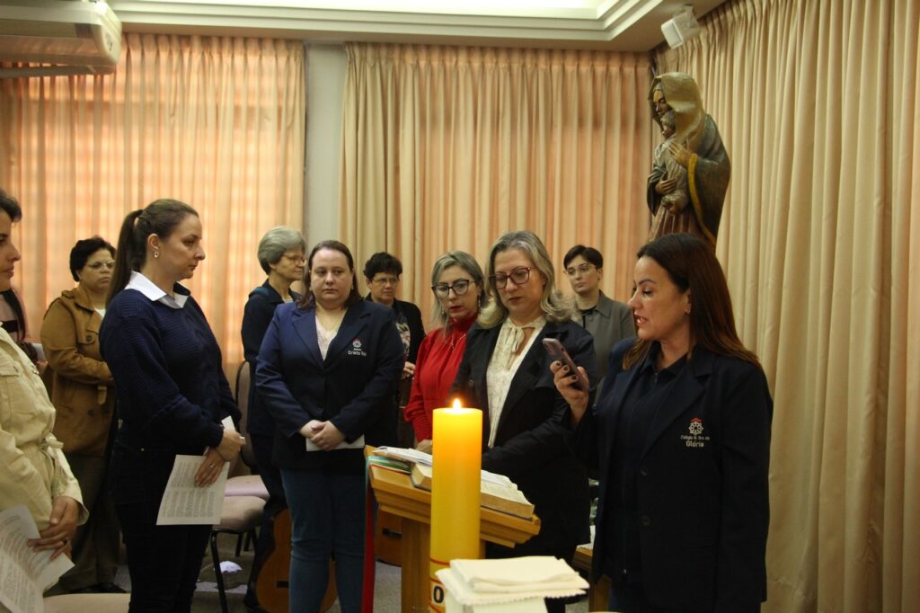 Ao final das apresentações, colaboradores/as, Diretoras e Vice-Diretoras, participaram da Celebração Eucarística, solenidade de formatura e jantar de confraternização.
