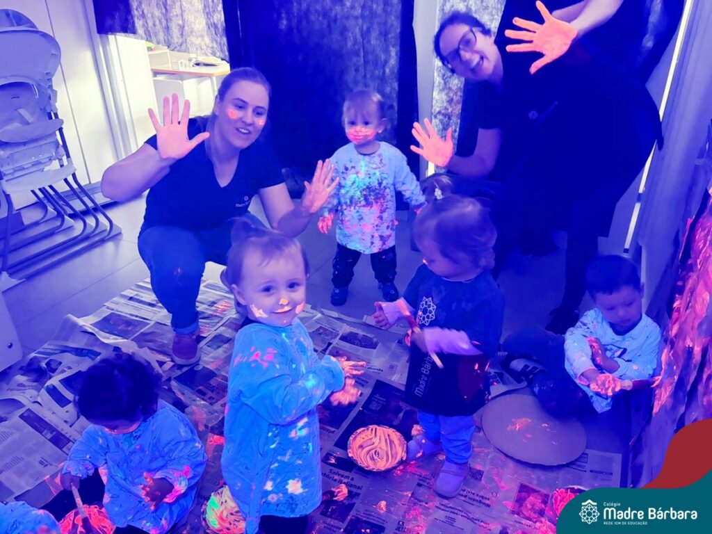 As crianças do Nível 1C, juntamente com as professoras Joana Paula Träsel, Angélica Bortolini e a atelierista Camila Rockenbach, vivenciaram um momento encantador e cheio de descobertas! Em um ambiente escurinho e iluminado pela “luz mágica”, as cores neon ganhavam vida diante dos olhos curiosos. As pequenas mãos exploraram a tinta com alegria, deixando rastros […]