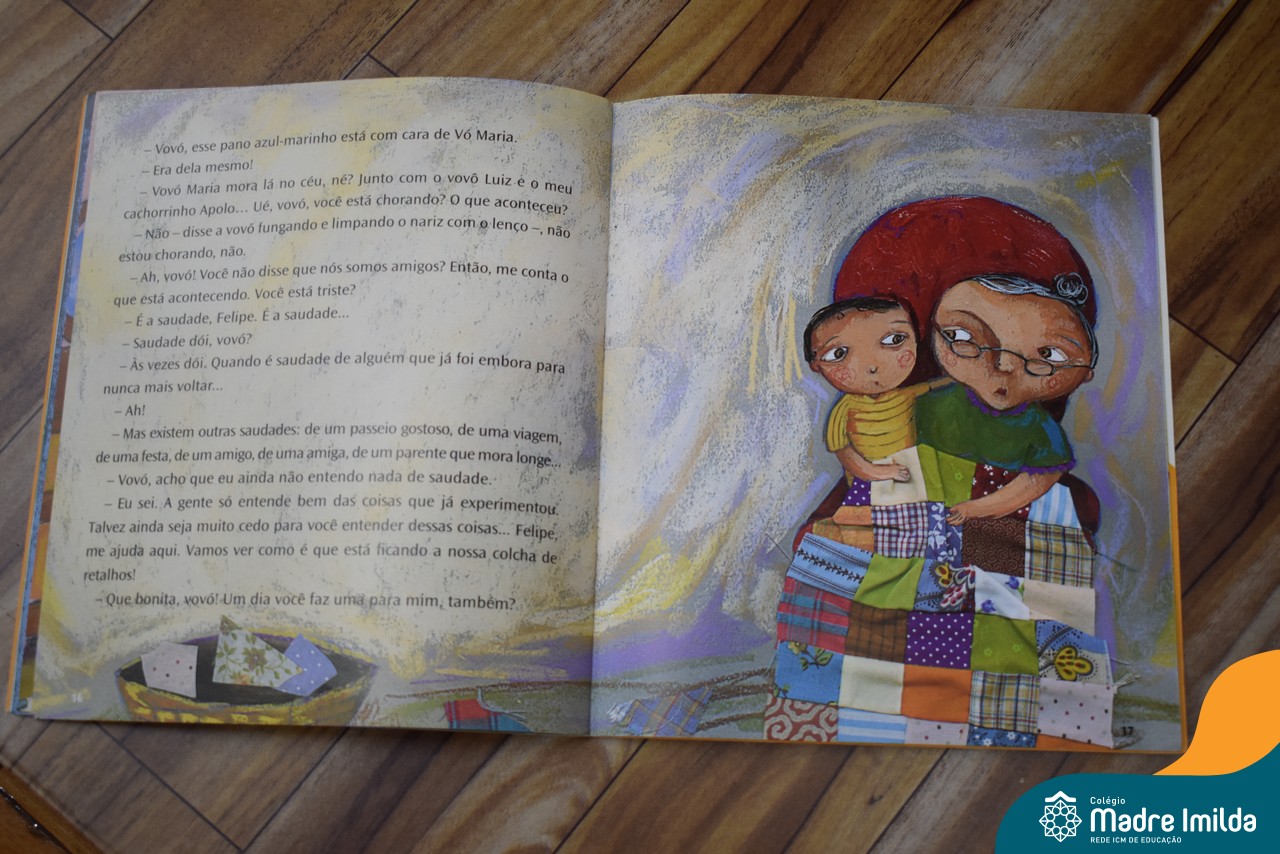A professora Patricia cativou as crianças ao contar como cada pedaço de tecido representava momentos importantes na vida dos avós, destacando a importância das histórias familiares e dos laços afetivos. As crianças ficaram envolvidas, encantadas com as cores e os significados de cada retalho, e participaram ativamente, compartilhando suas próprias memórias e experiências com os avós.