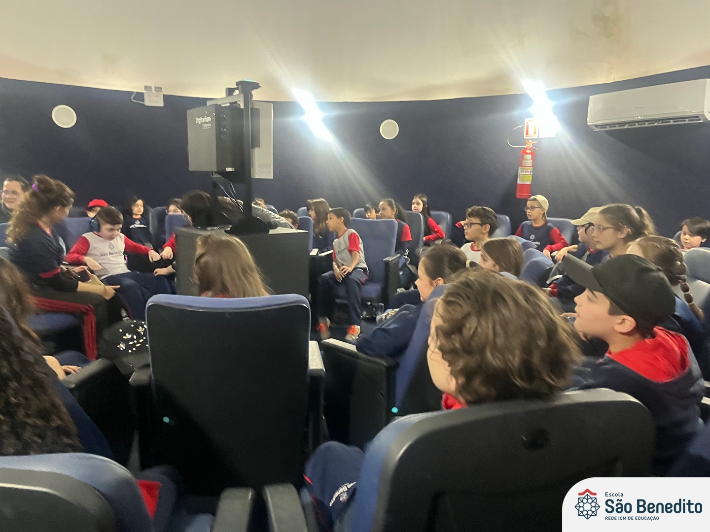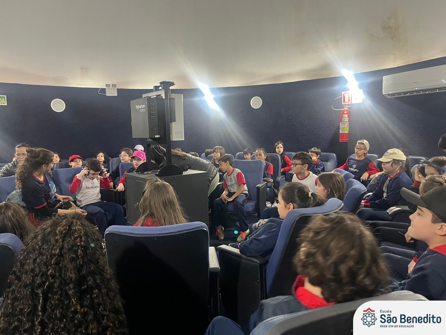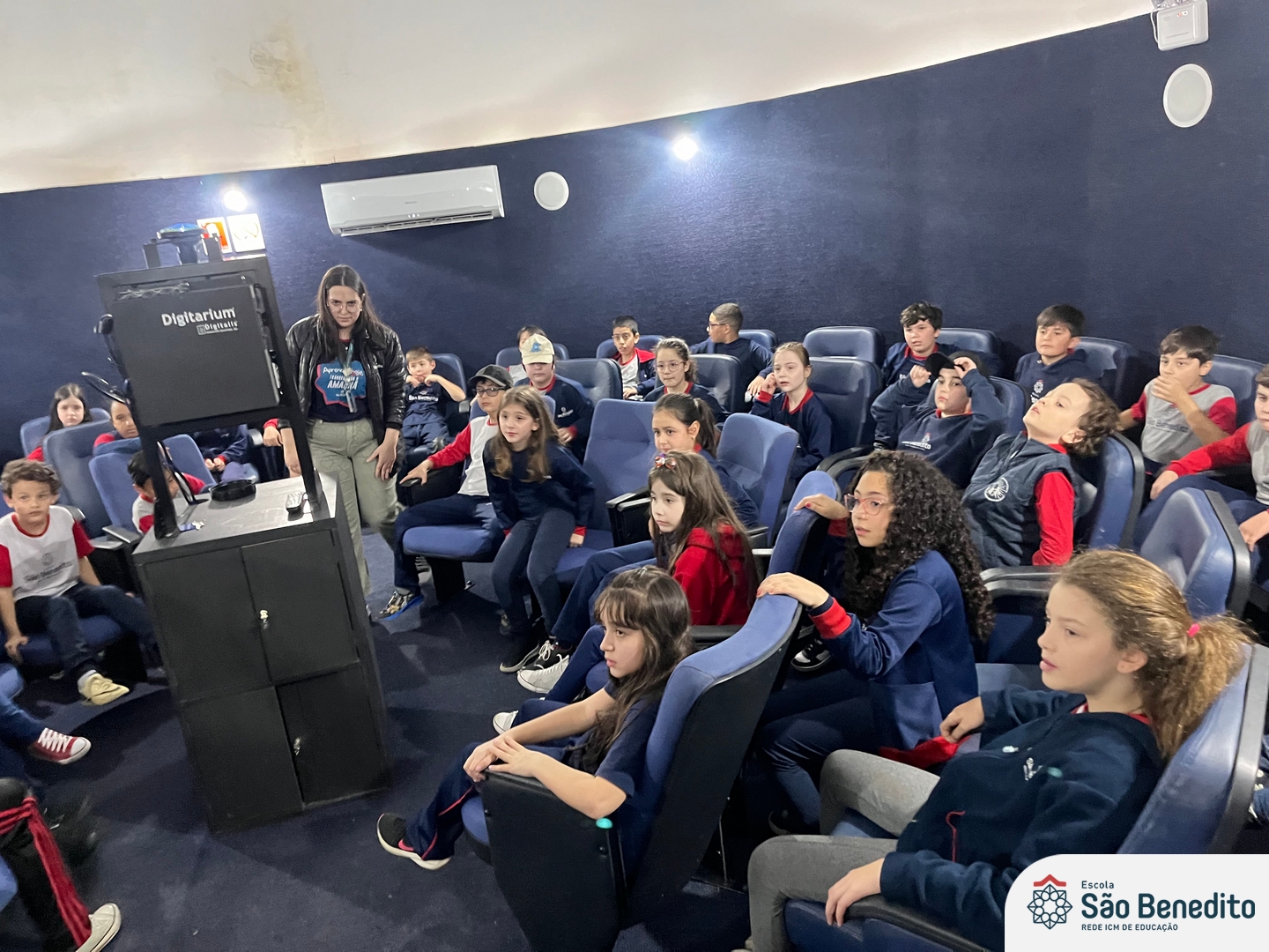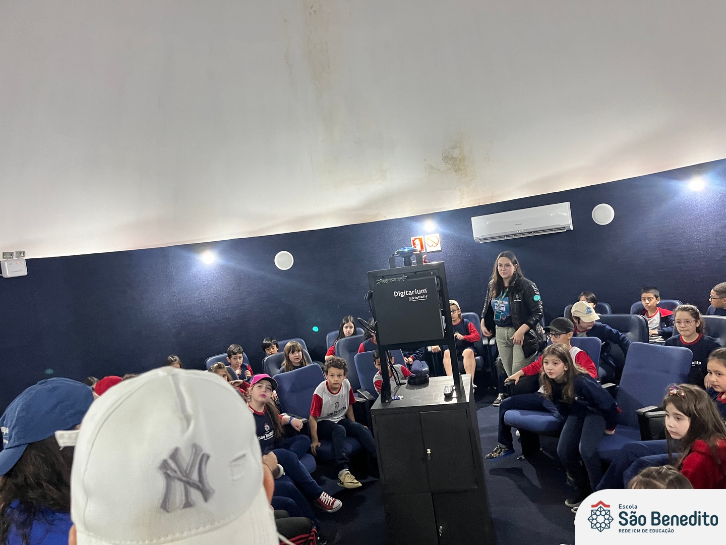 No dia 03 de outubro de 2024, os alunos do 3º ano do Ensino Fundamental da Escola São Benedito, realizaram uma visita ao Planetário da Unipampa – Campus Bagé. A iniciativa, proposta pelas professoras Ana Maria Cardoso, Maitê Belles, Marcélli Radatz e Natali Gomes, teve como objetivo aprofundar os conhecimentos dos estudantes sobre os Astros do Universo e o Sistema Solar.