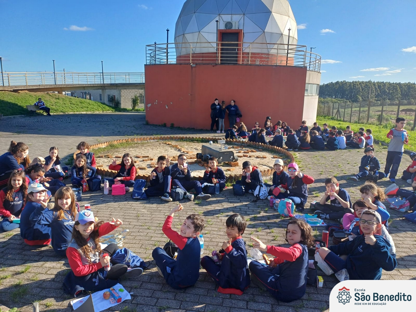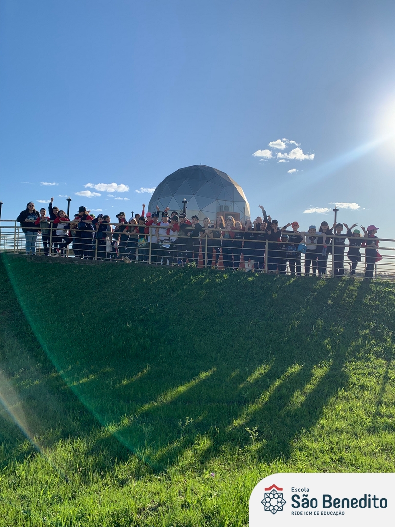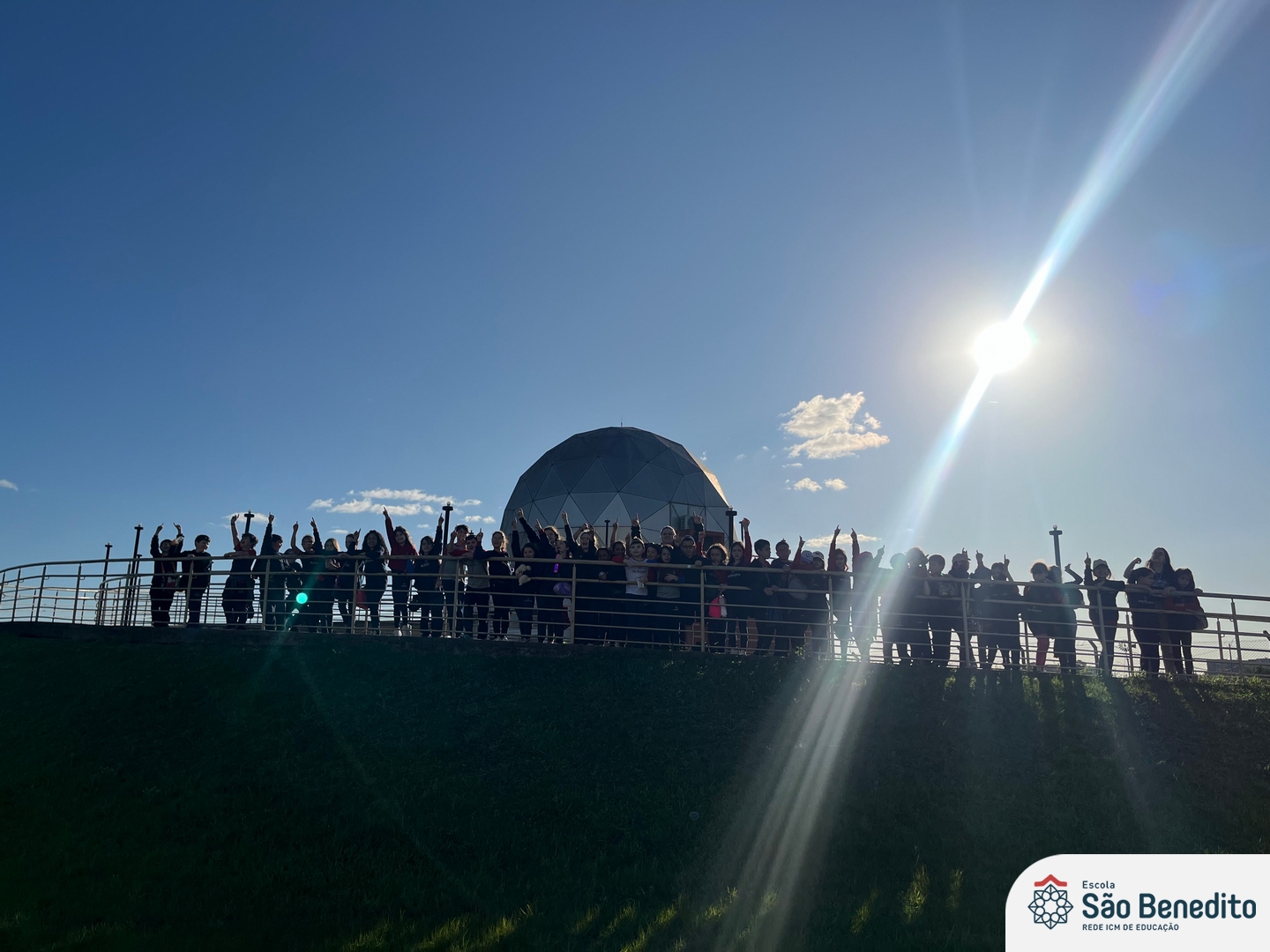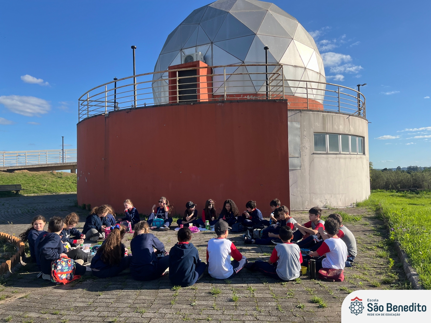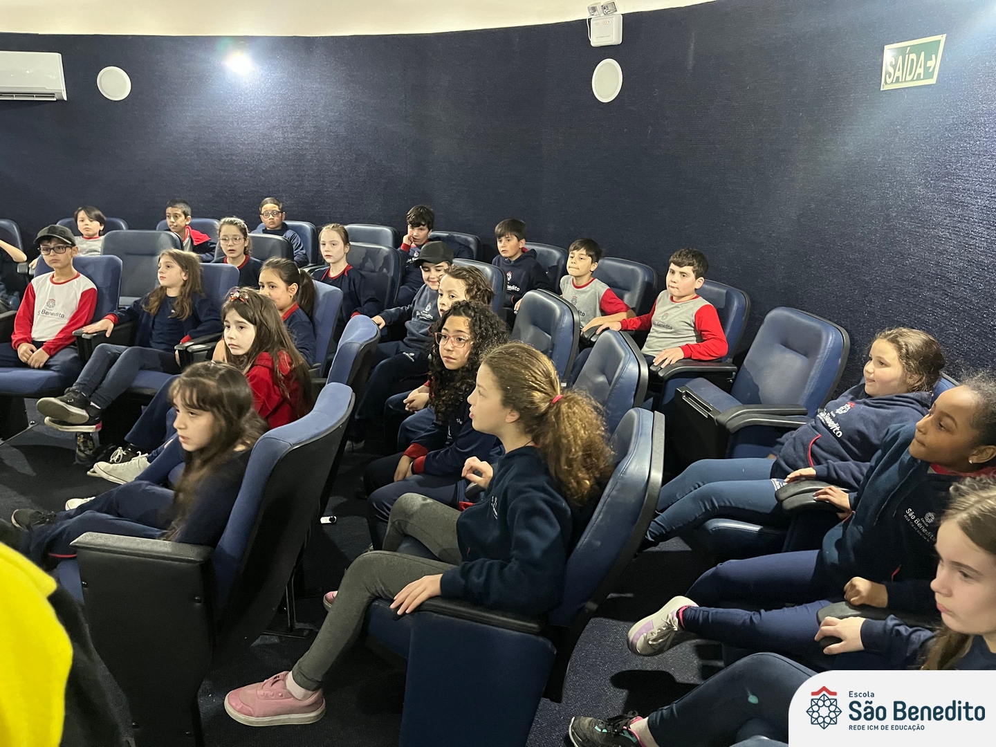 No dia 03 de outubro de 2024, os alunos do 3º ano do Ensino Fundamental da Escola São Benedito, realizaram uma visita ao Planetário da Unipampa – Campus Bagé. A iniciativa, proposta pelas professoras Ana Maria Cardoso, Maitê Belles, Marcélli Radatz e Natali Gomes, teve como objetivo aprofundar os conhecimentos dos estudantes sobre os Astros do Universo e o Sistema Solar.