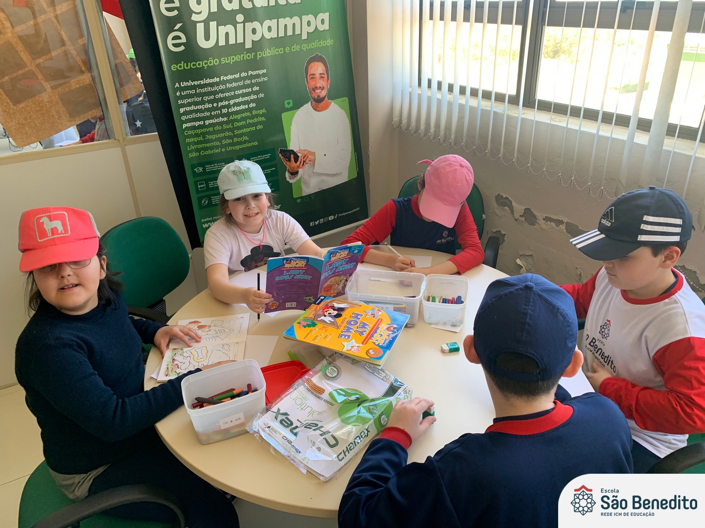 Aproveitando a oportunidade de estar em uma Universidade, os estudantes também exploraram outros espaços do Campus. A professora Dra. Sara Motta, coordenadora do curso de Letras, acompanhada pelas bolsistas e professoras de língua inglesa, Laura Moreira e Mayra Kayani Oliveira Benites, conduziu um tour pela Unipampa, apresentando os cursos oferecidos e o núcleo de línguas.